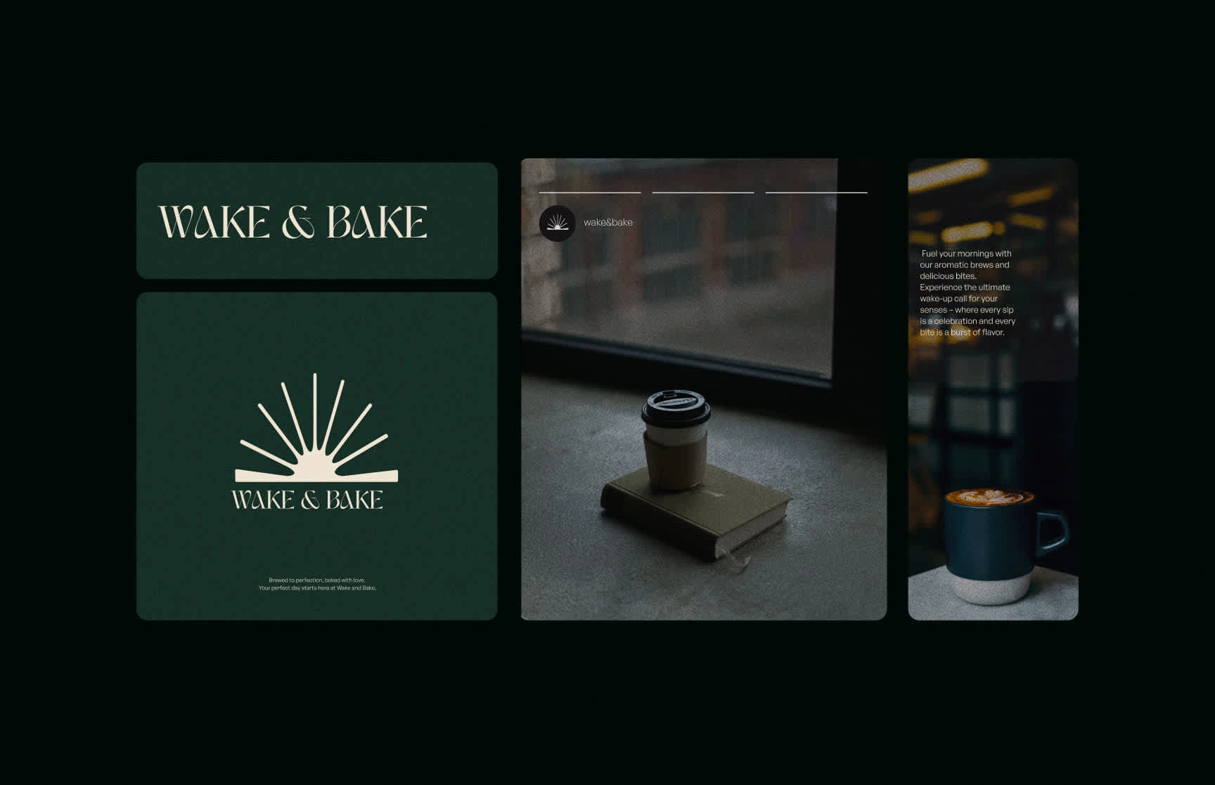 Created a unique coffee brand for Wake & Bake® with logo, brand strategy, identity, visual elements, and social media ideas, blending western coffee culture wi