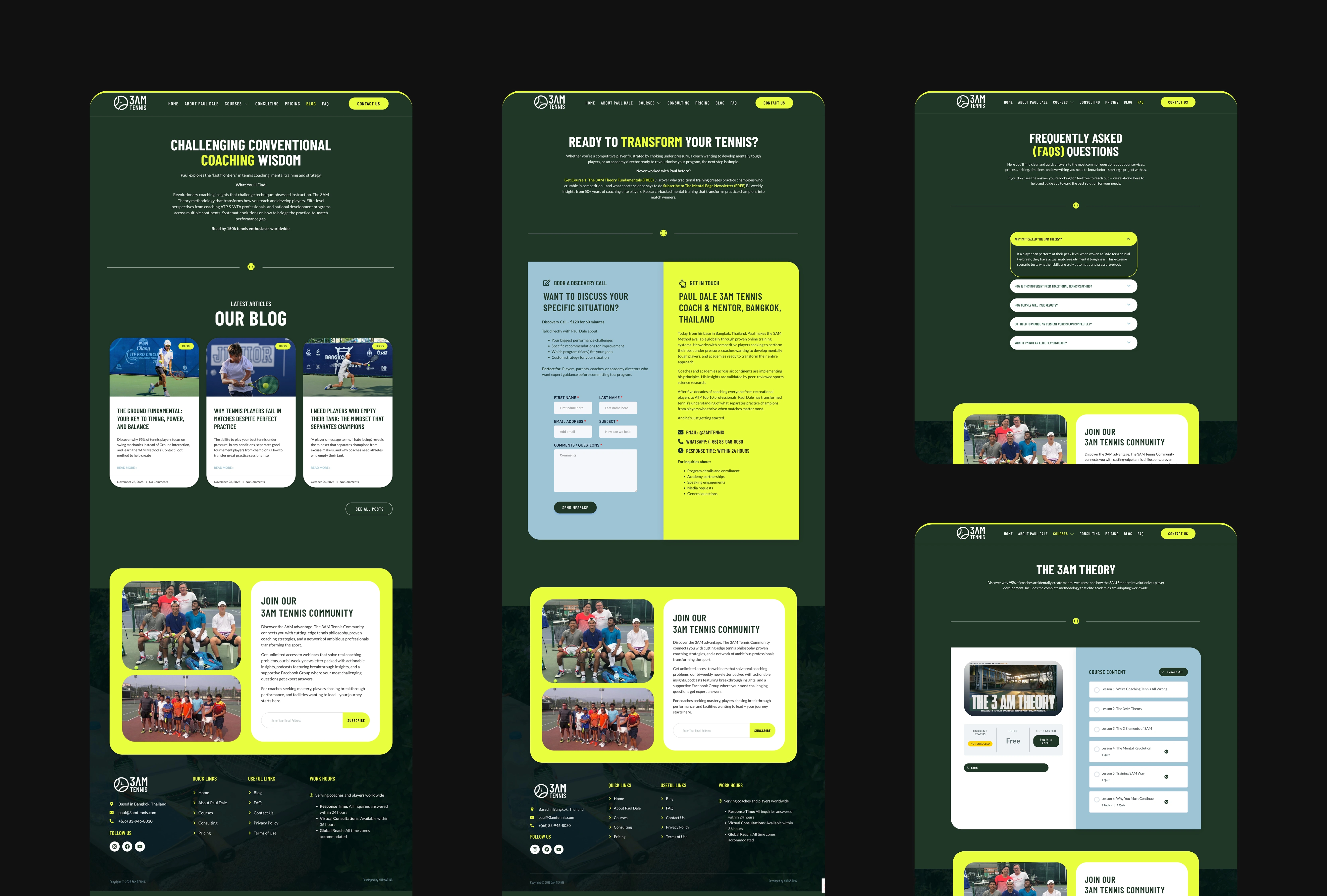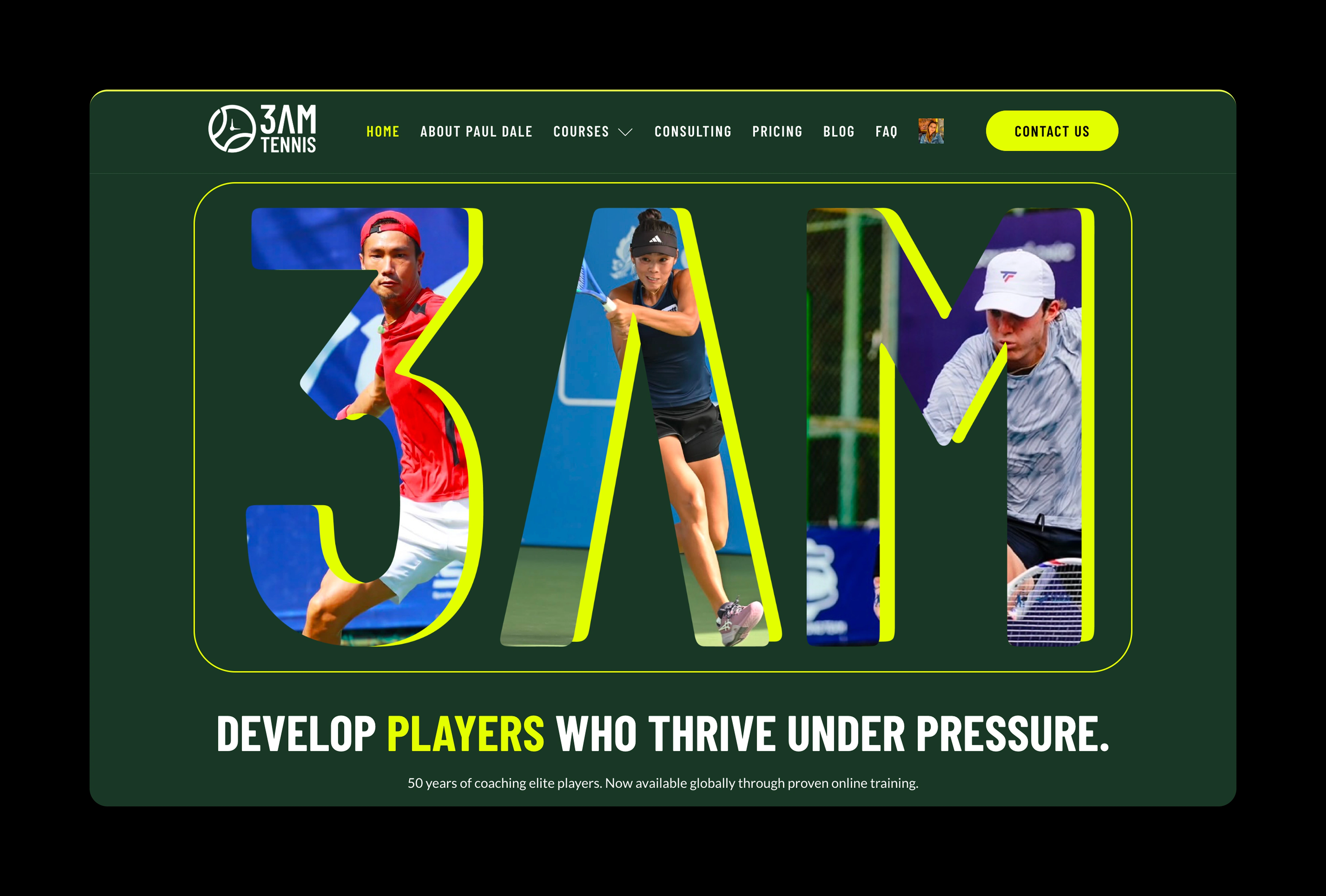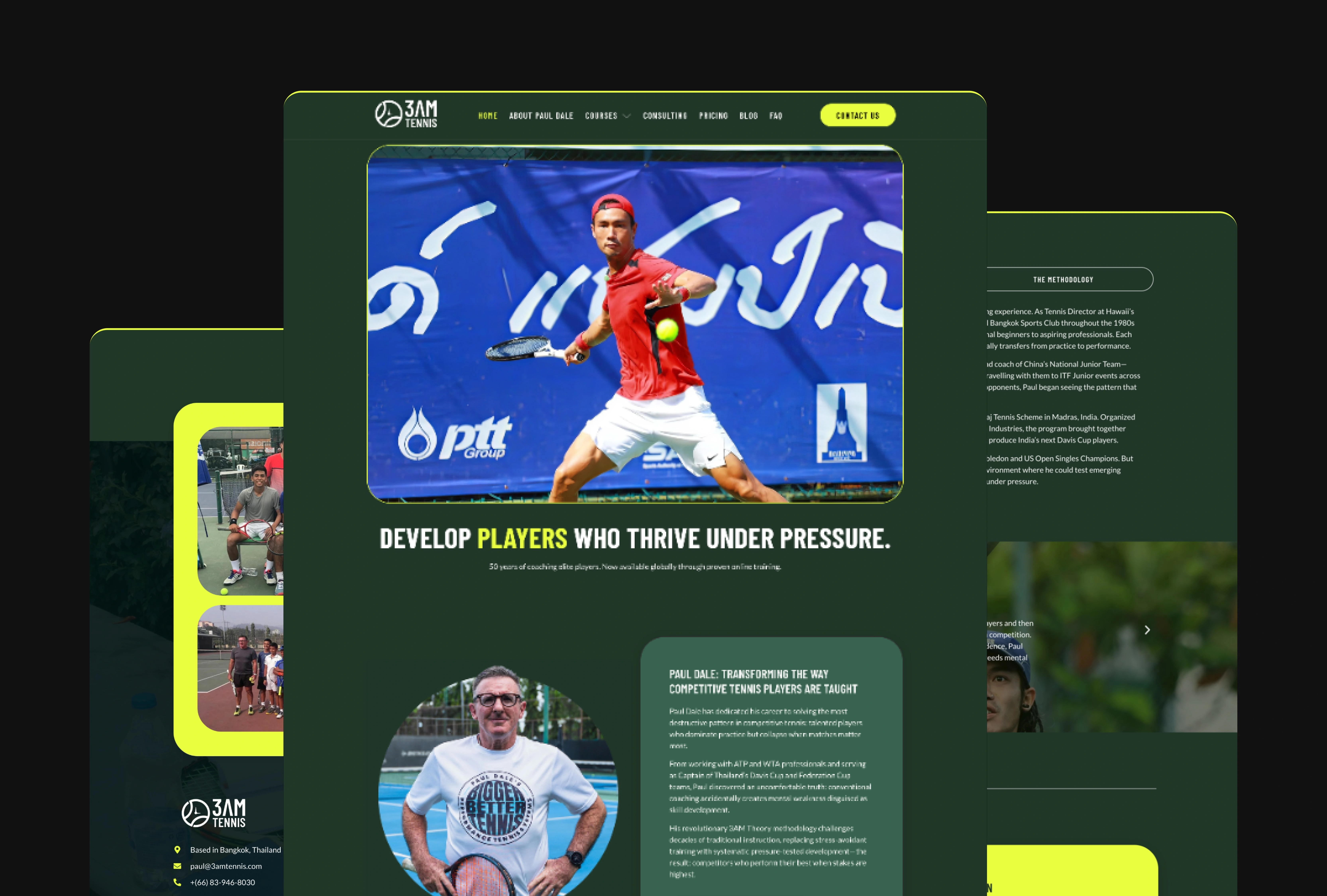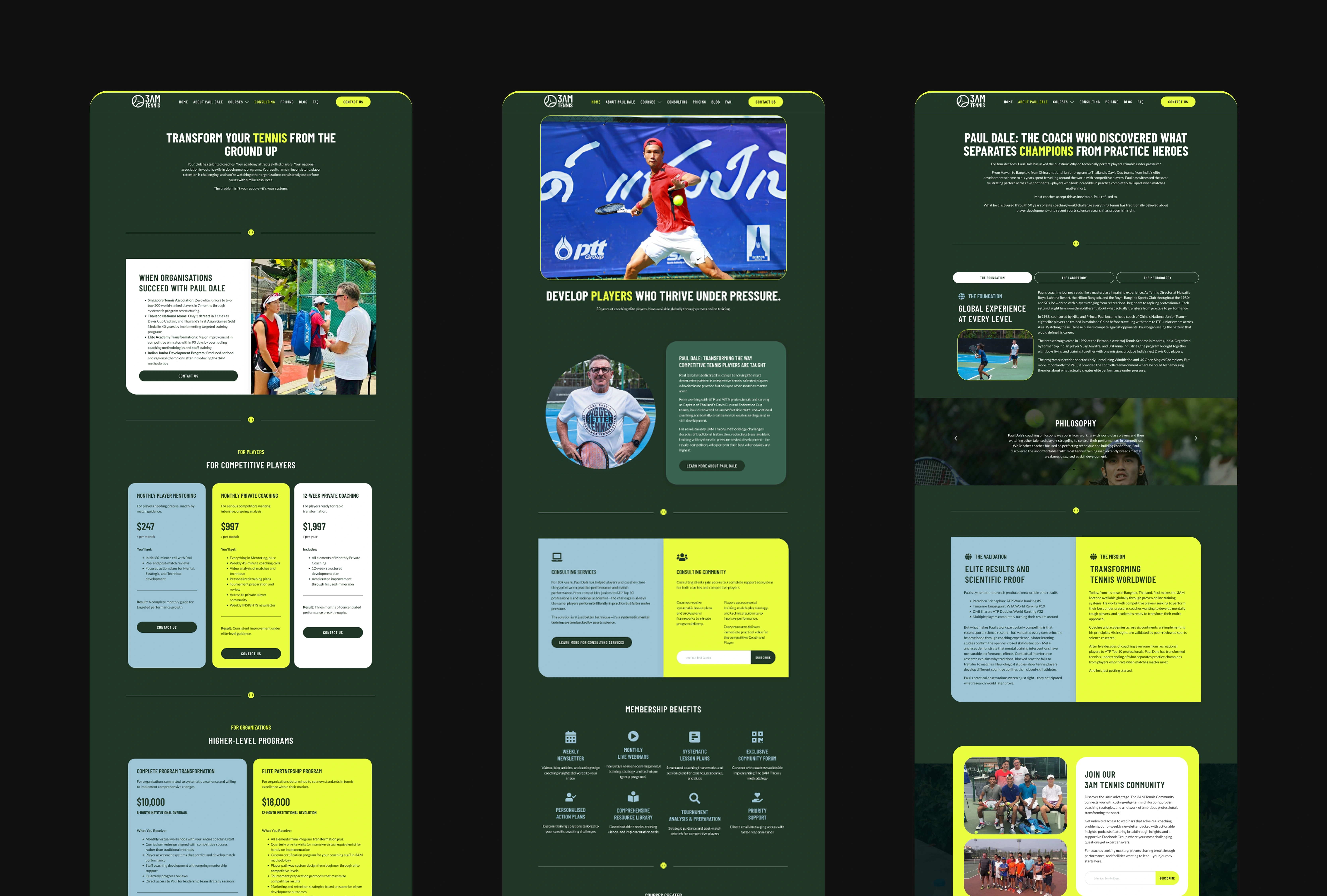 The process began with defining the site structure and key user flows, focusing on course discovery, enrollment, and lesson booking. Next, I designed clean, user-friendly layouts that clearly communicate the 3AM Tennis brand, coaching approach, and value proposition. I then built the website in WordPress using Elementor, setting up reusable components and integrating WooCommerce, LearnDash, Stripe, and Calendly. The project concluded with final refinements, responsiveness and performance checks, and preparing a scalable foundation for future growth.