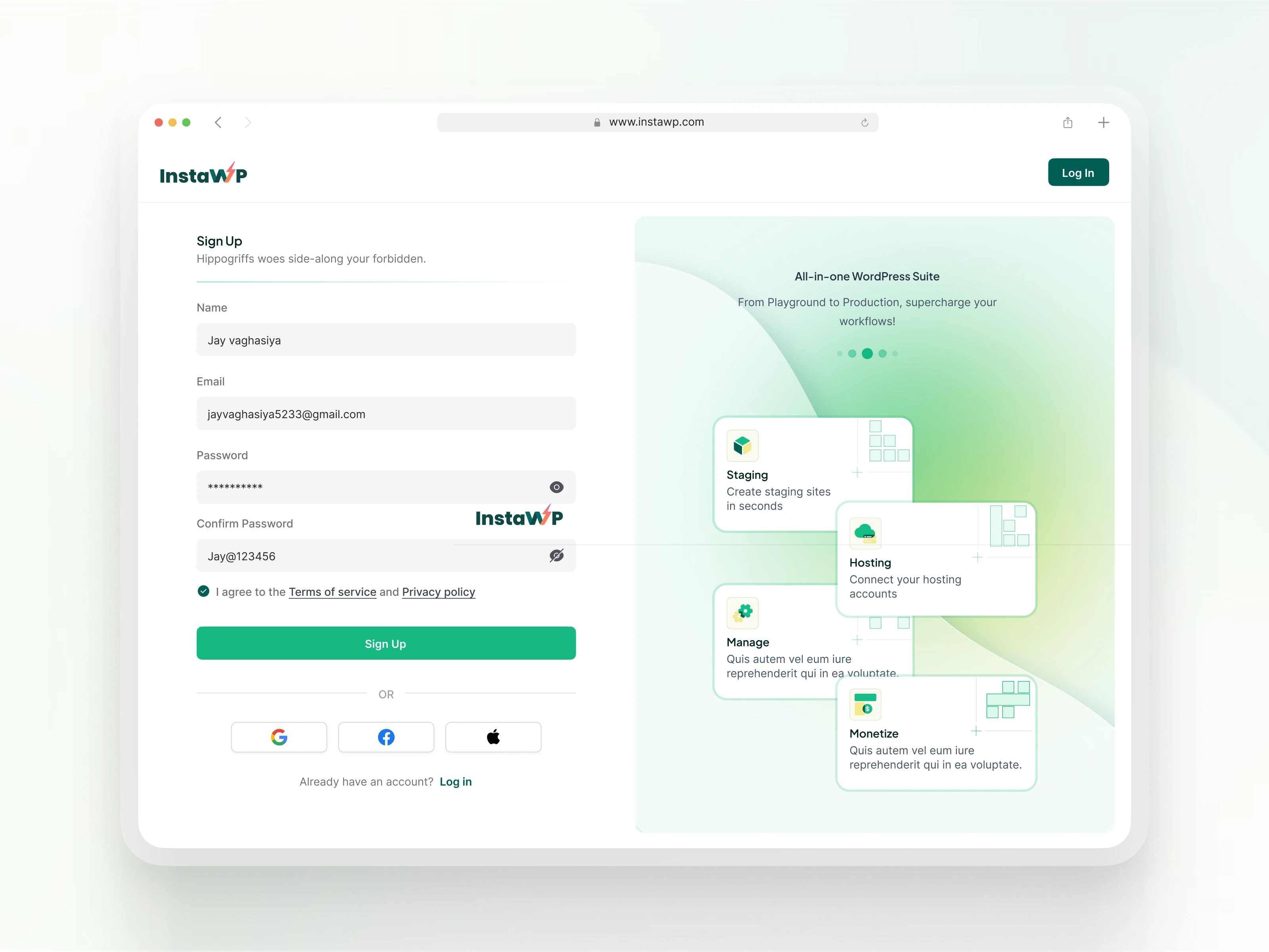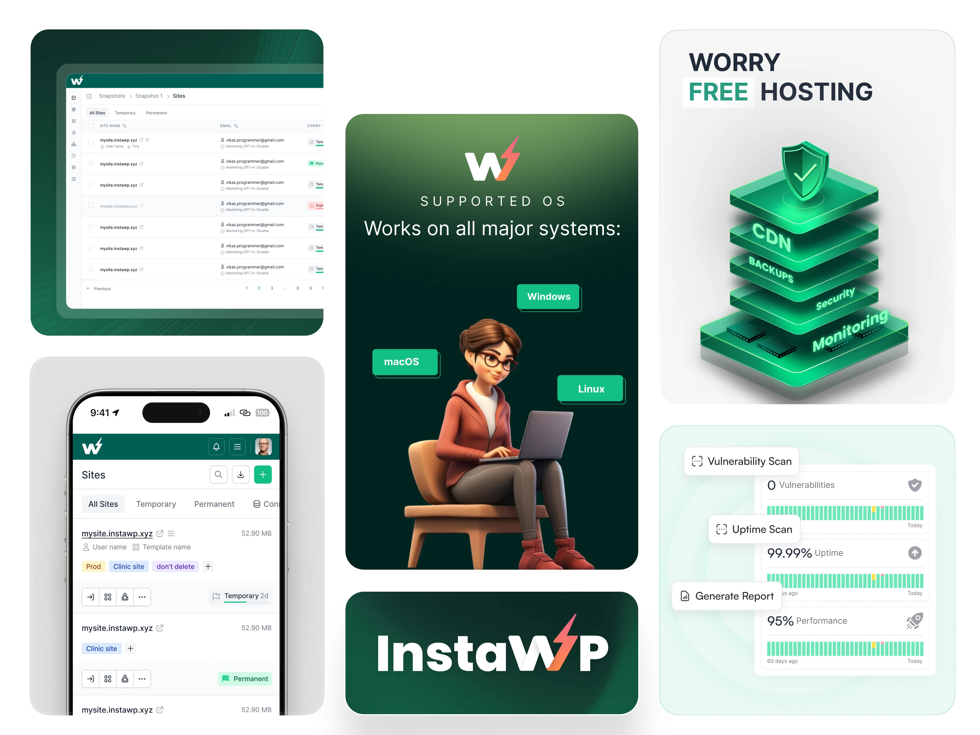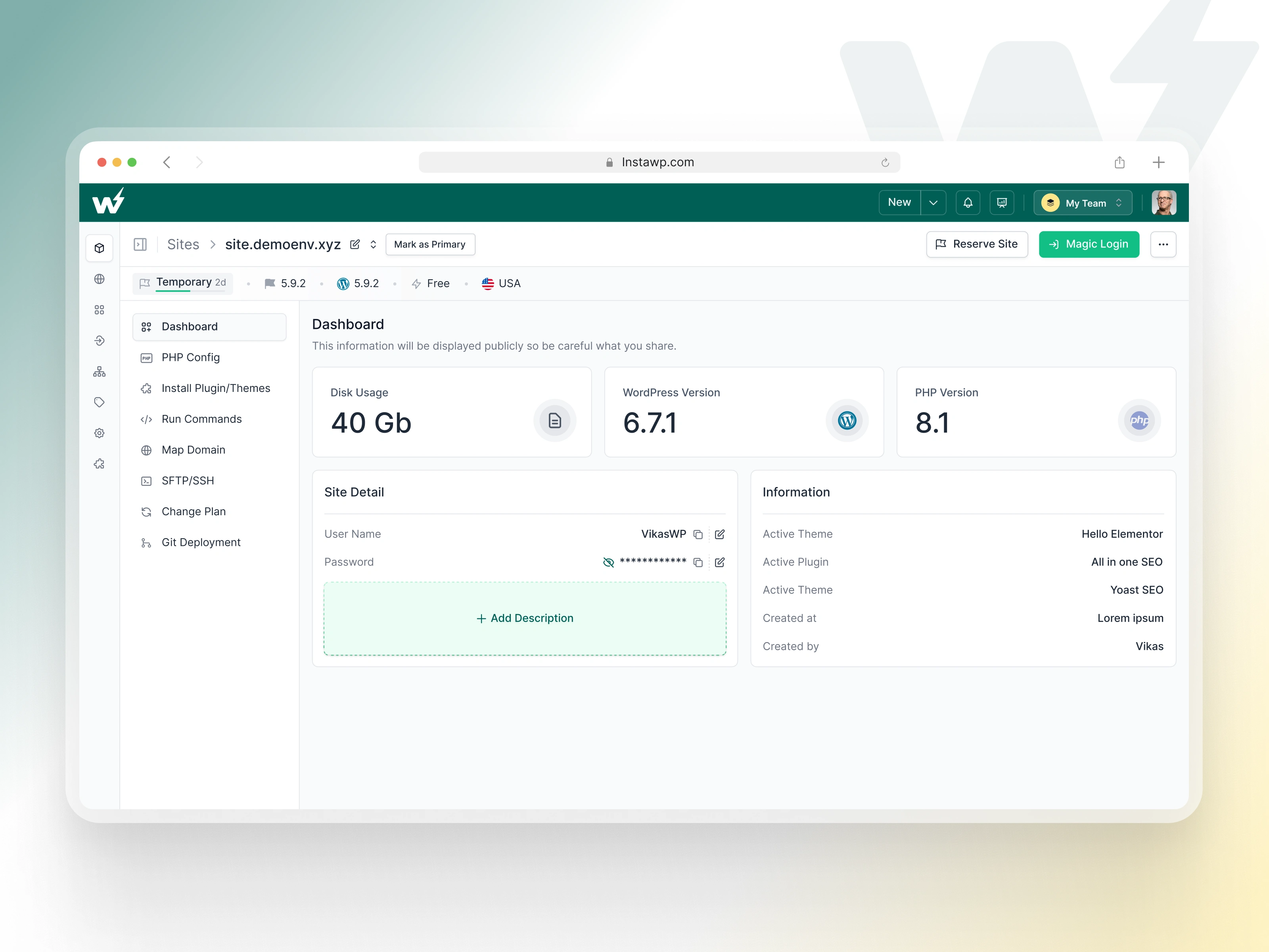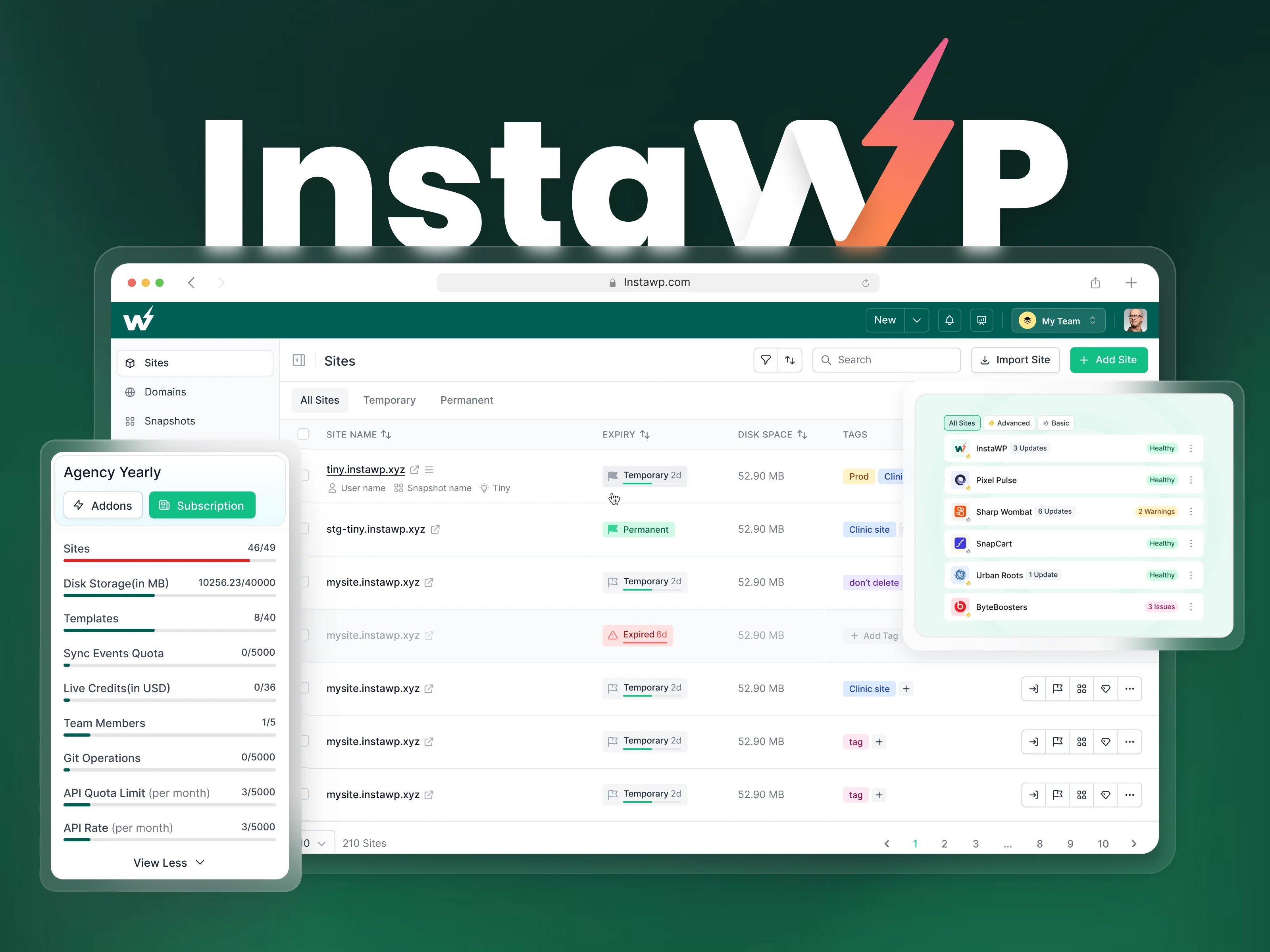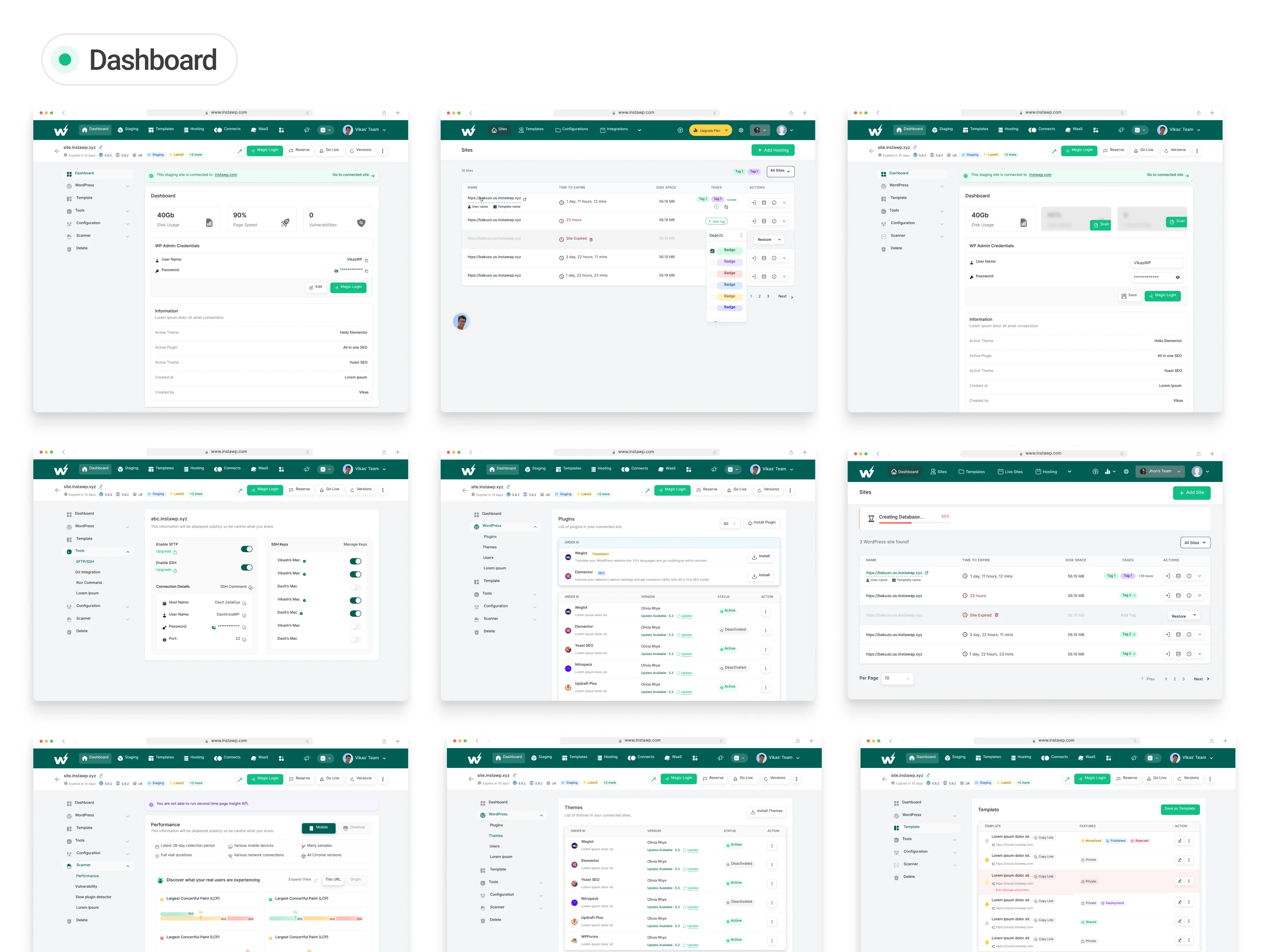 Clean, modern dashboard UI for InstaWP with web and mobile responsive design. Focused on usability, clear data flow, and smooth user experience.