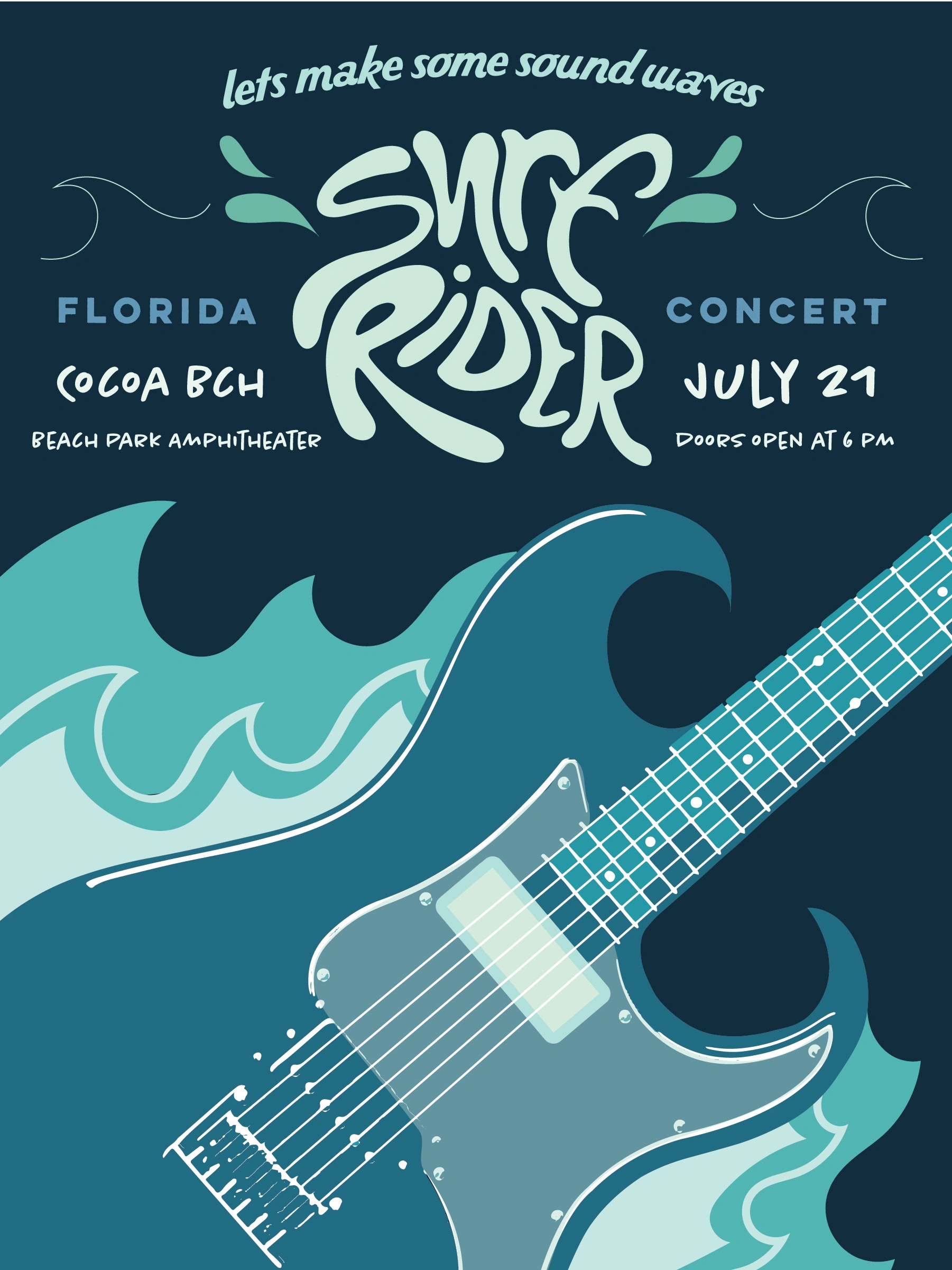 A concept design for a Surf Rider event. Demonstrating poster design and logo wordmark design. Graphic Design Illustration Adobe Illustrator