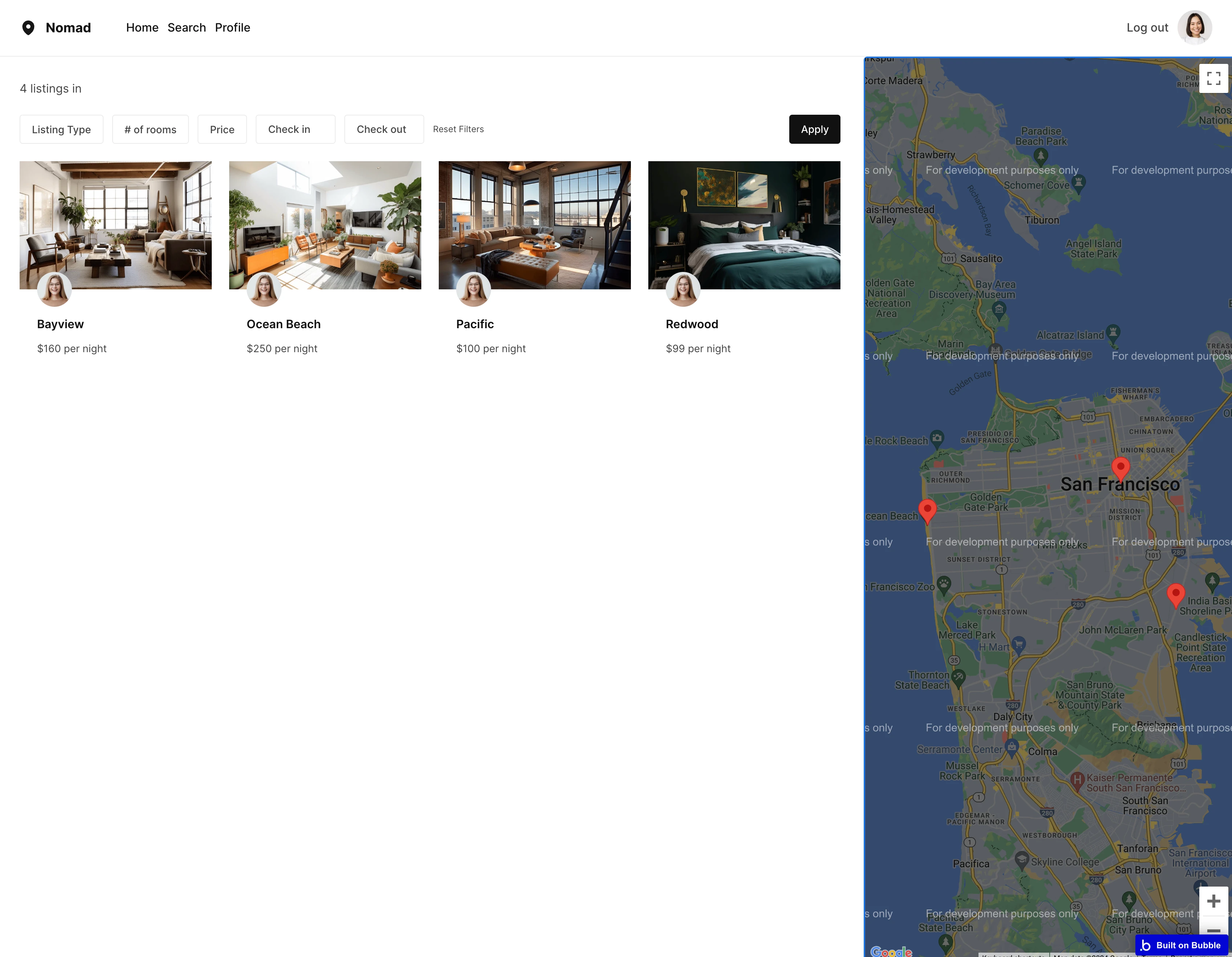This project aims to replicate the functionality of Airbnb. Developed with Bubble.io in 1 week.