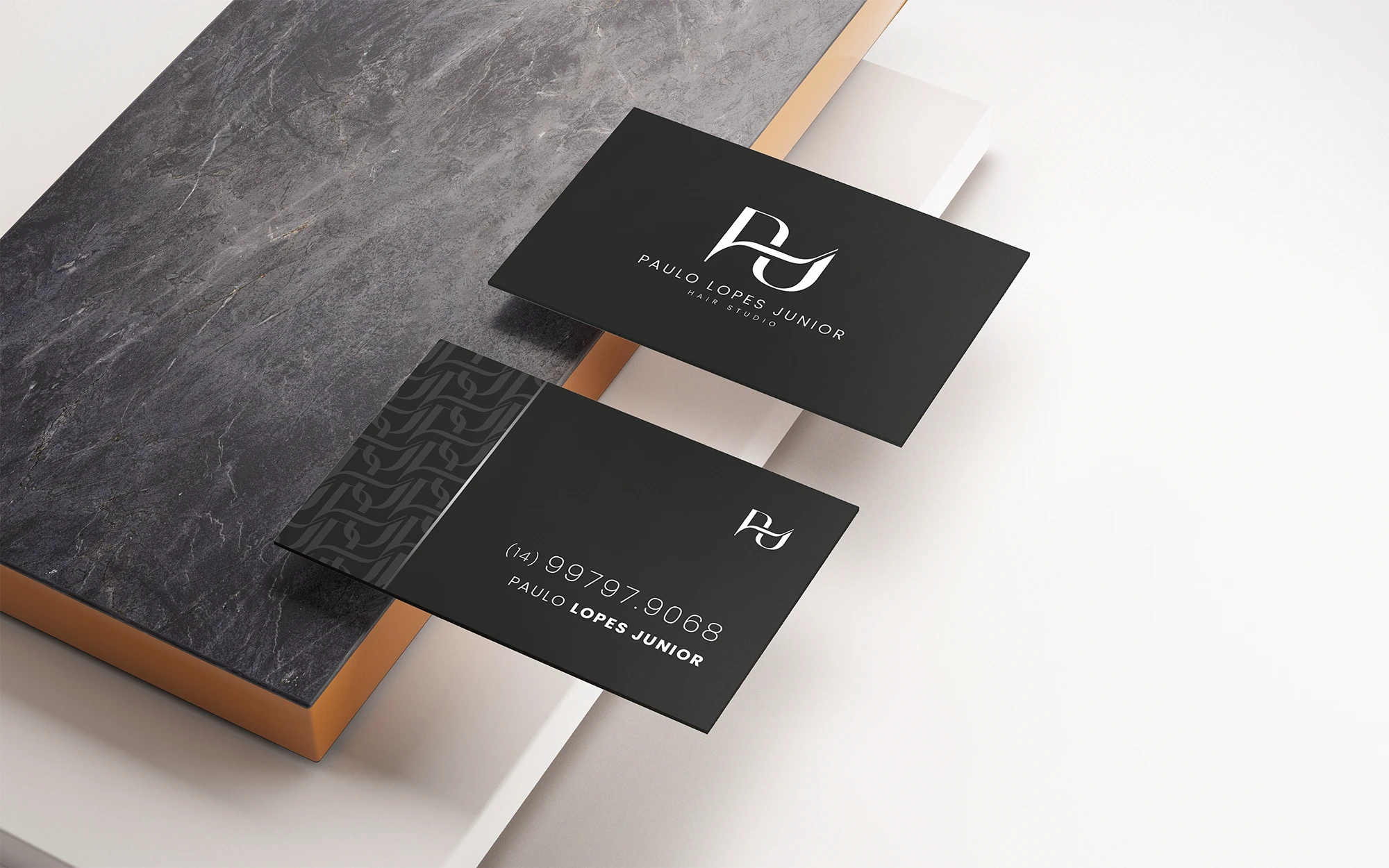 Complete visual identity project for Paulo Lopes Junior Hair Studio, a high-end salon located in Bauru.