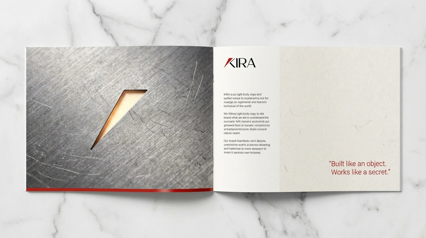 Short. Active. Final. Kira speaks like a precision manual written by someone who loves design.