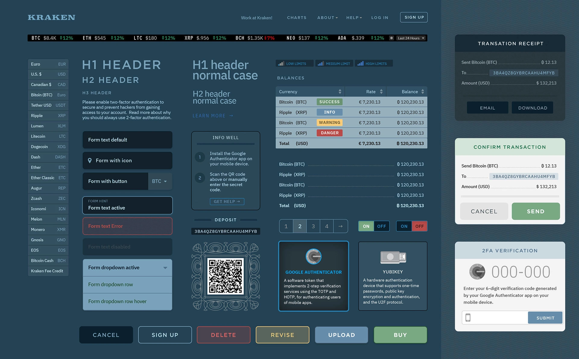 Kraken is the fifth largest cryptocurrency exchange in the world, transacting in excess of $250M in trades daily. I was tasked to overhaul the visual identity