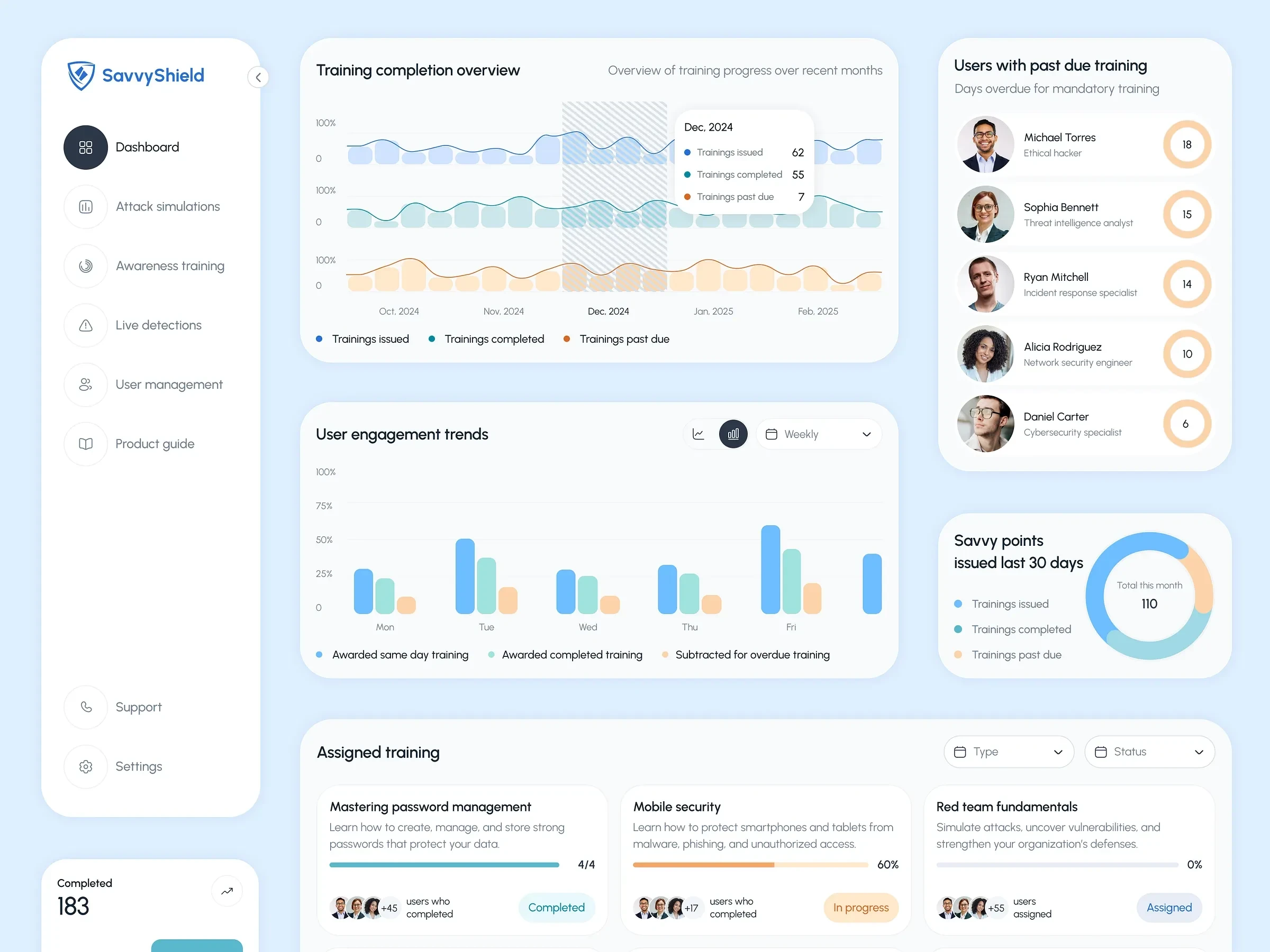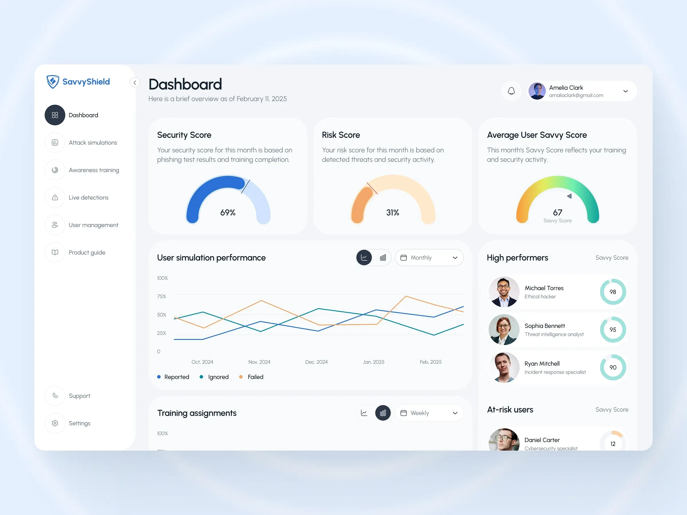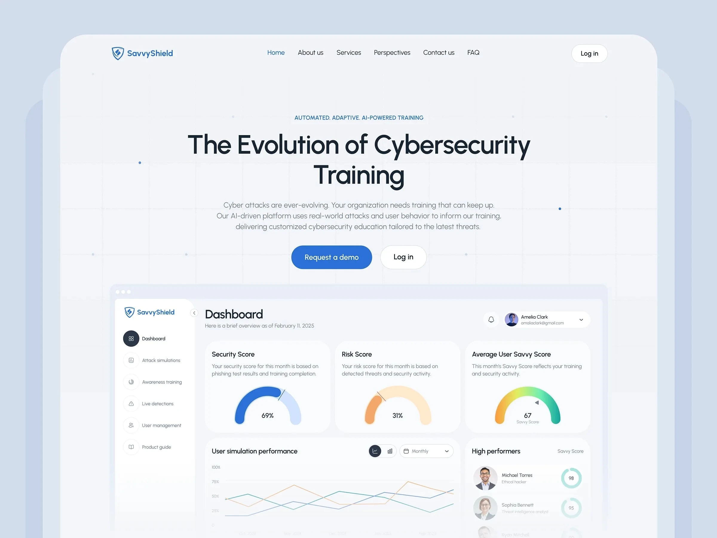 We designed SavvyShield, a cybersecurity platform created from scratch with the mission to make digital protection feel approachable, clear, and user-friendly for everyone. While cybersecurity is often perceived as complex and intimidating, the design reimagines it through a welcoming interface, simplified workflows, and intuitive visual language.