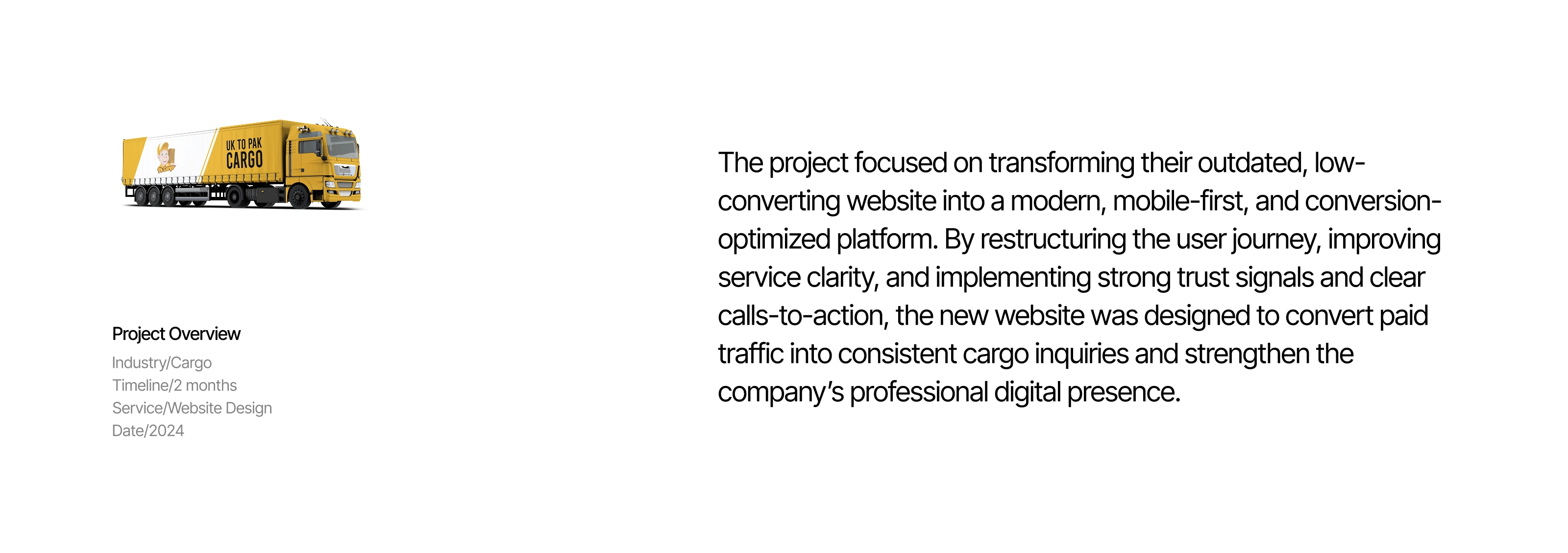 PK Cargo’s website was redesigned to transform an outdated, low-converting platform into a modern, professional one.