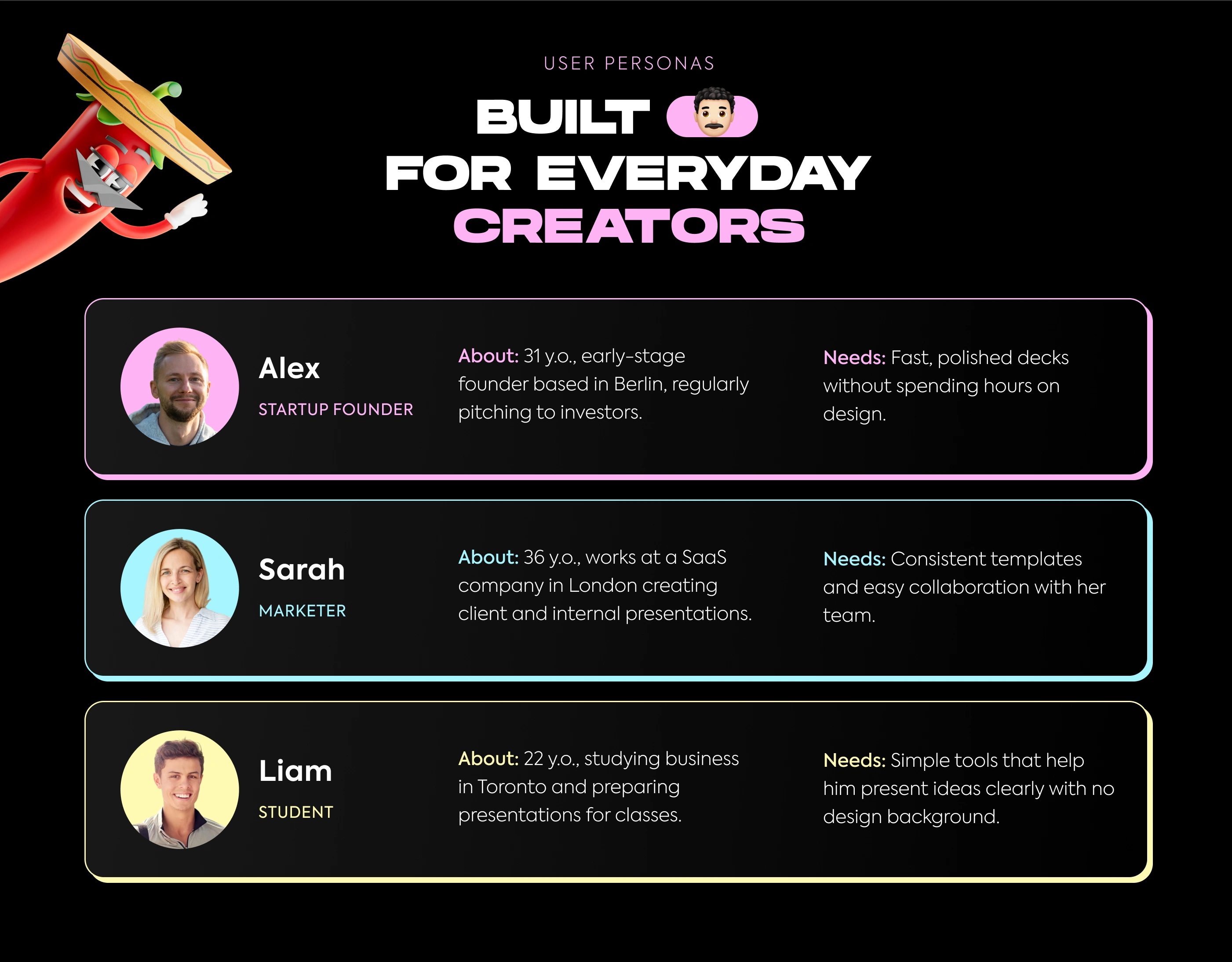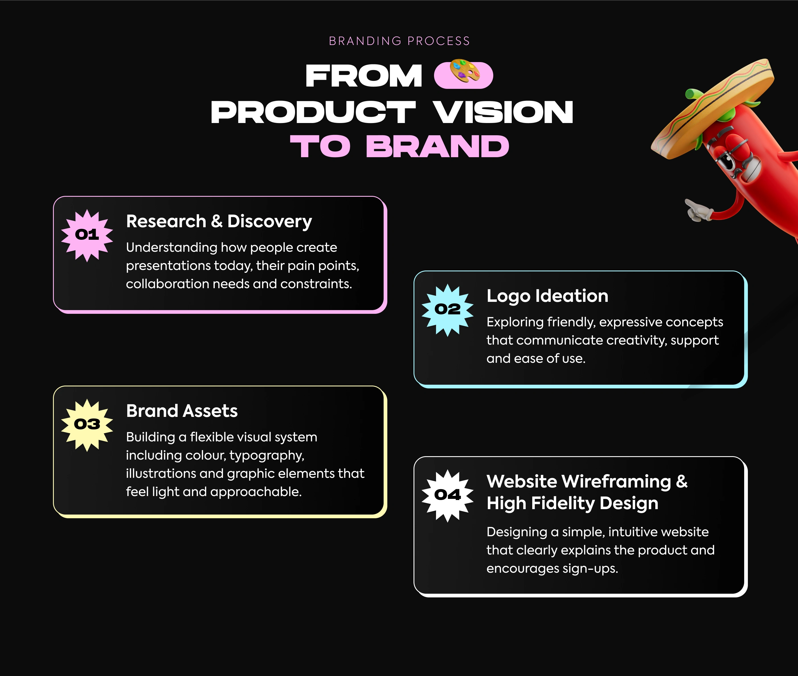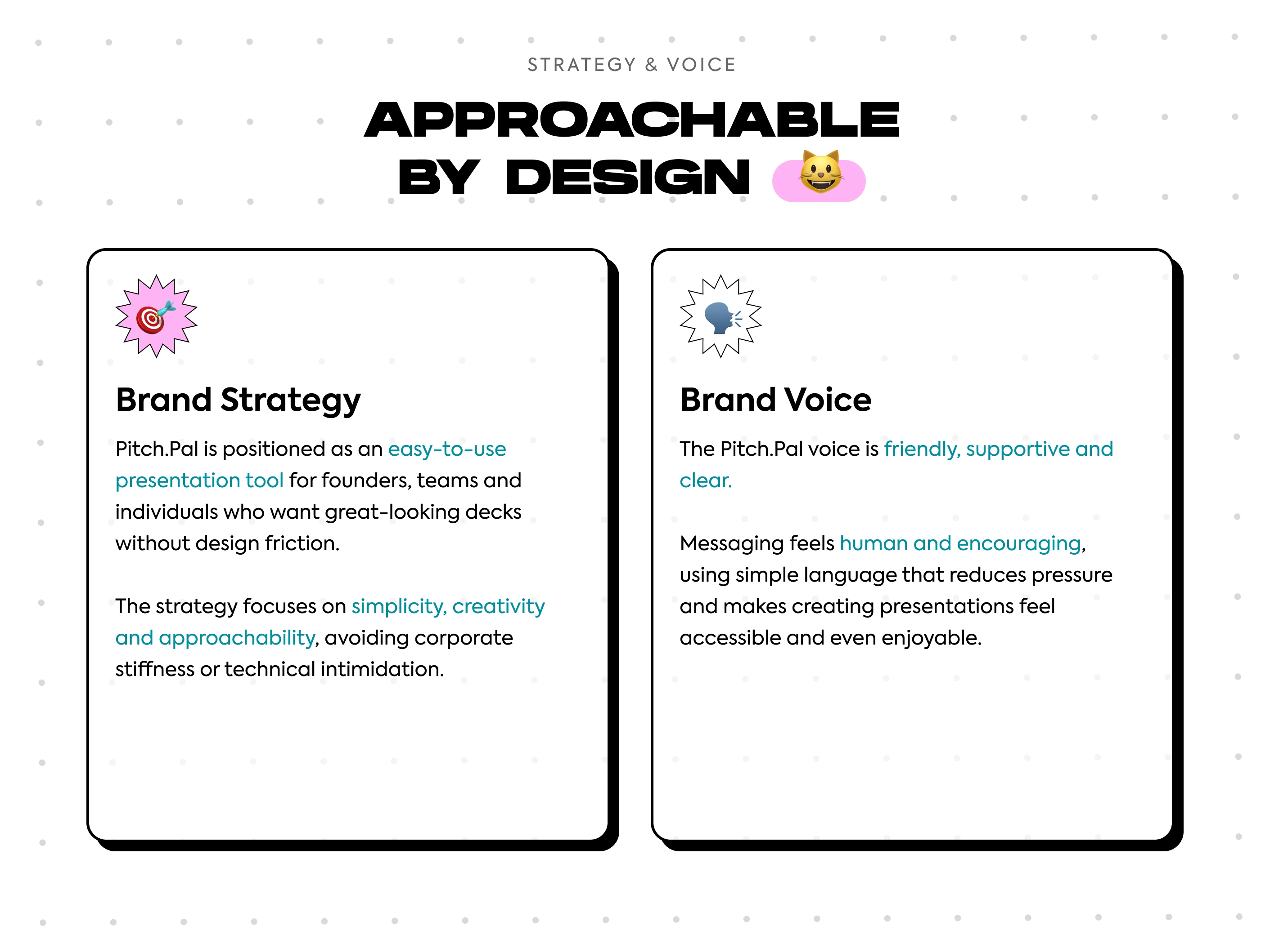 Pitch.Pal is an AI powered pitch deck builder with a playful, approachable identity.