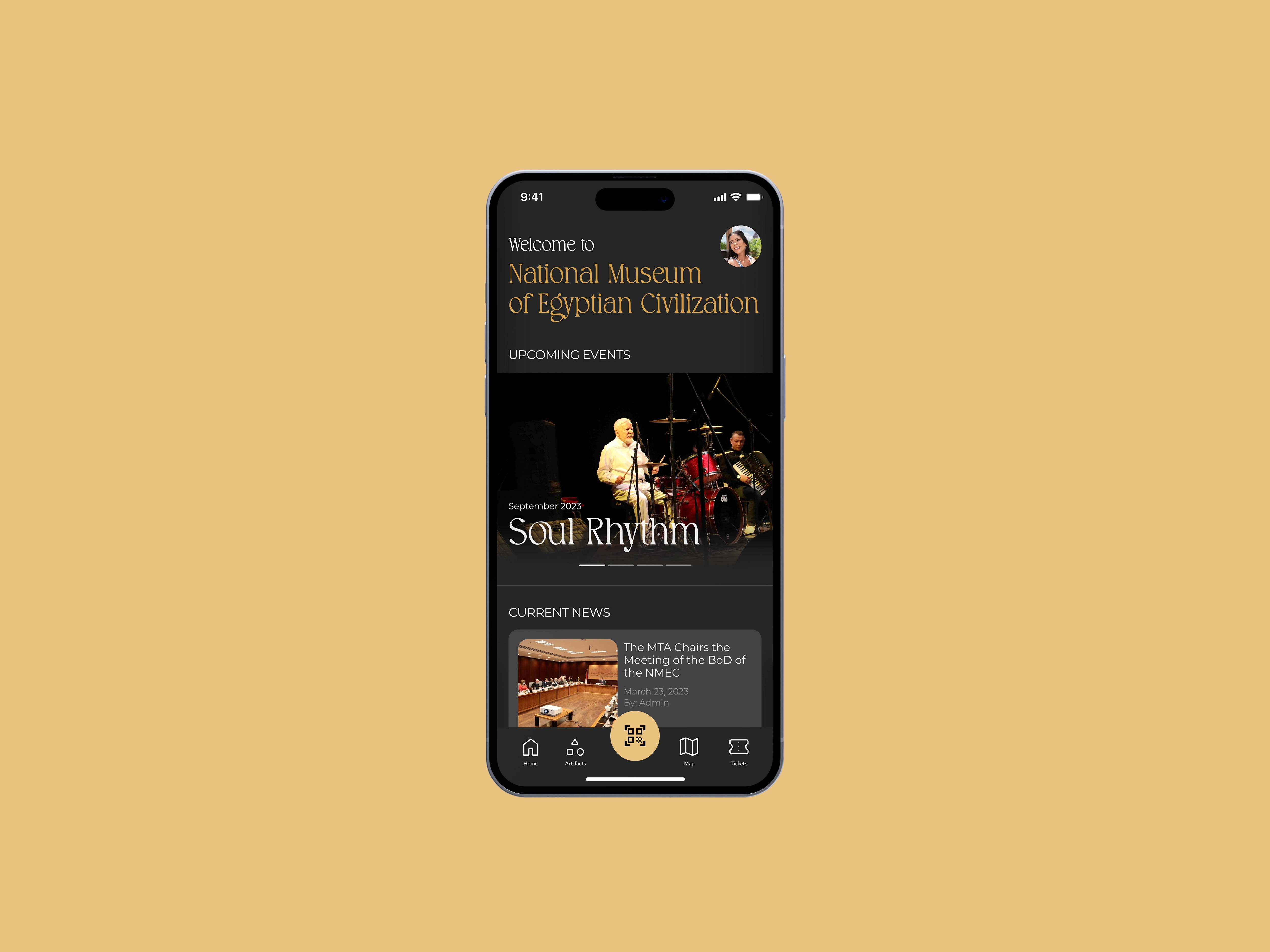 UI/UX design for an app for the National Museum of Egyptian Civilization. Video linked on Behance.