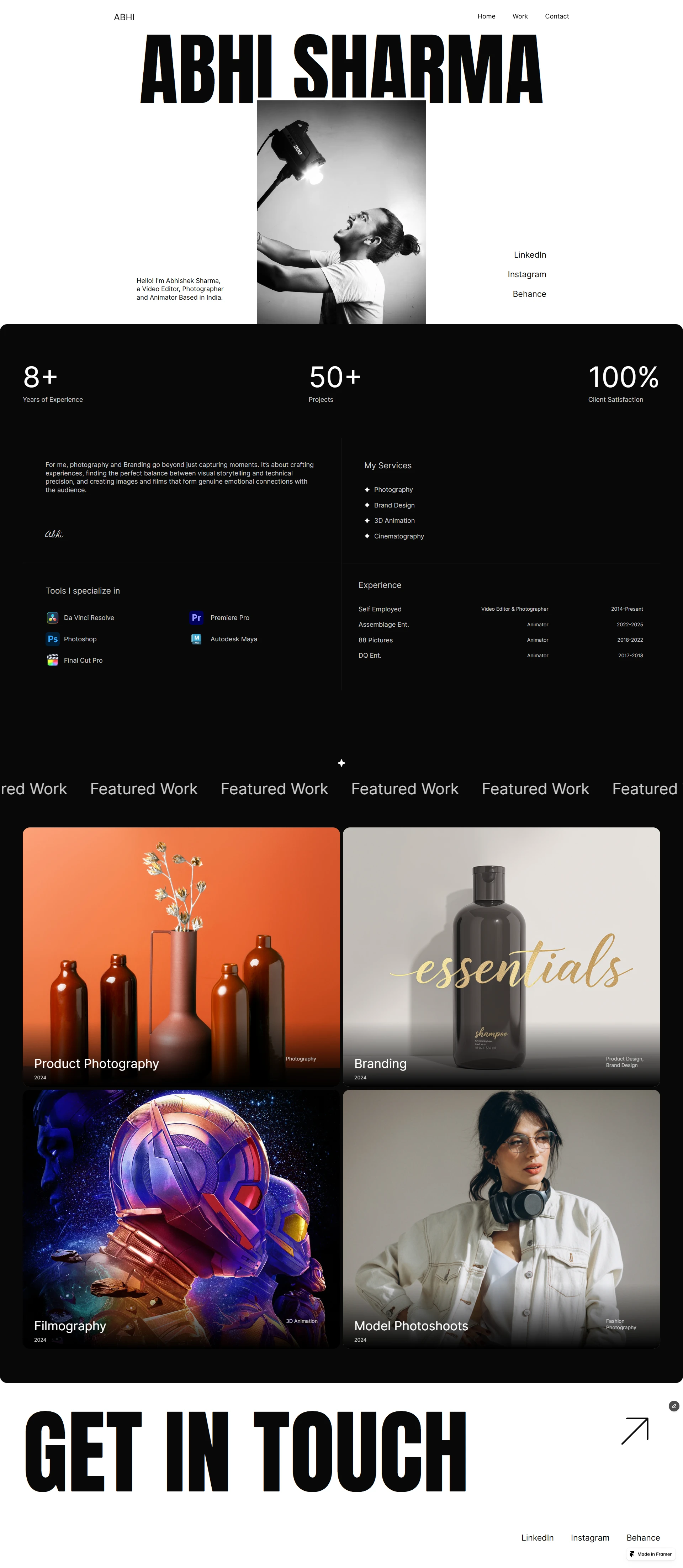 Abhishek needed a professional portfolio to showcase his diverse skills like photography, branding, animation, and cinematography in a cohesive way that builds client trust and drives inquiries.
