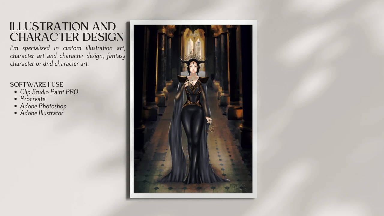 My role: Illustrator; Traits: Independent, elegant but evil.