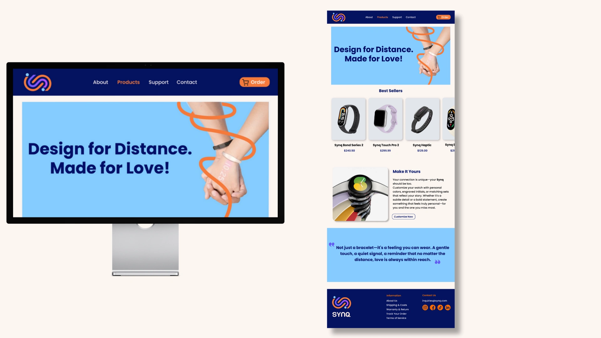 SYNQ is a Toronto-based technology company creating innovative wearables that help couples in long-distance relationships stay connected through simulated touch. Using haptic feedback, SYNQ enables meaningful physical interactions from anywhere.