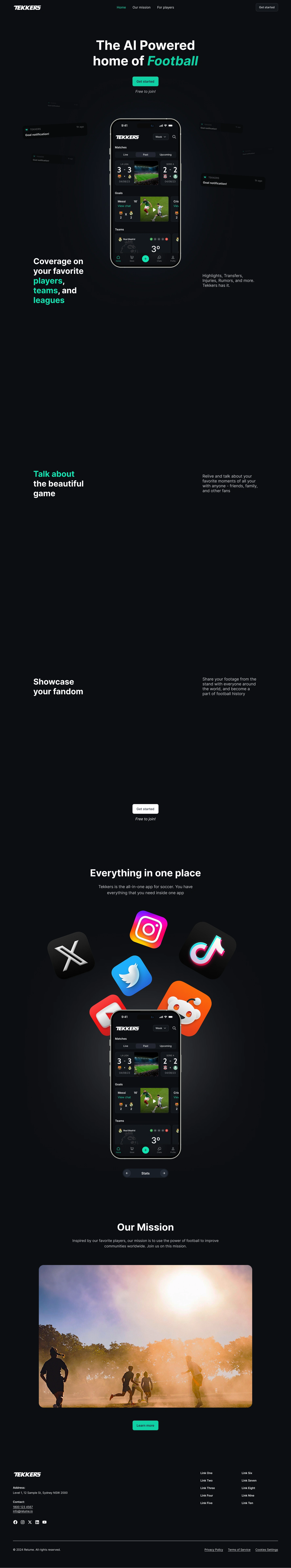 Landing page design for the "AI Powered home of Football". Features a sleek, conversion-focused layout that highlights the app's key value propositions.