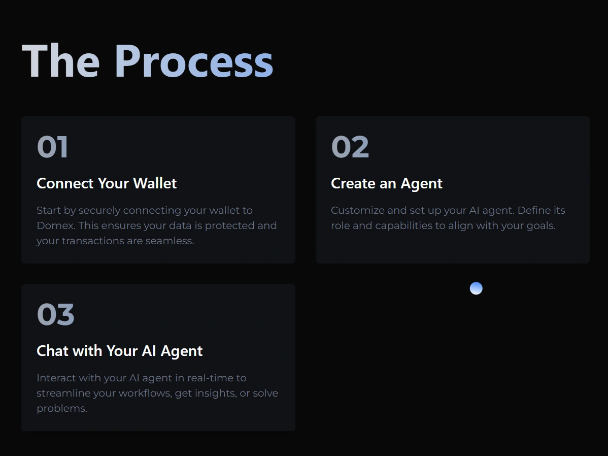 Developed Domex, a sleek Web3 platform that allows users to connect digital wallets like Phantom and create personalized agents using their on-chain assets.