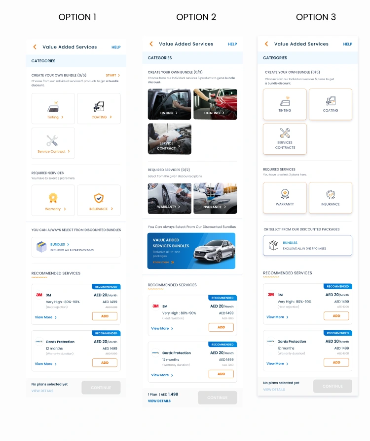 Integrate brief VAS callouts within car detail pages—so users learn about tinting, warranty, or coating at the moment they’re researching a car.