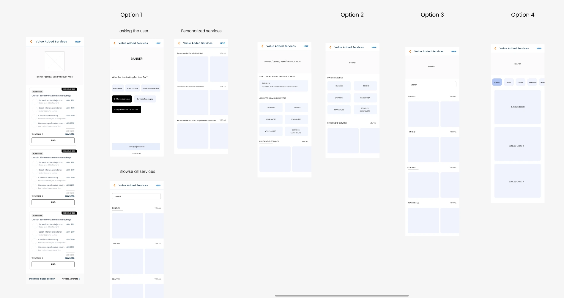 After presenting the initial sketches, we aligned on two wireframe directions. I then fleshed out detailed mockups for both options, ready for user feedback and A/B testing.