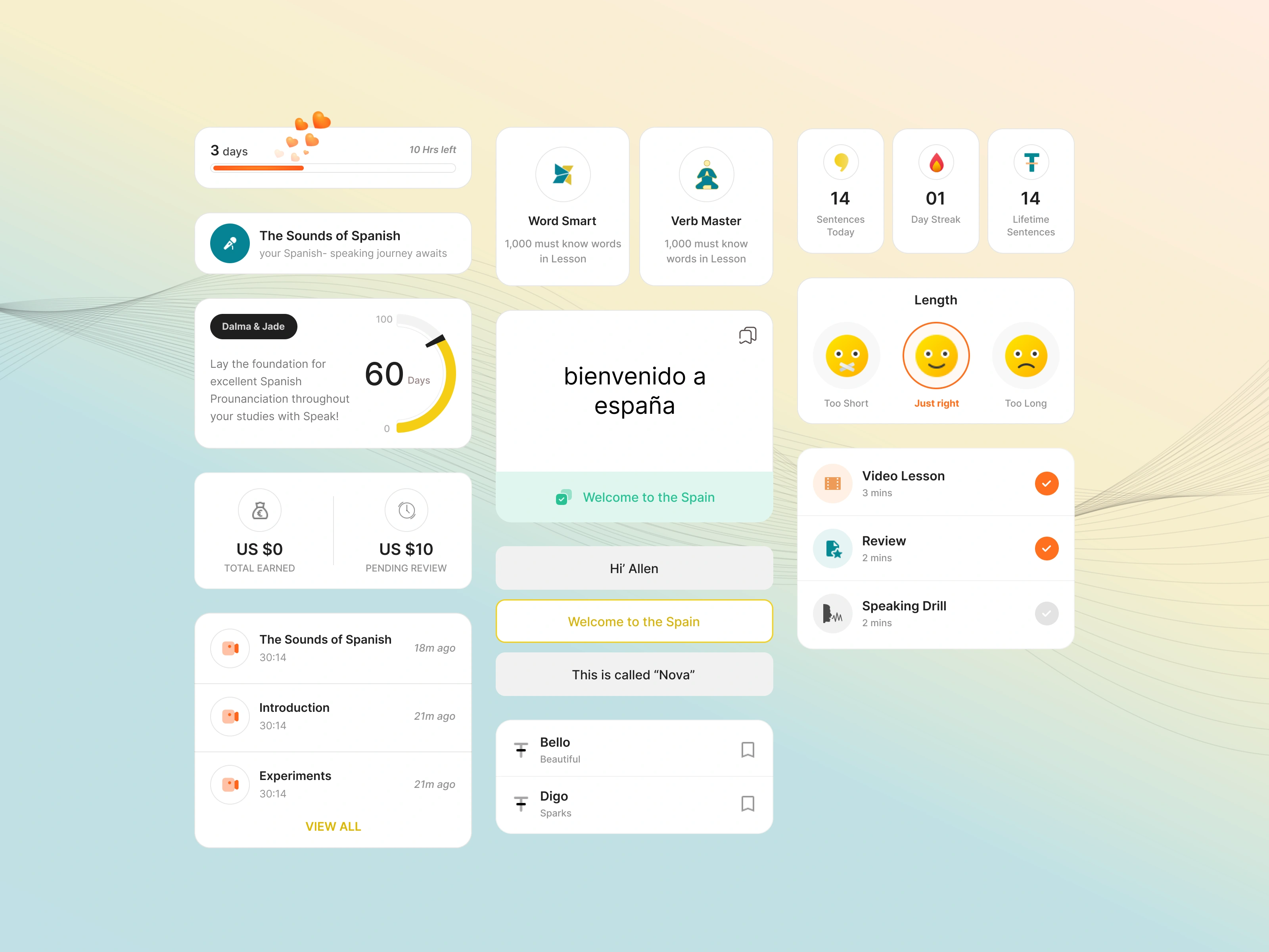 Nova is a mobile learning platform designed to make language acquisition engaging and habit-forming. By utilizing micro-lessons and visual rewards, the app helps users master complex languages (like Spanish) through a structured, interactive curriculum. The goal was to create an interface that feels energetic, encouraging, and easy to navigate during short study sessions.