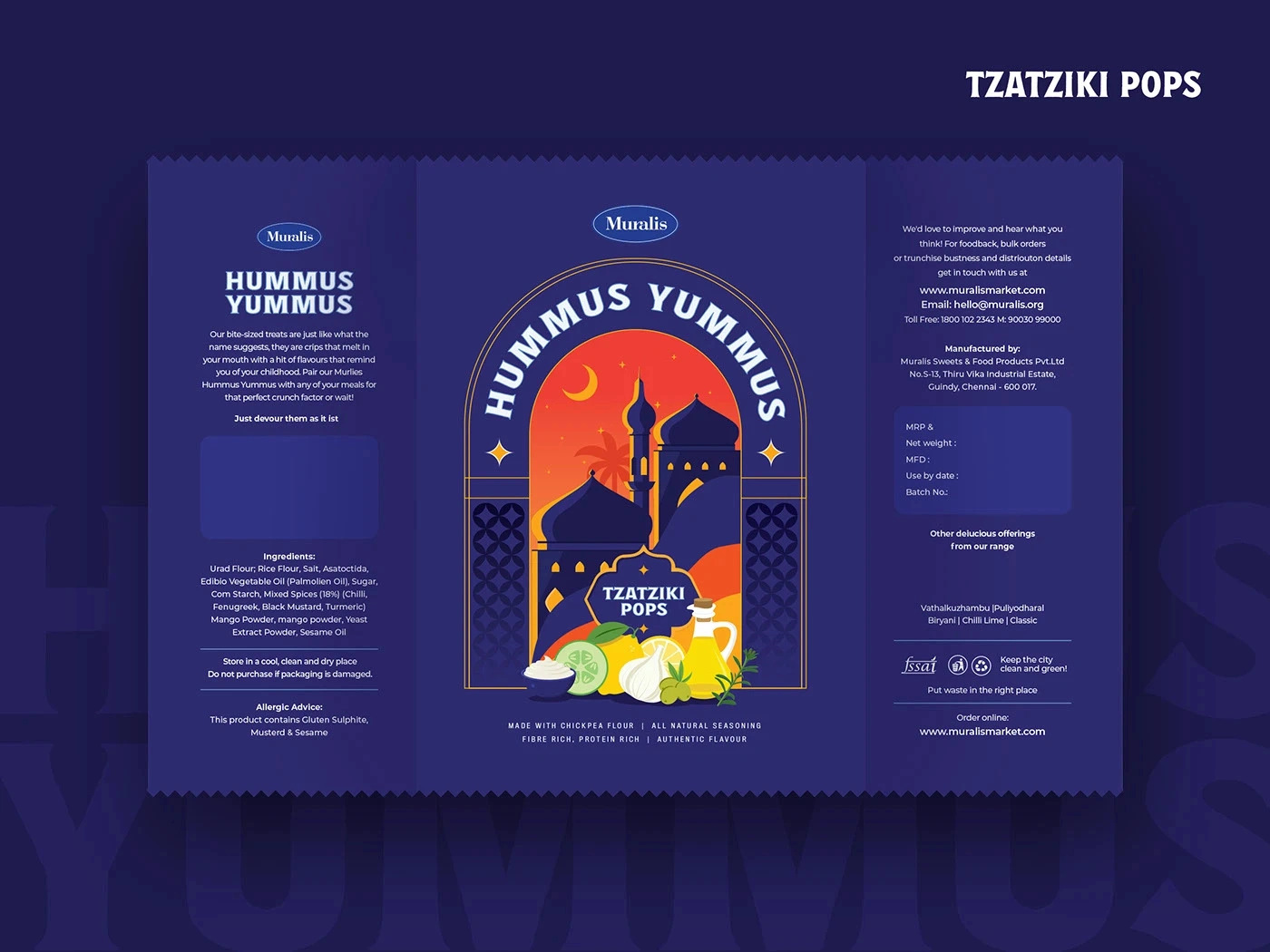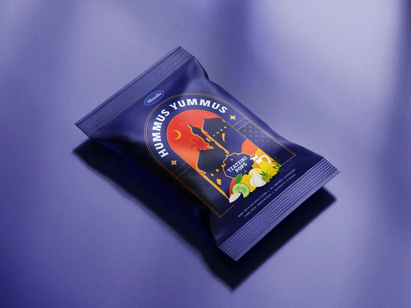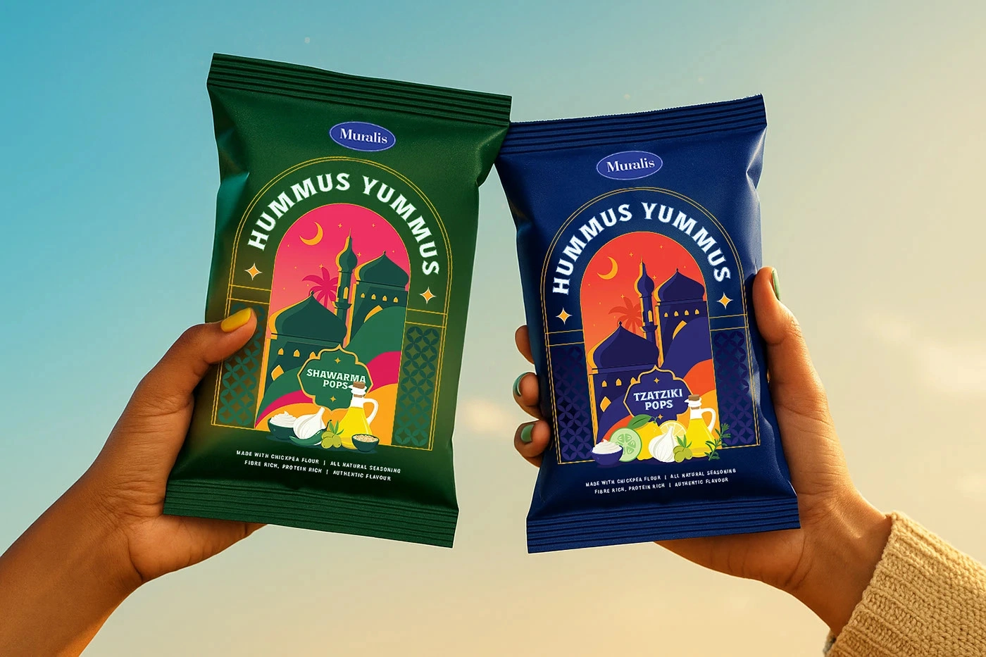 Using bold colors, custom illustrations, and silhouettes inspired by Middle Eastern architecture, I crafted a system that felt both premium and playful. Each flavor was given its own vibrant palette, while a unified layout kept the brand identity consistent across the range.