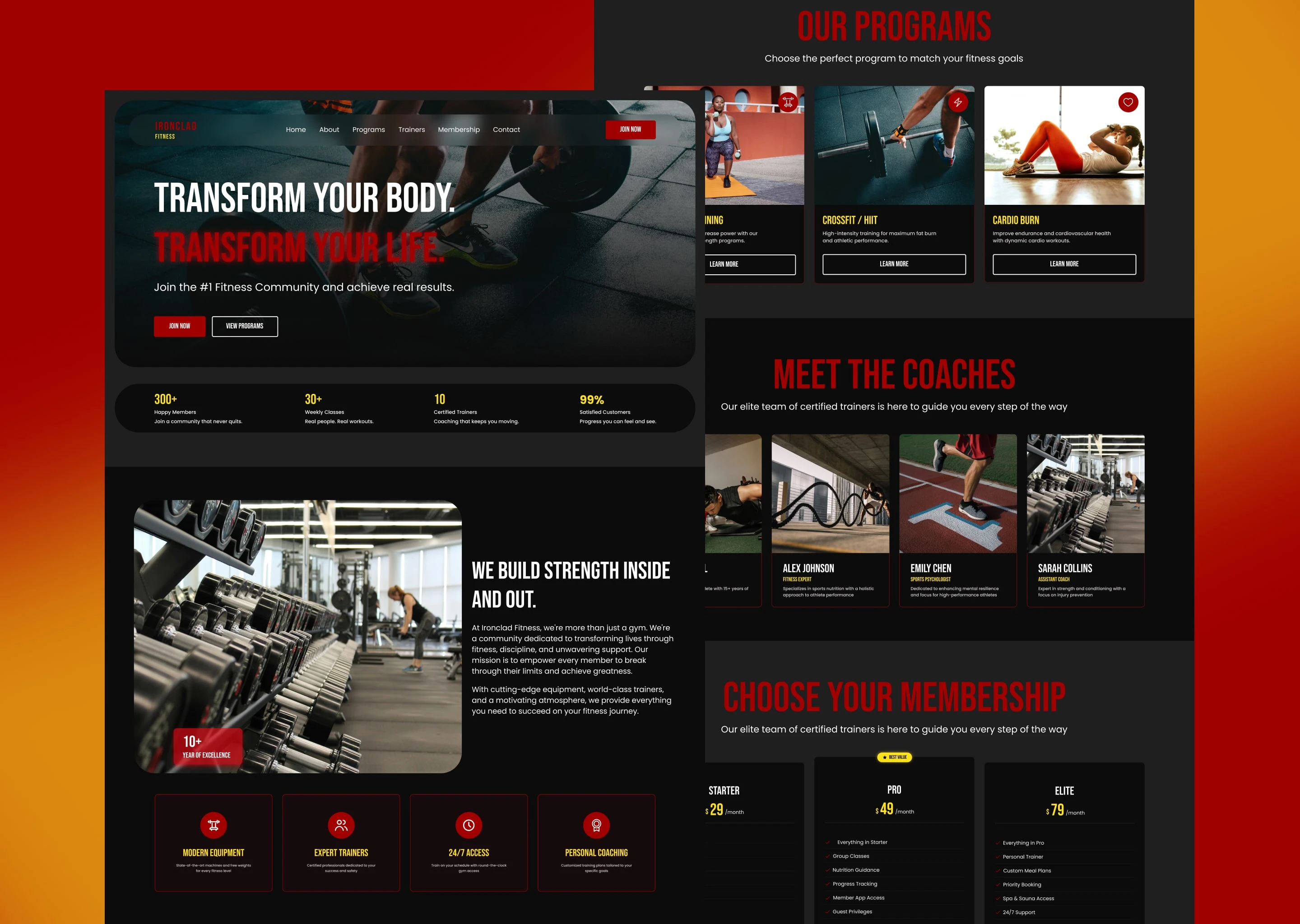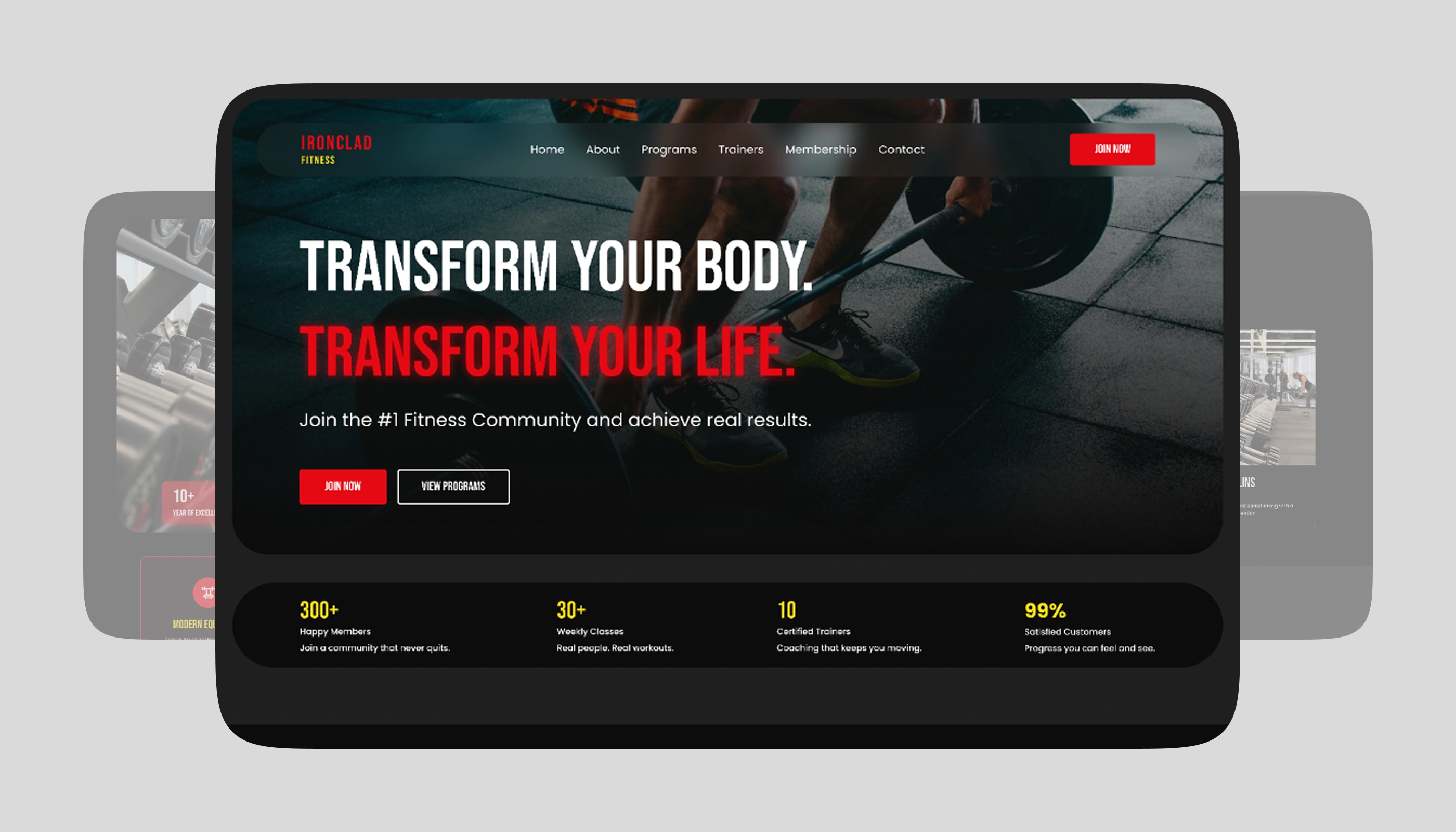 This project focuses on designing a modern and dynamic gym website that highlights energy, motivation, and progress. The goal was to create an engaging online presence for a fitness brand that connects with users visually and emotionally, while making information about services, training programs, and memberships easily accessible.