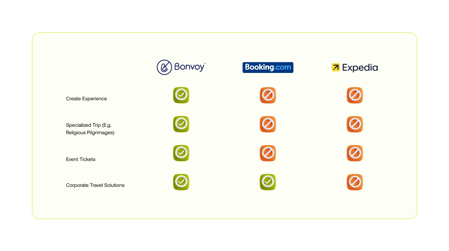 Analyzing the competitors, Bonvoy sets itself apart by offering unique services tailored to its customers. Here are the features that make Bonvoy stand out in the travel market