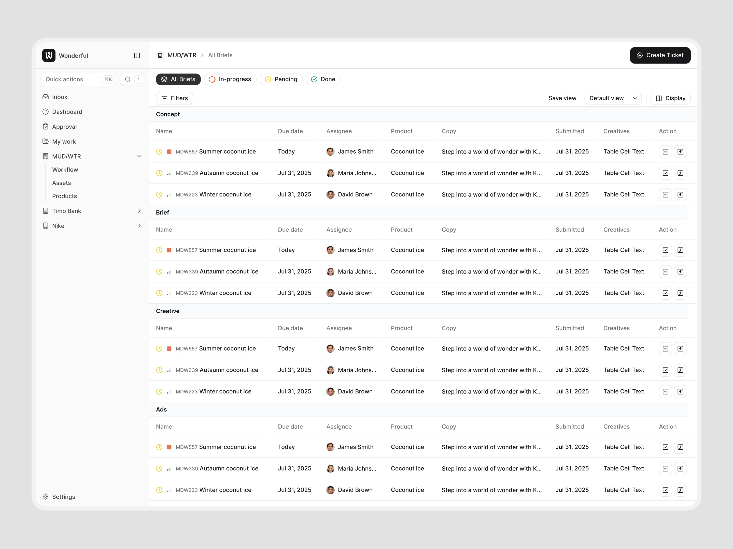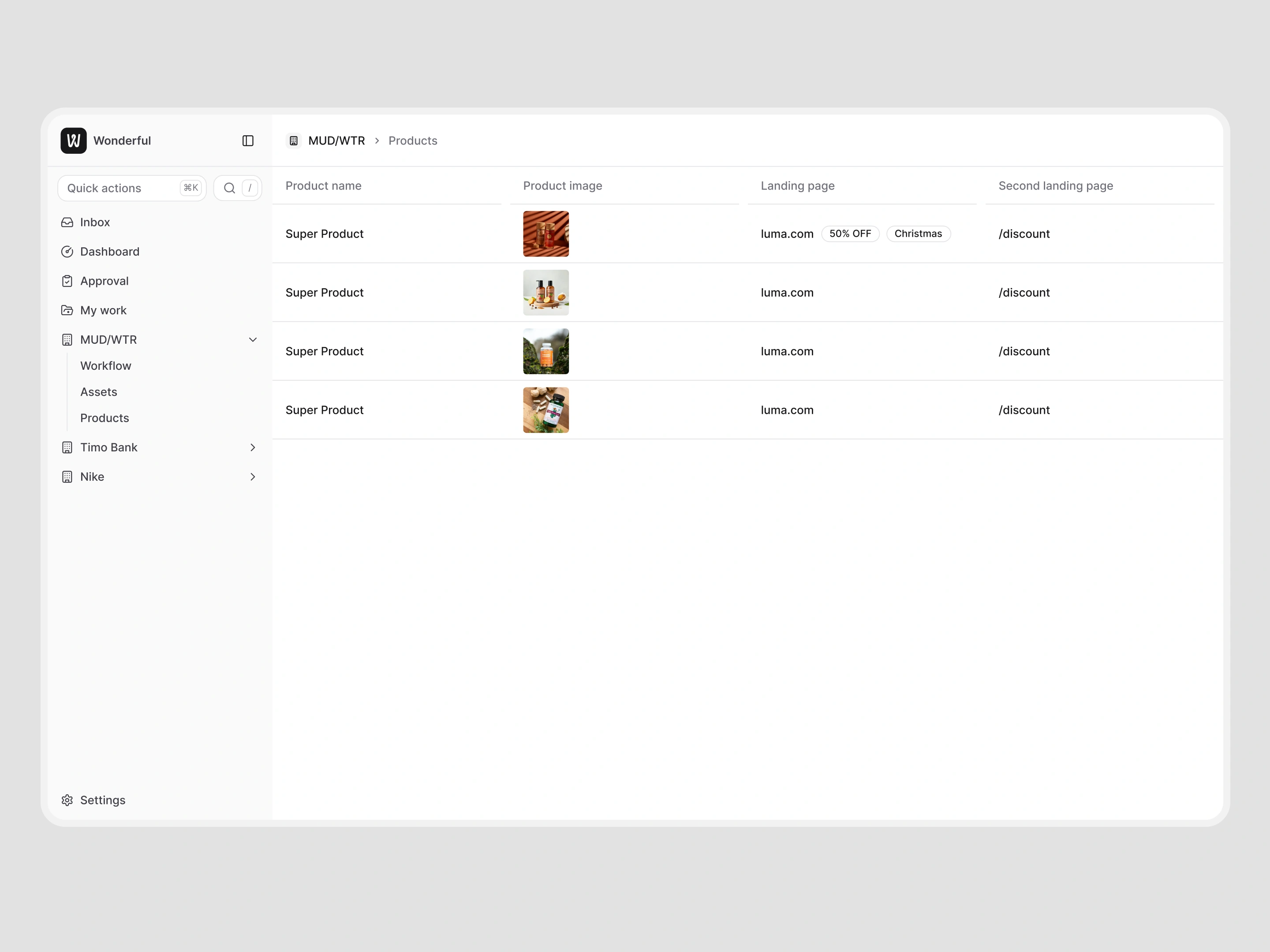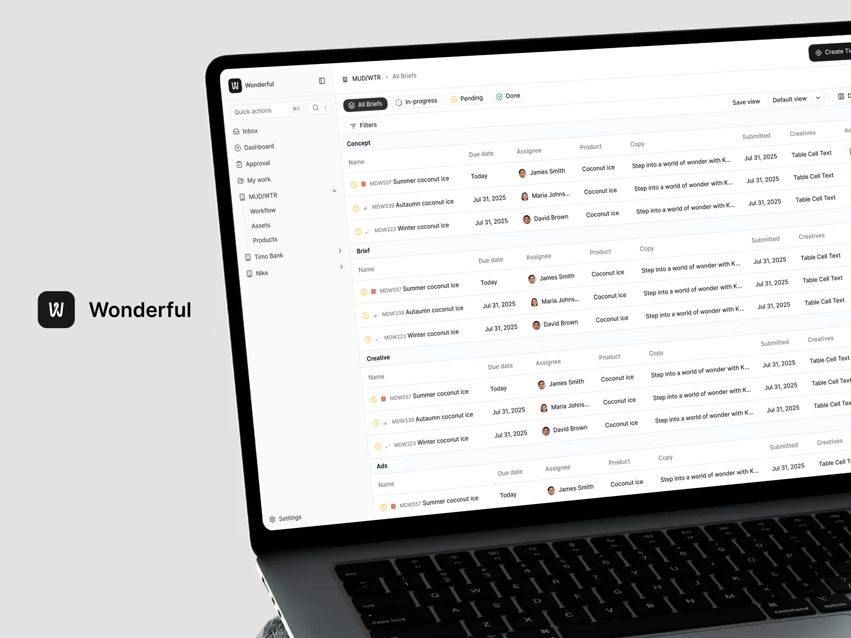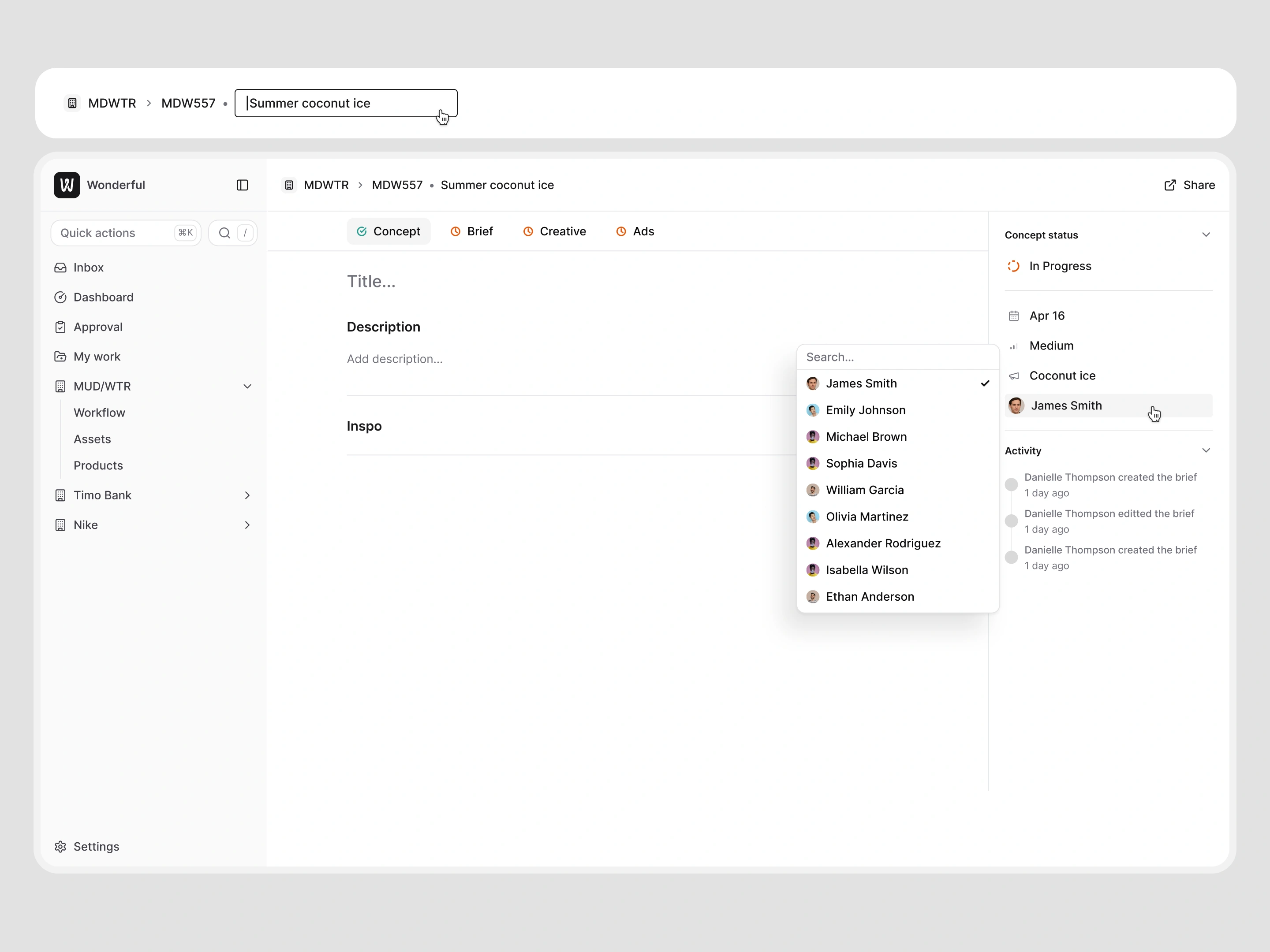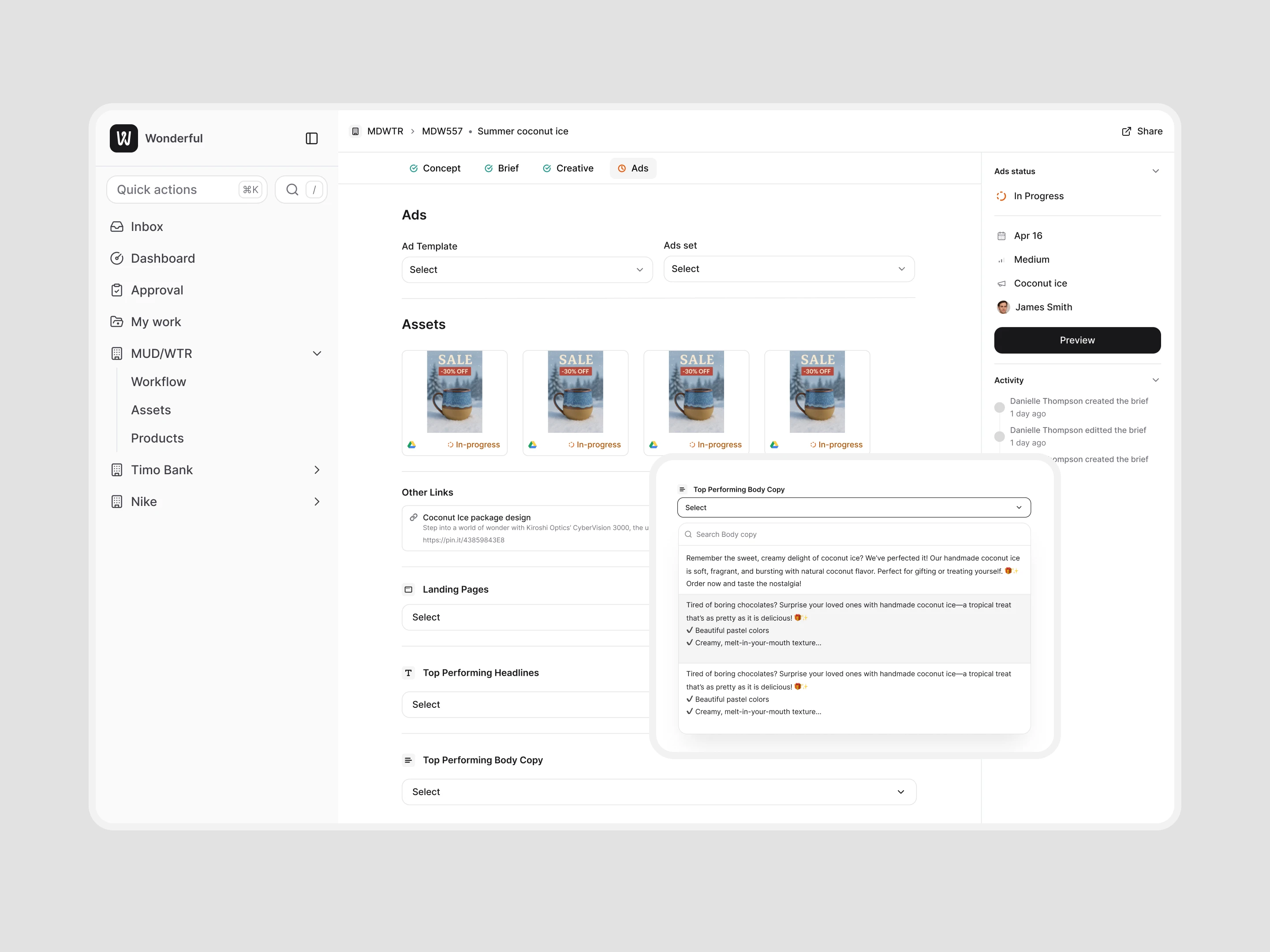 Wonderful was a platform I designed to help multinational brands manage creative and eCommerce campaigns in one place. At the time, most teams were stuck juggling Airtable, Google Docs, and email threads to coordinate influencers, assets, and campaign feedback. Wonderful streamlined that workflow into a single tool.