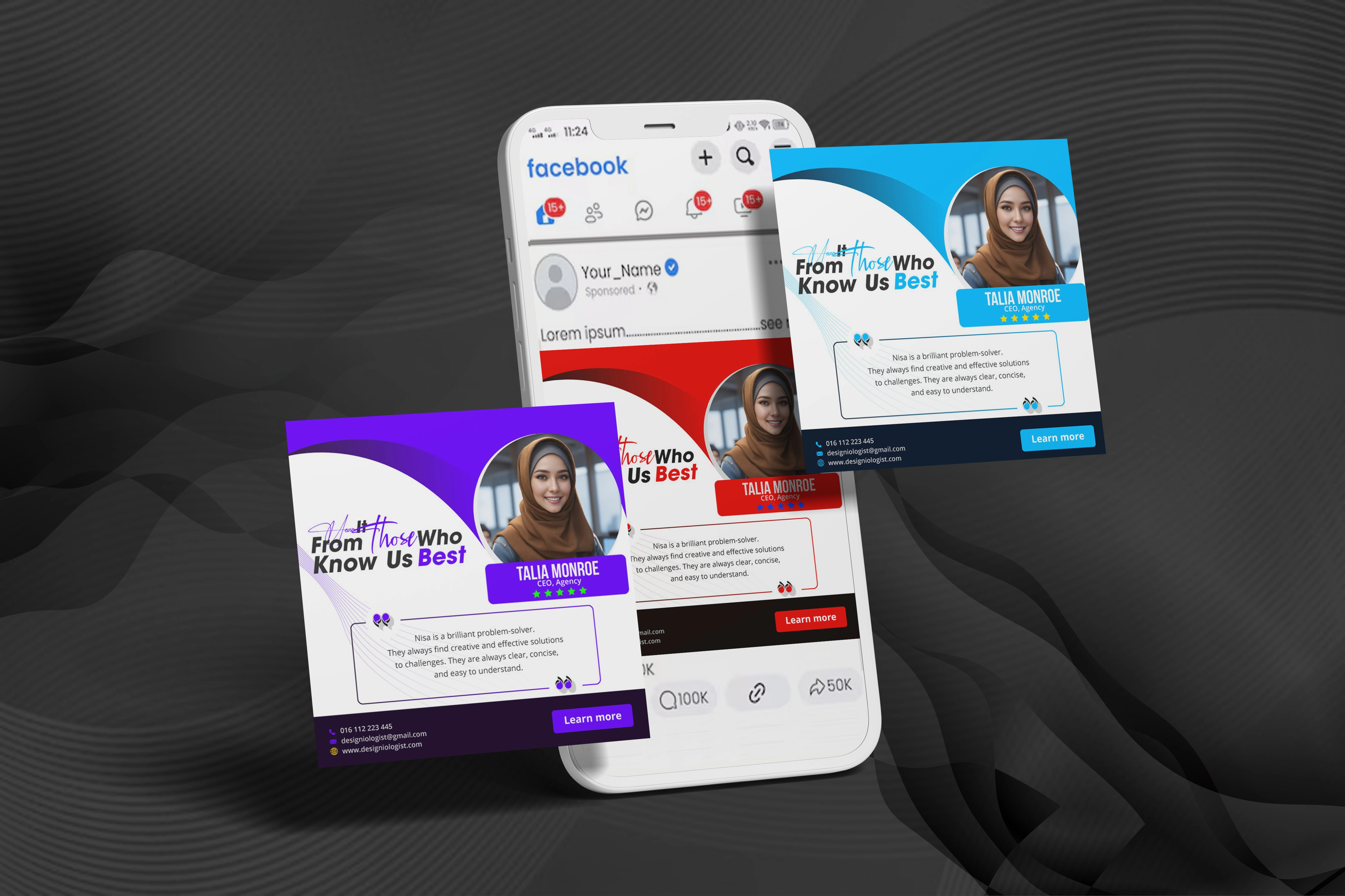 I was hired as a freelance designer to create sleek and modern client testimonial visuals for a digital brand looking to enhance clean and high impact displays