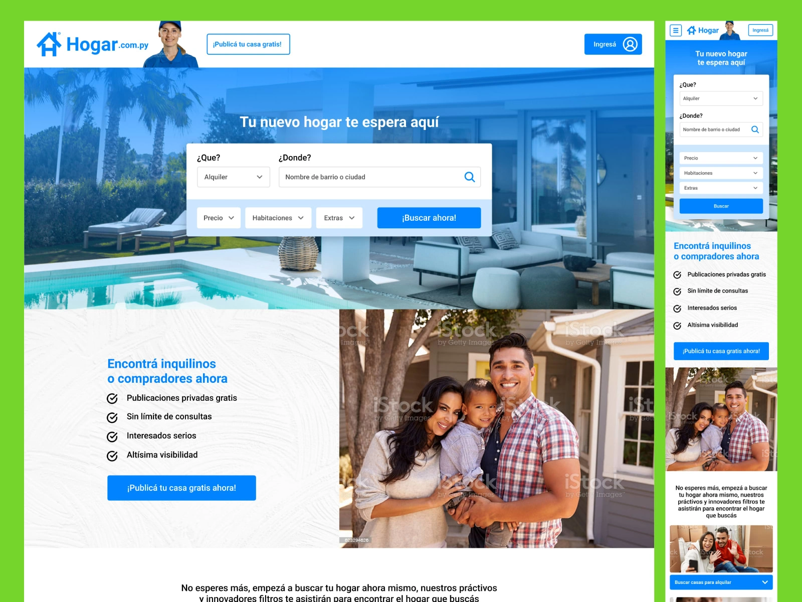 Naming, Brand Design, UI/UX Design and Webflow Development for Hogar, a Leading Home Broker in our Country