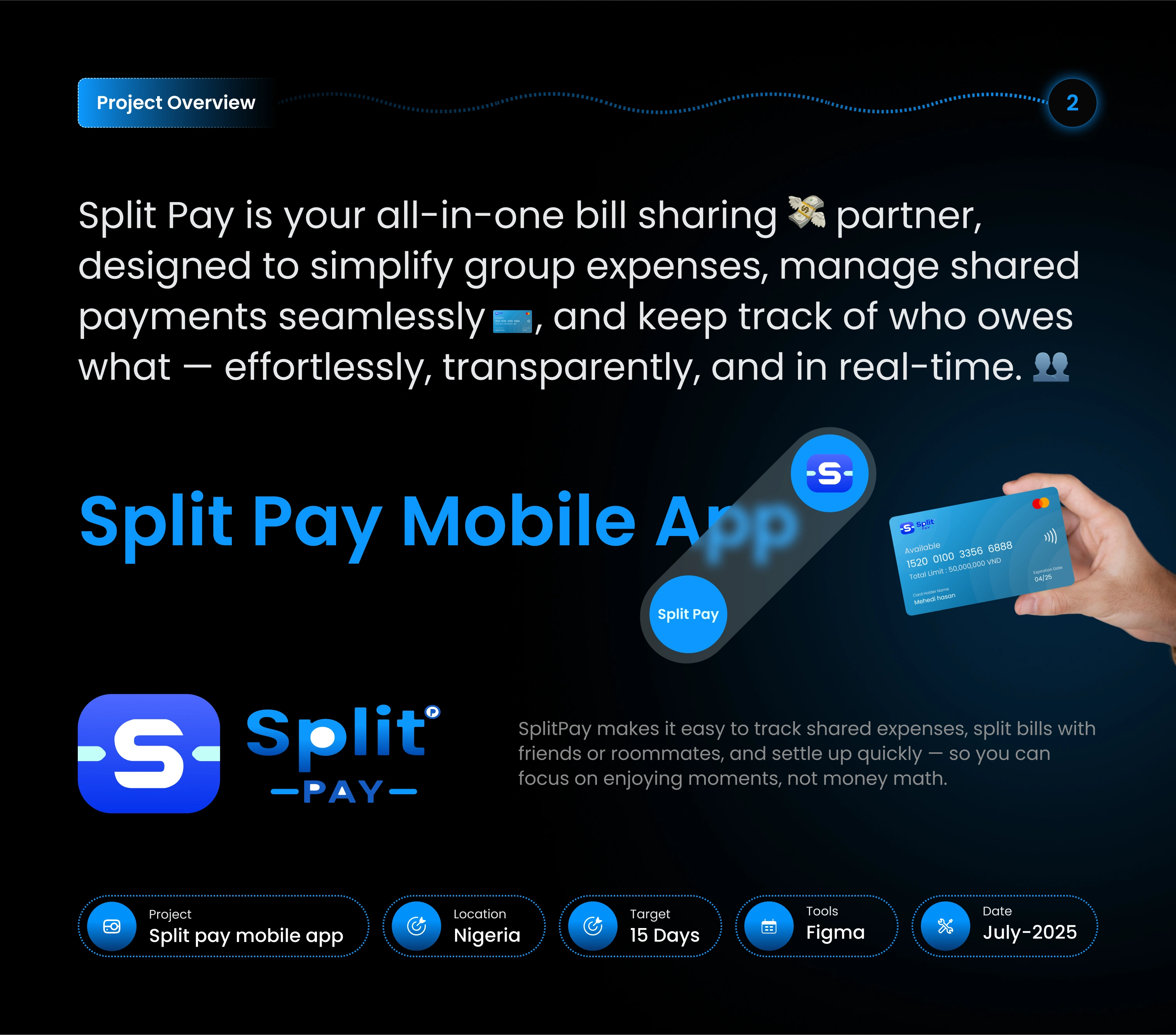 Designed Split pay mobile app, focusing on modern UI, seamless UX, and responsive layouts. Delivered assets & prototype in Figma.