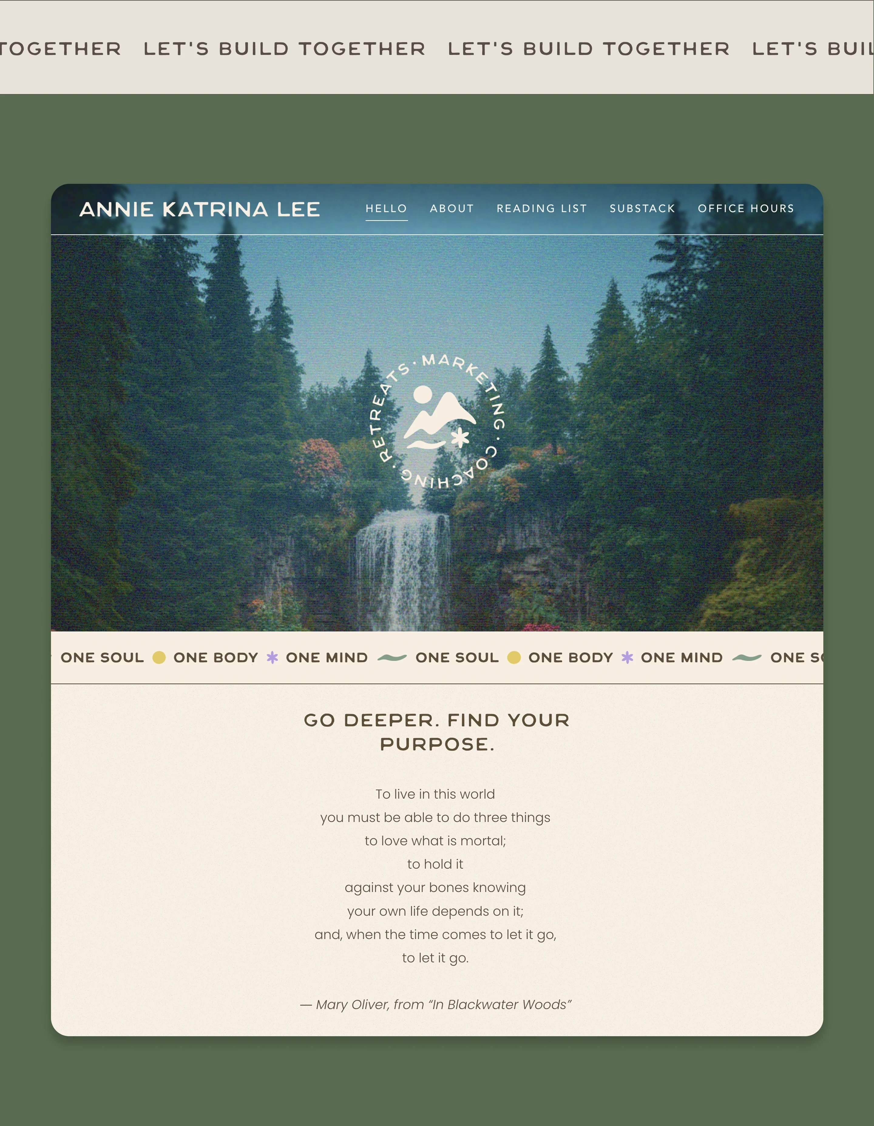 Designed a visual identity & Squarespace website, capturing the intersection of marketing, leadership & wellness through a grounded, nature-inspired aesthetic.