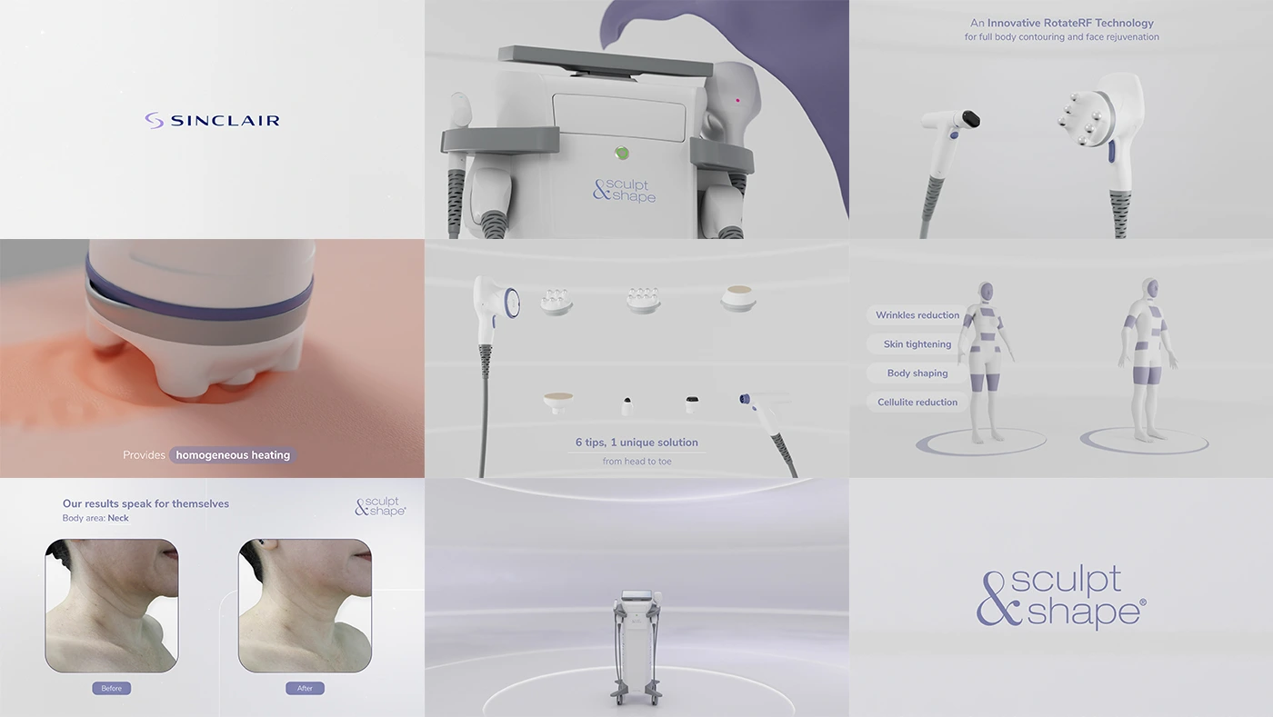 Launch campaign for Sculpt&Shape®, a Sinclair device using RotateRF technology for full-body contouring and facial rejuvenation.