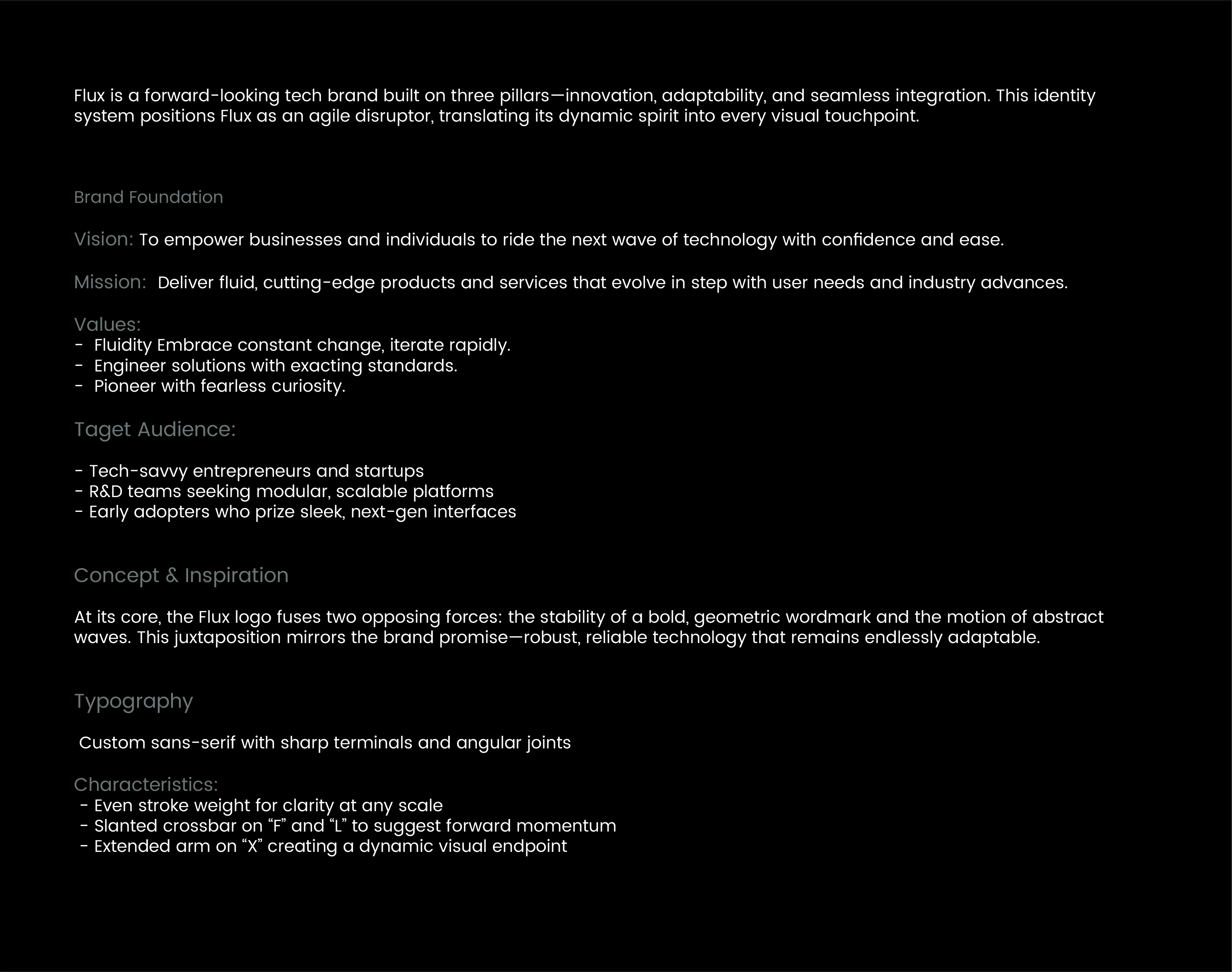 Logo and Brand Identity Design for FLux, a tech startup that will revolutionise the world