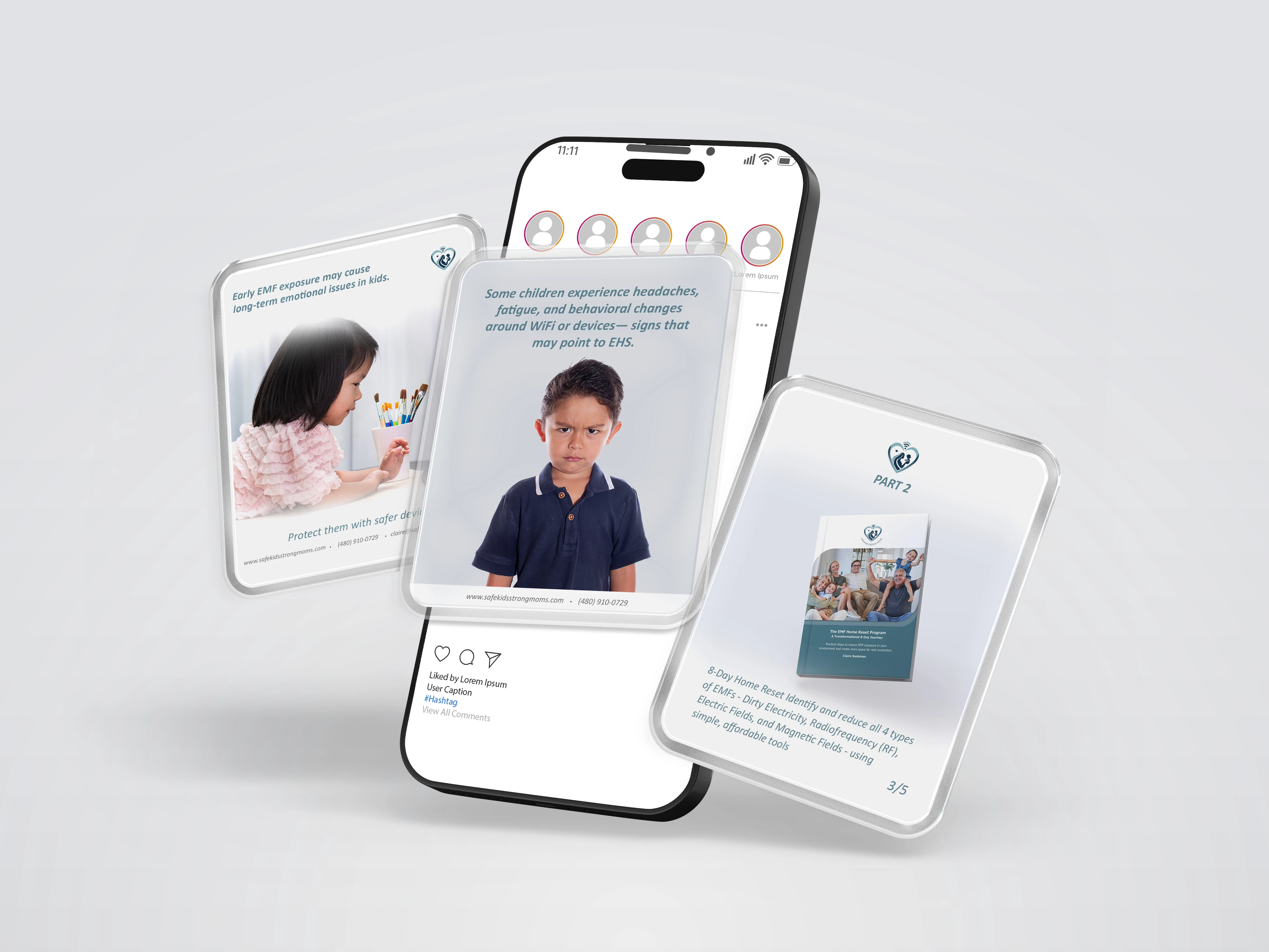 A complete branding and design package created for Safe Kids Strong Moms, an entrepreneurial initiative focused on empowering mothers and promoting child safety. The client wanted a clean, modern visual identity that felt approachable and not overly saturated. The final package included social media graphics, book layouts, flyers, posters, presentation templates, business cards, and more.