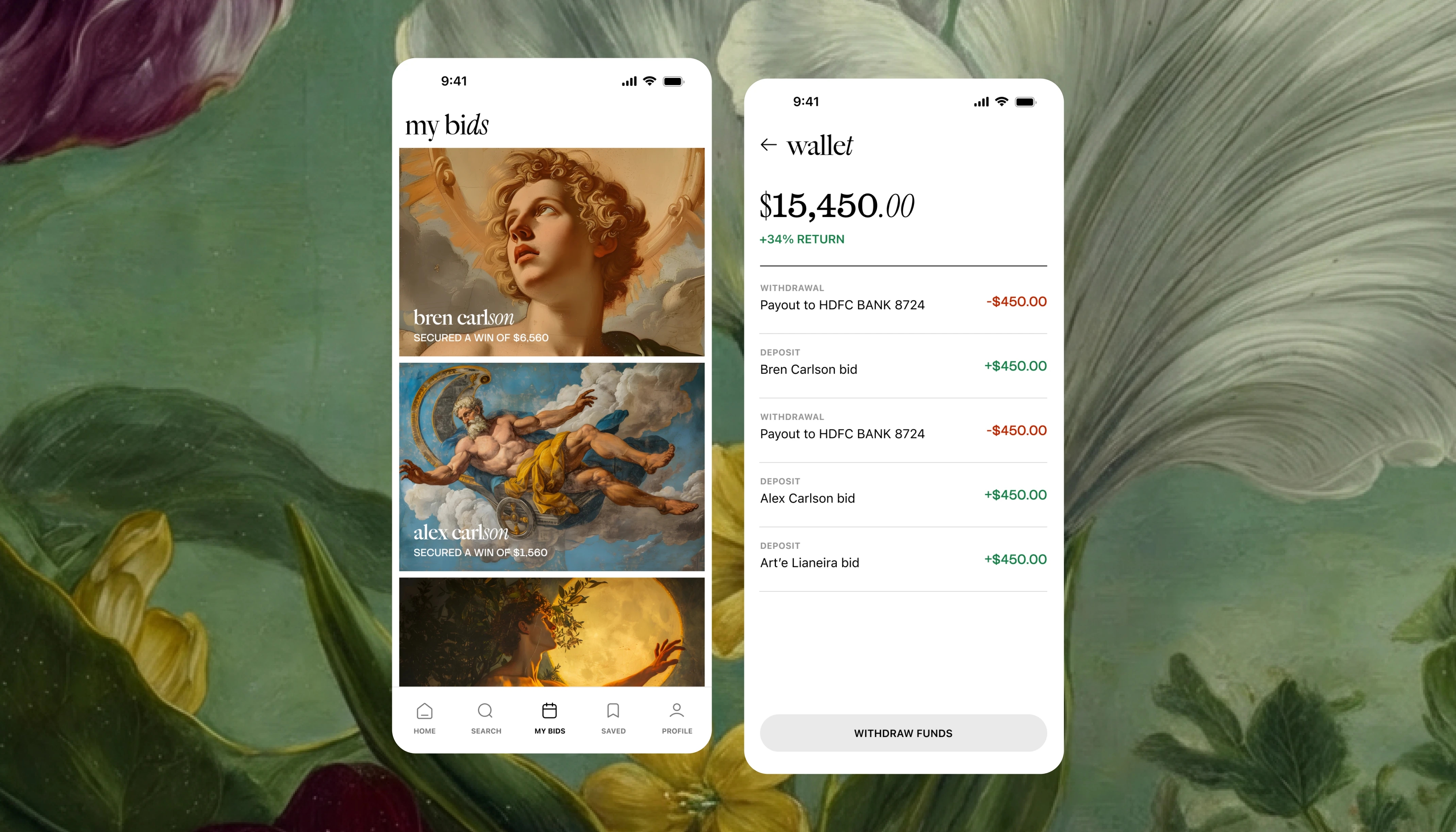 Most bidding or marketplace apps feel transactional and cluttered. They focus on data, numbers, and dashboards, which often distract from the emotional and visual experience of art.