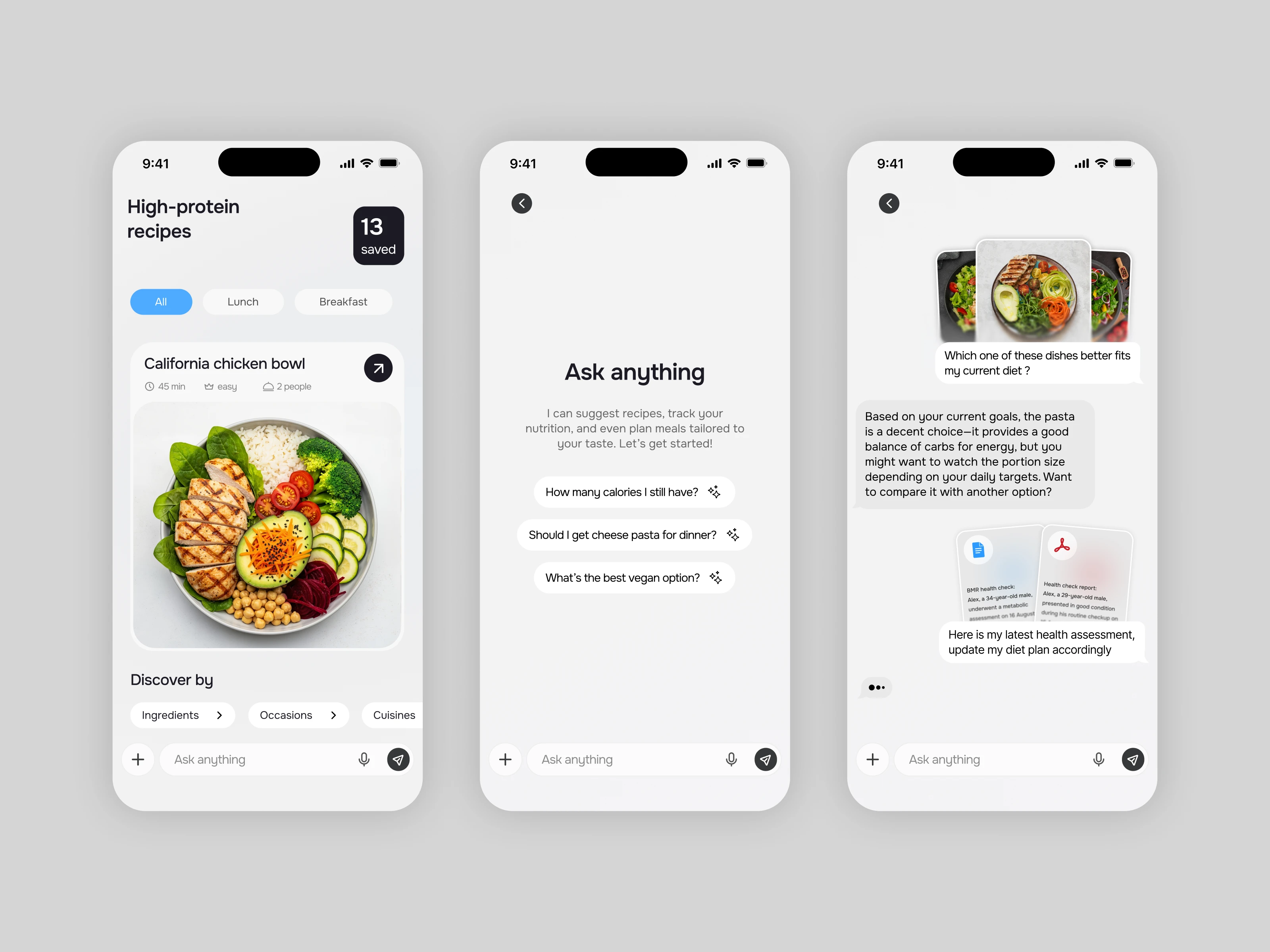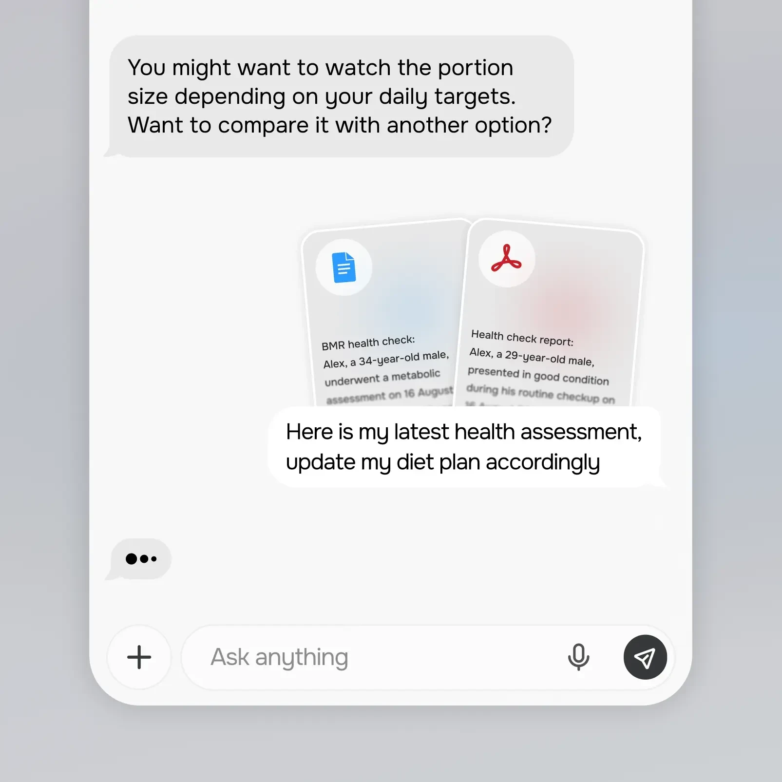 • A smart chat experience that analyzes user inputs, compares dishes, and adjusts meal plans based on health data