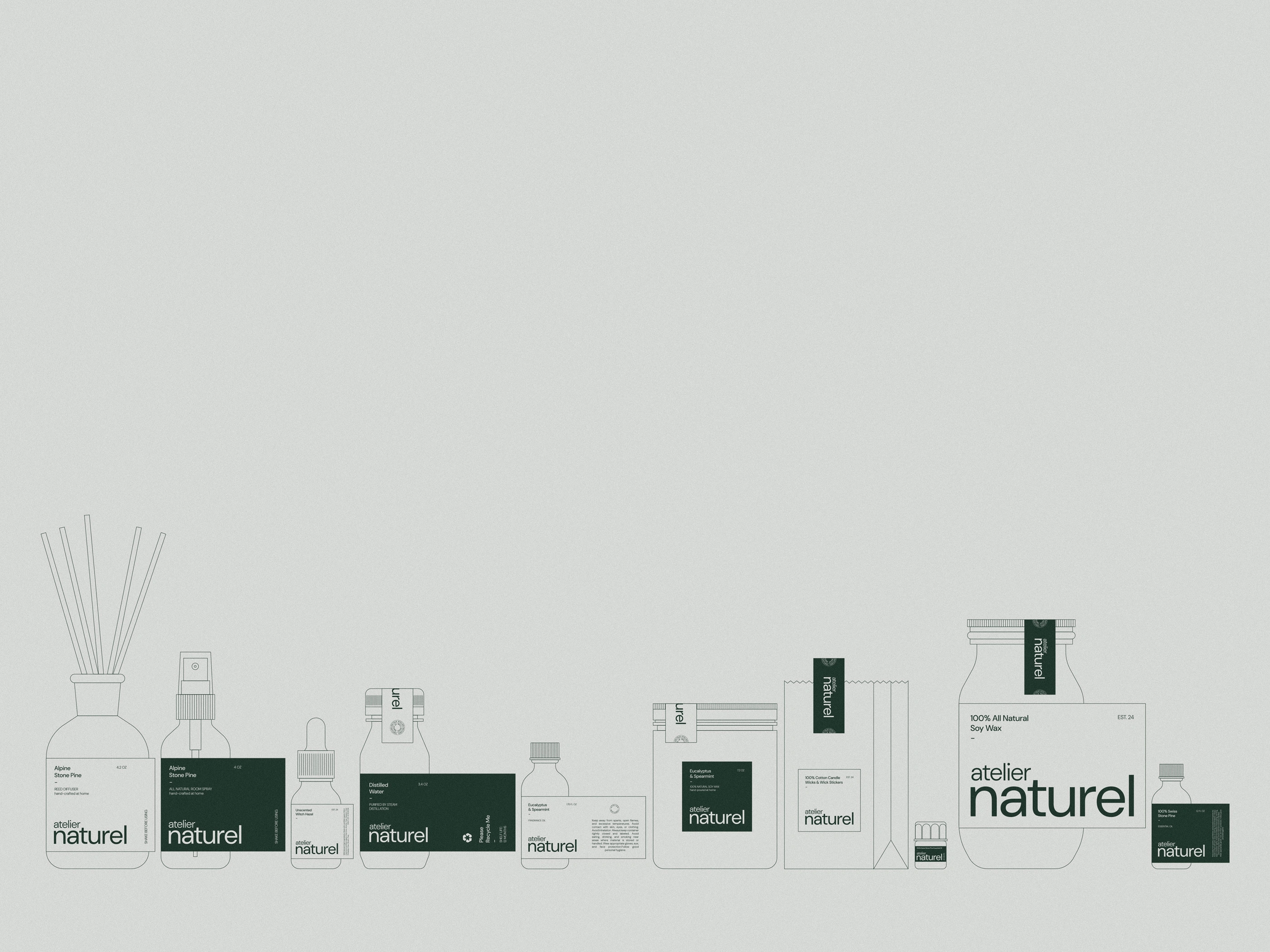 Developed Atelier Naturel’s visual branding and packaging, a flexible identity that reflects sustainability, craft and modern simplicity.