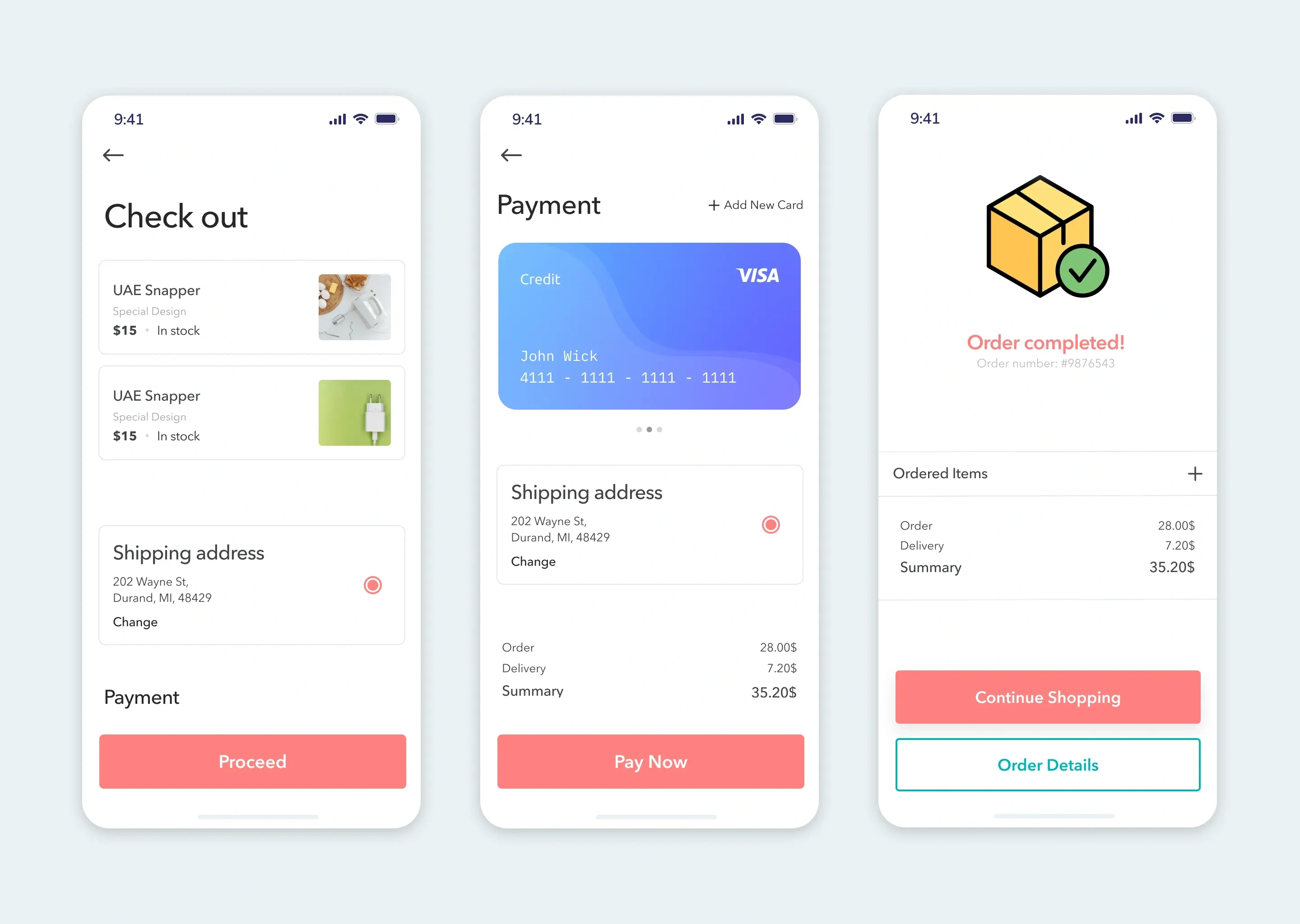 Checkout and payment screens focused on clarity, trust, and conversion — wrapped up with a clean success moment.