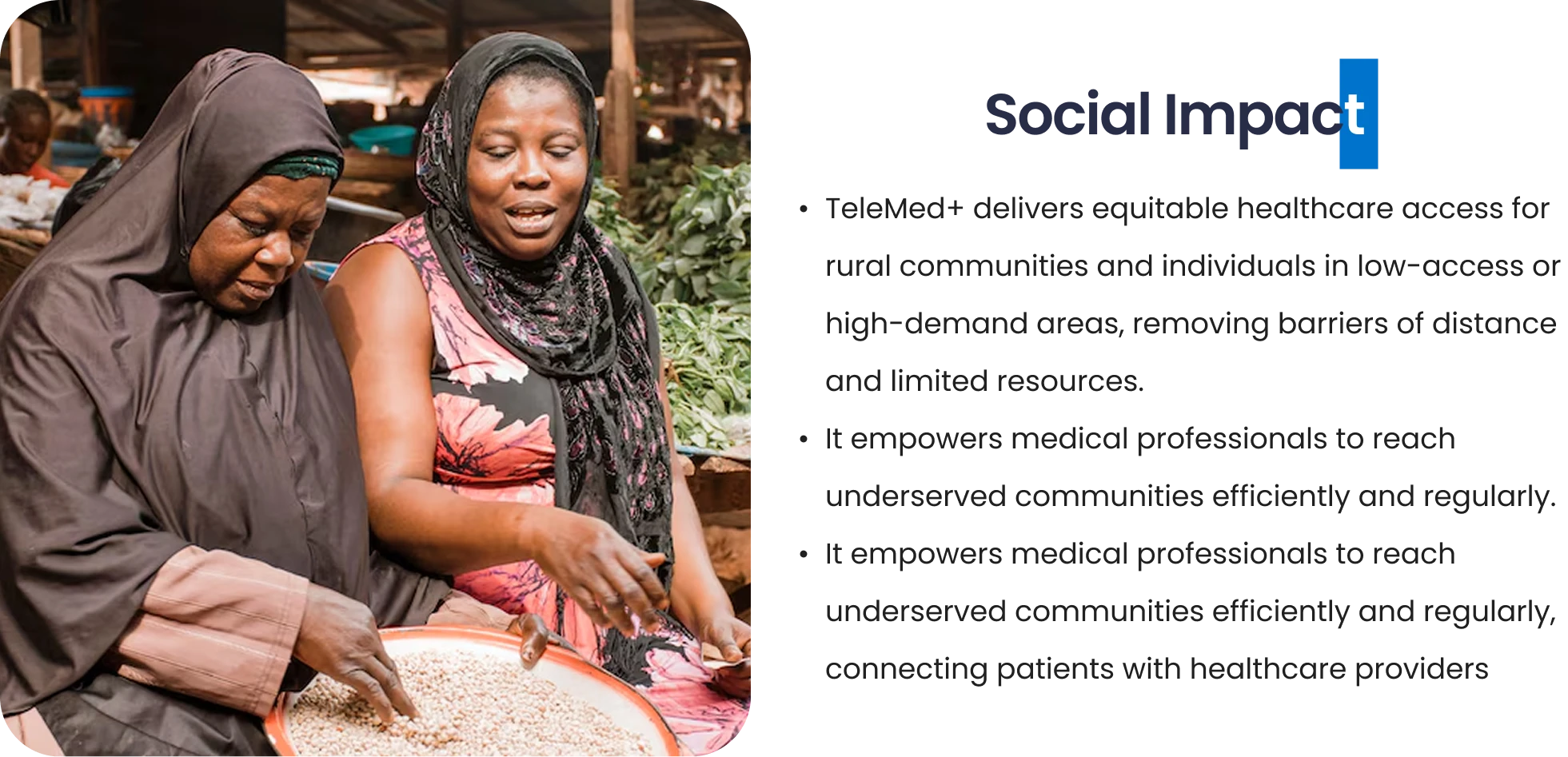 TeleMed+ delivers equitable healthcare access for rural communities and individuals in low-access or high-demand areas, removing barriers of distance and limited resources.