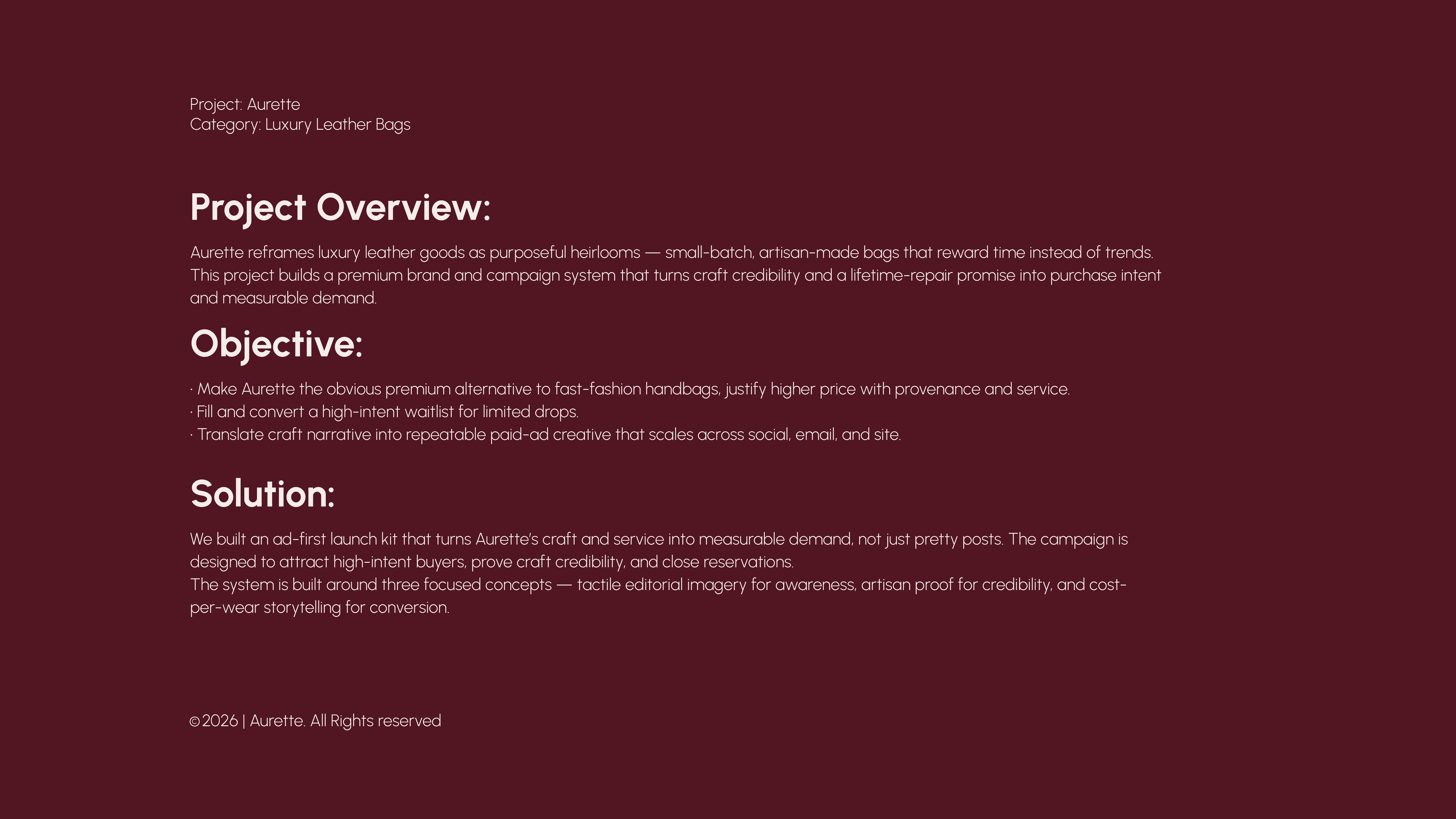 This project builds a premium brand and campaign system that turns craft credibility and a lifetime-repair promise into purchase intent and measurable demand.