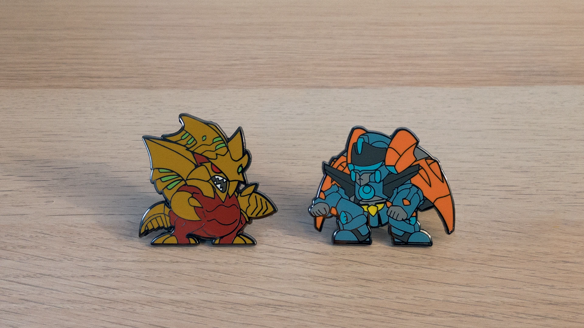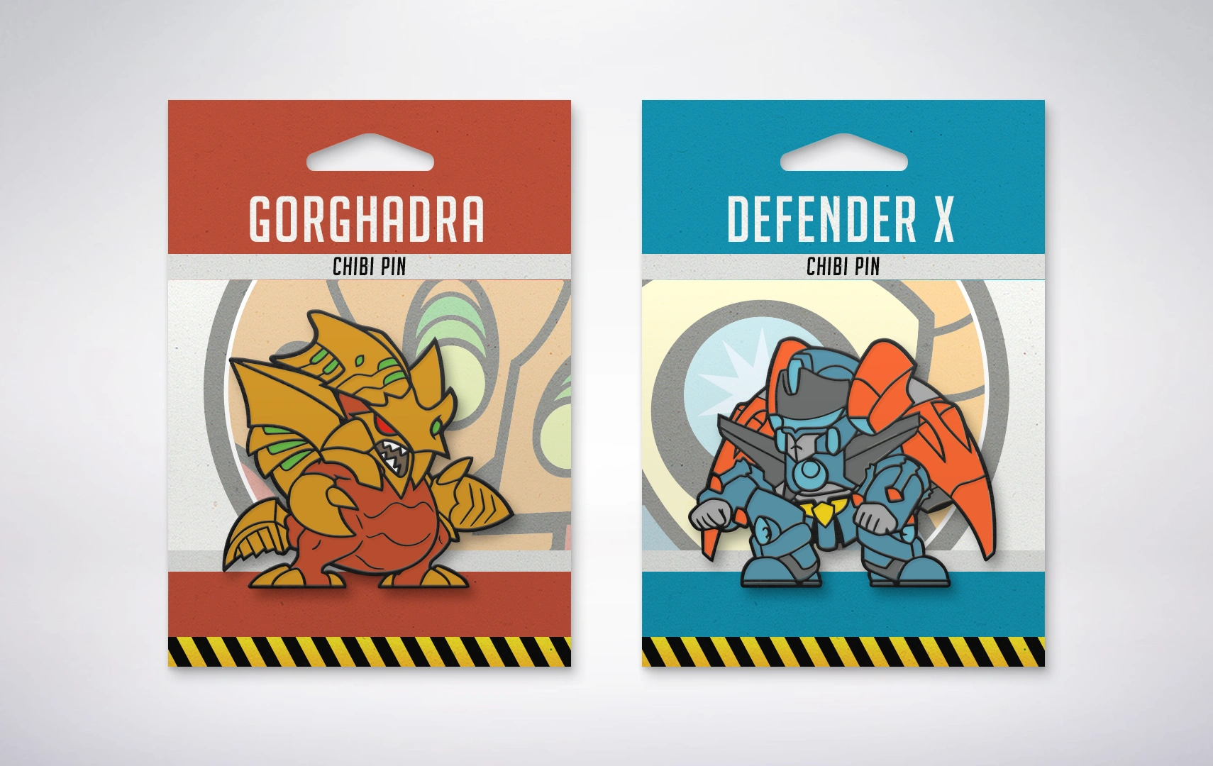 A set of hard enamel chibi pins designed for the starter kit monsters of Monsterpocalypse . Spring '19