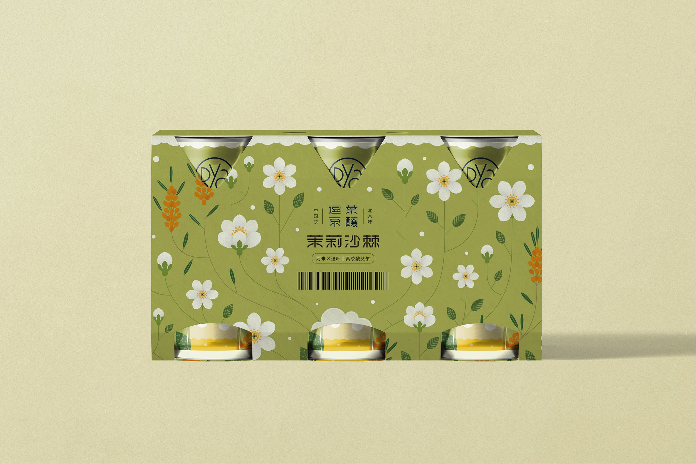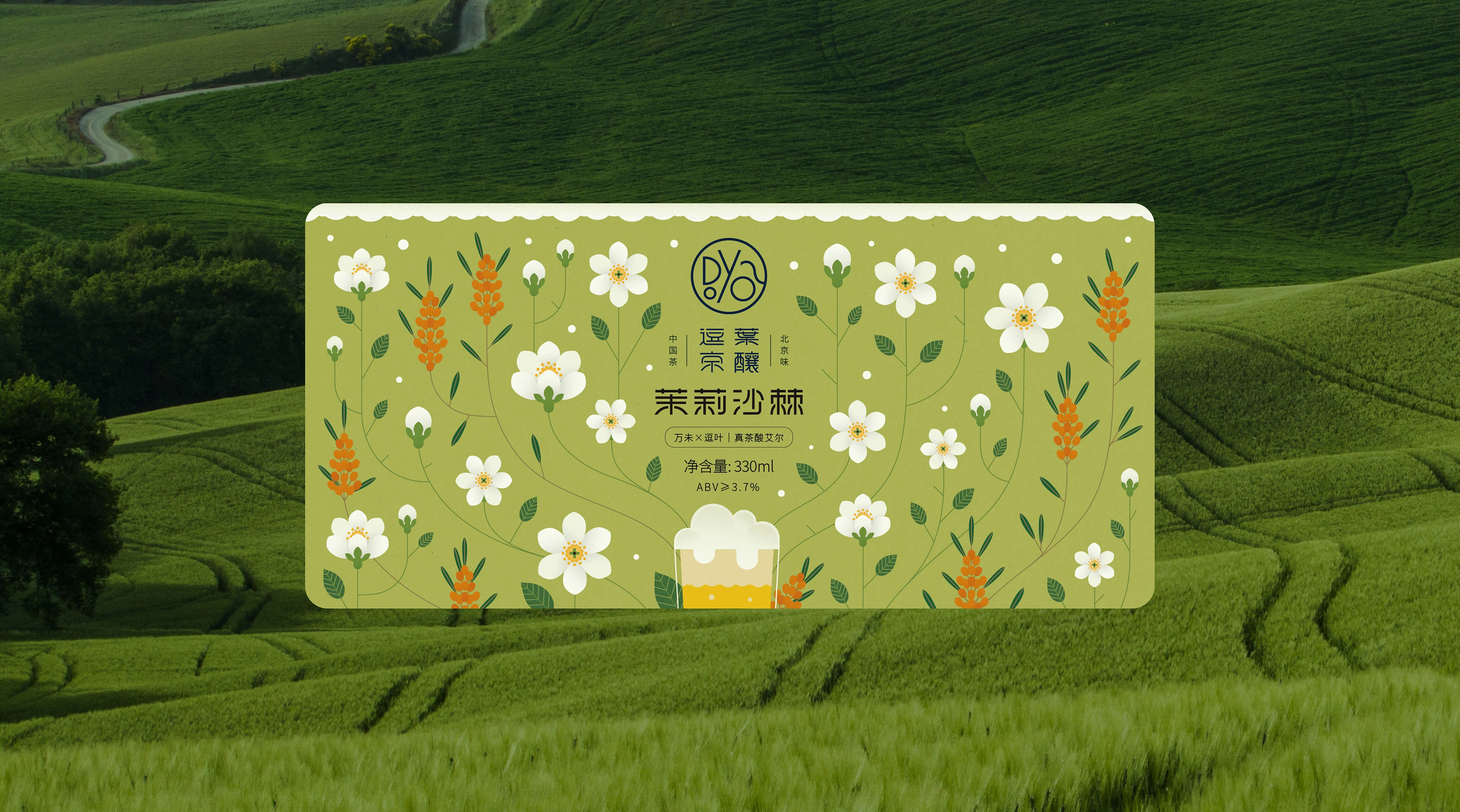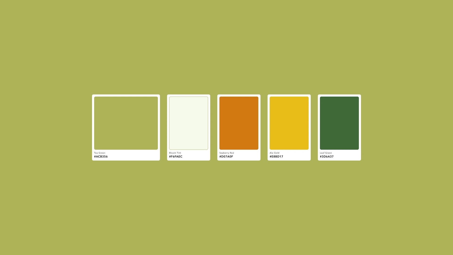 The color palette is inspired by the main ingredients of the beer: green tea, jasmine flowers, and seaberry — along with the golden hue of the ale itself. Together, these tones create a soft, refreshing look that feels natural and well-balanced. Each color echoes a part of the drink’s identity: floral, tart, and lightly brewed.