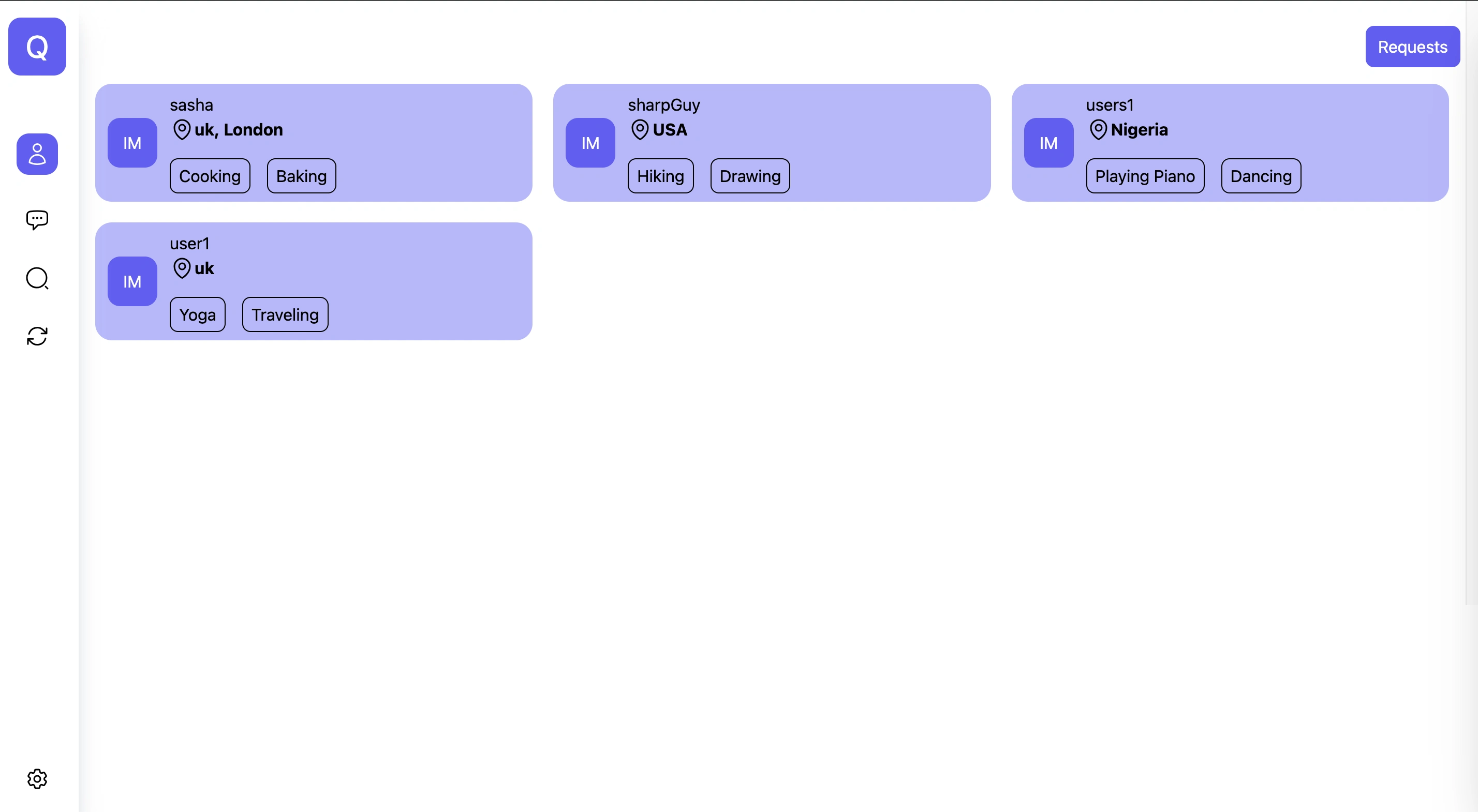 Unique chatroom IDs connect two users in one conversation.