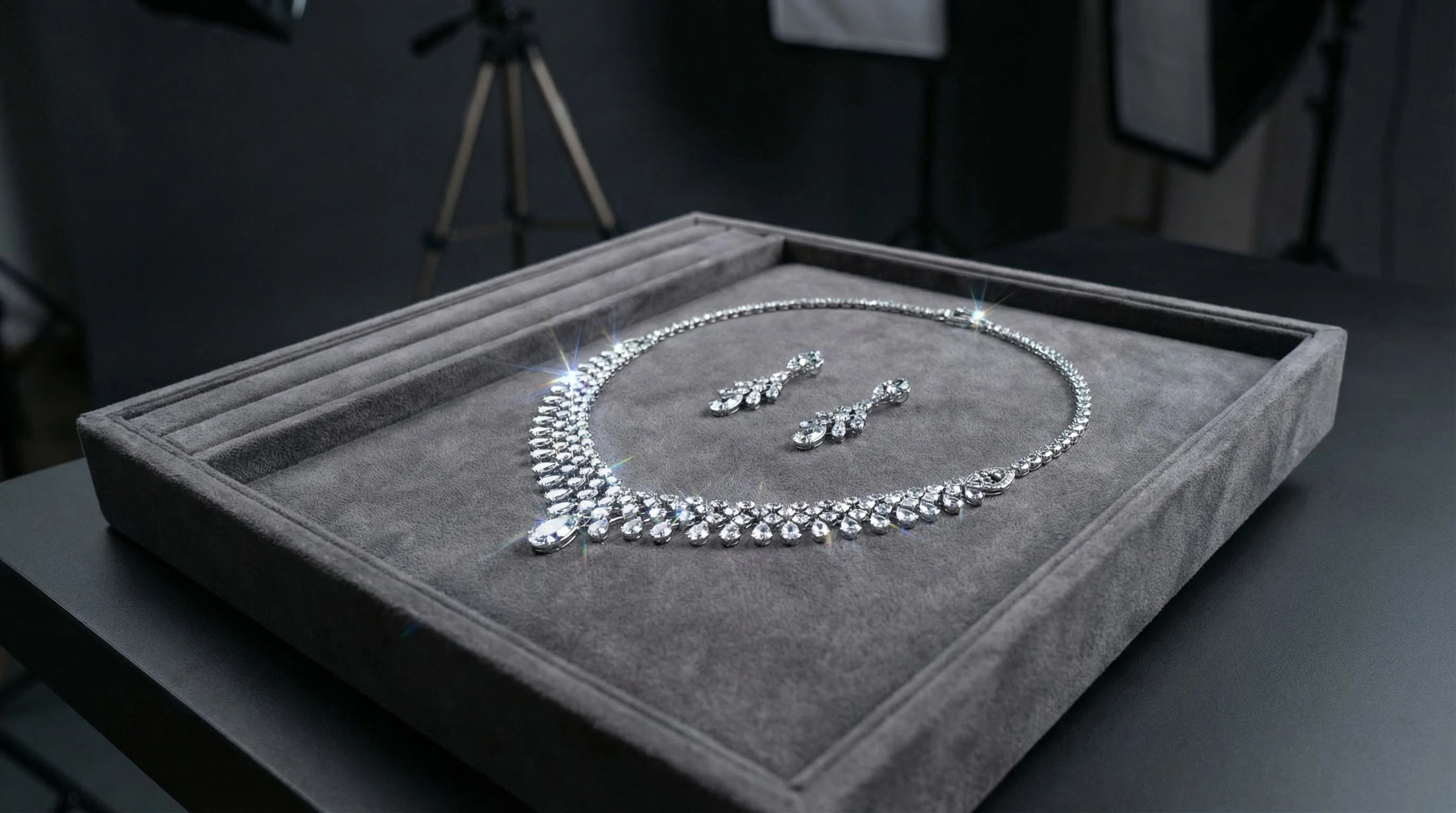 The jewelry is not added visually — it sits naturally, respecting weight and positioning
