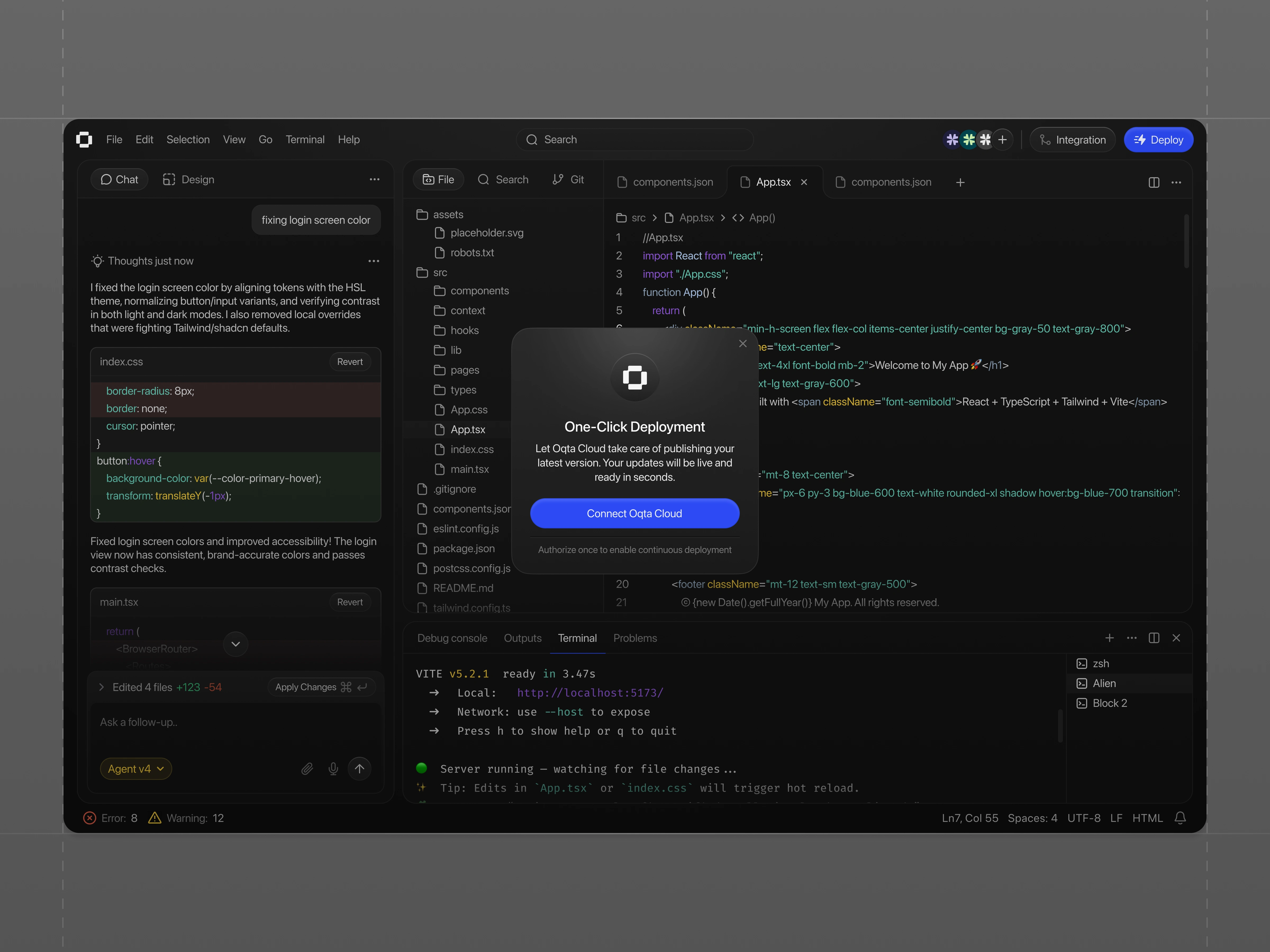 Oqta – AI Builder Dashboard is a next-generation development workspace that reimagines how developers code, debug, and refine projects using AI-driven assistance. Designed to streamline coding processes, Oqta combines smart automation, intuitive debugging tools, and live collaboration features creating a seamless bridge between creativity and productivity. Its minimal dark interface promotes focus while maintaining visual clarity for complex workflows.