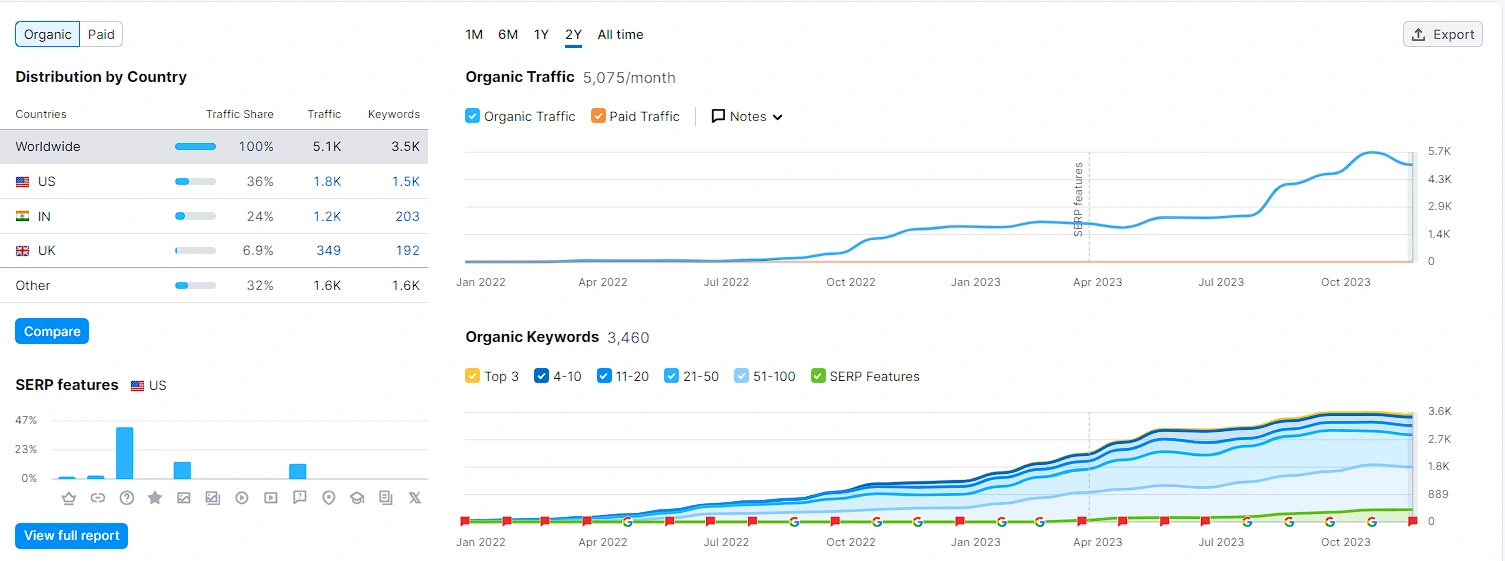 After a few months of working with VexPower and riding the surge of the AI trend, we managed to keep the traffic growing. A part of that growth is contributed by the high-quality content that I did for them. Here's a representation of that steady growth: