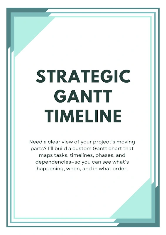 Need a clear view of your project’s moving parts? I’ll build a custom Gantt chart that maps tasks, timelines, phases, and dependencies—so you can see what’s happening, when, and in what order.