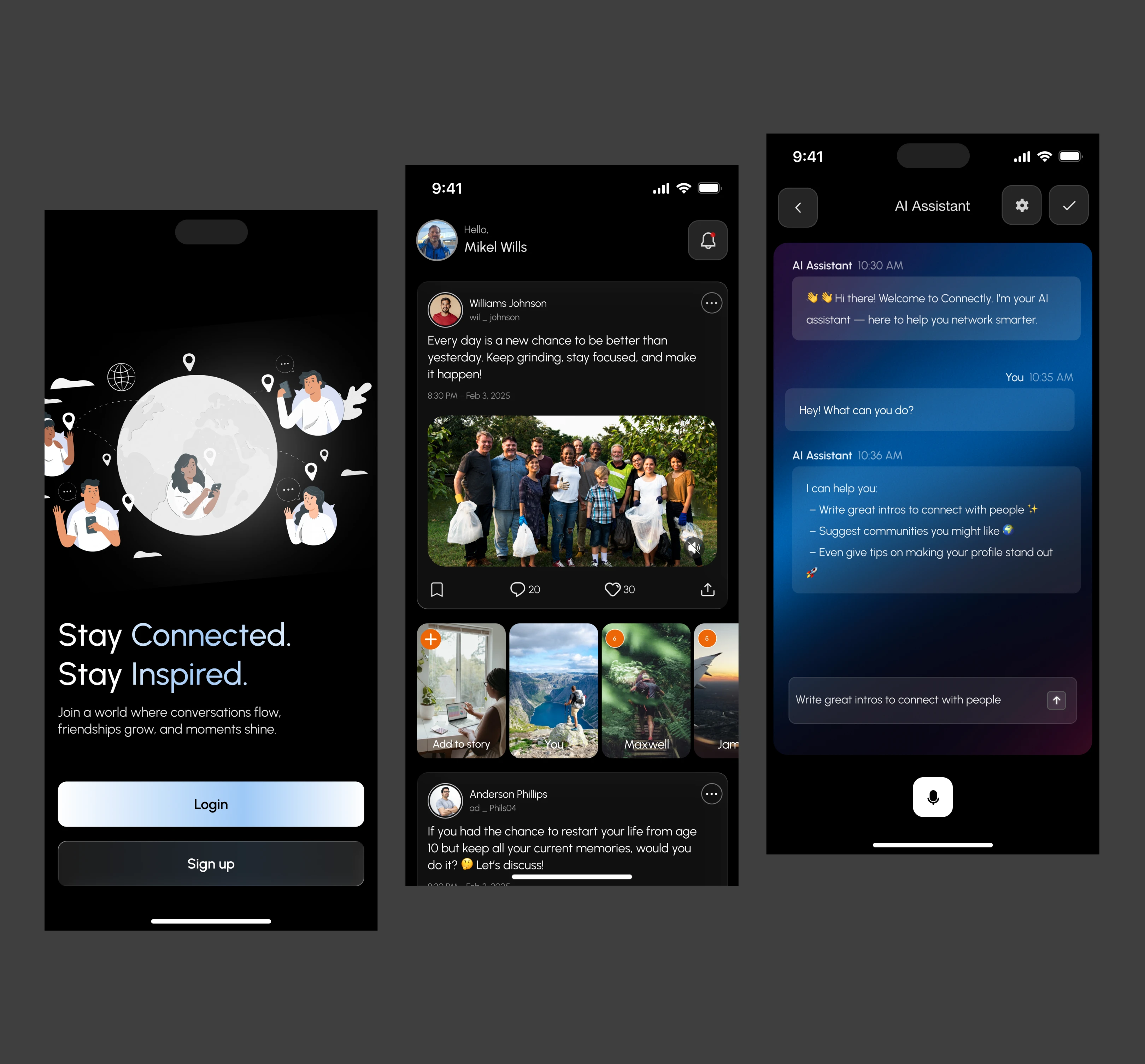 This networking app was designed to create meaningful connections while integrating smart AI assistance for better conversations.