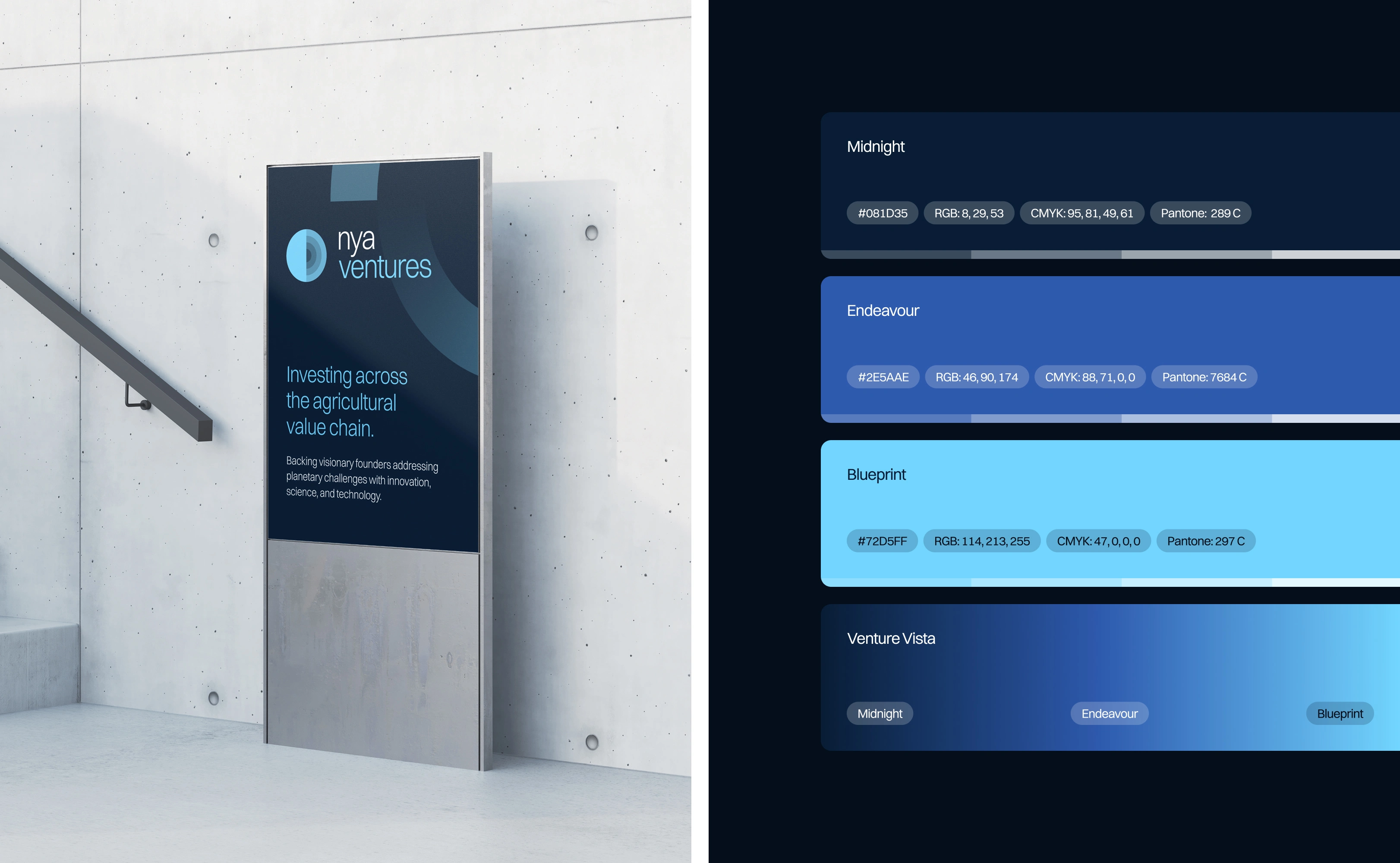 NYA Ventures, an early-stage venture capital firm, needed a complete brand identity and digital presence to establish credibility in the competitive VC landscape. They required a sophisticated visual system that would appeal to both founders seeking funding and limited partners.