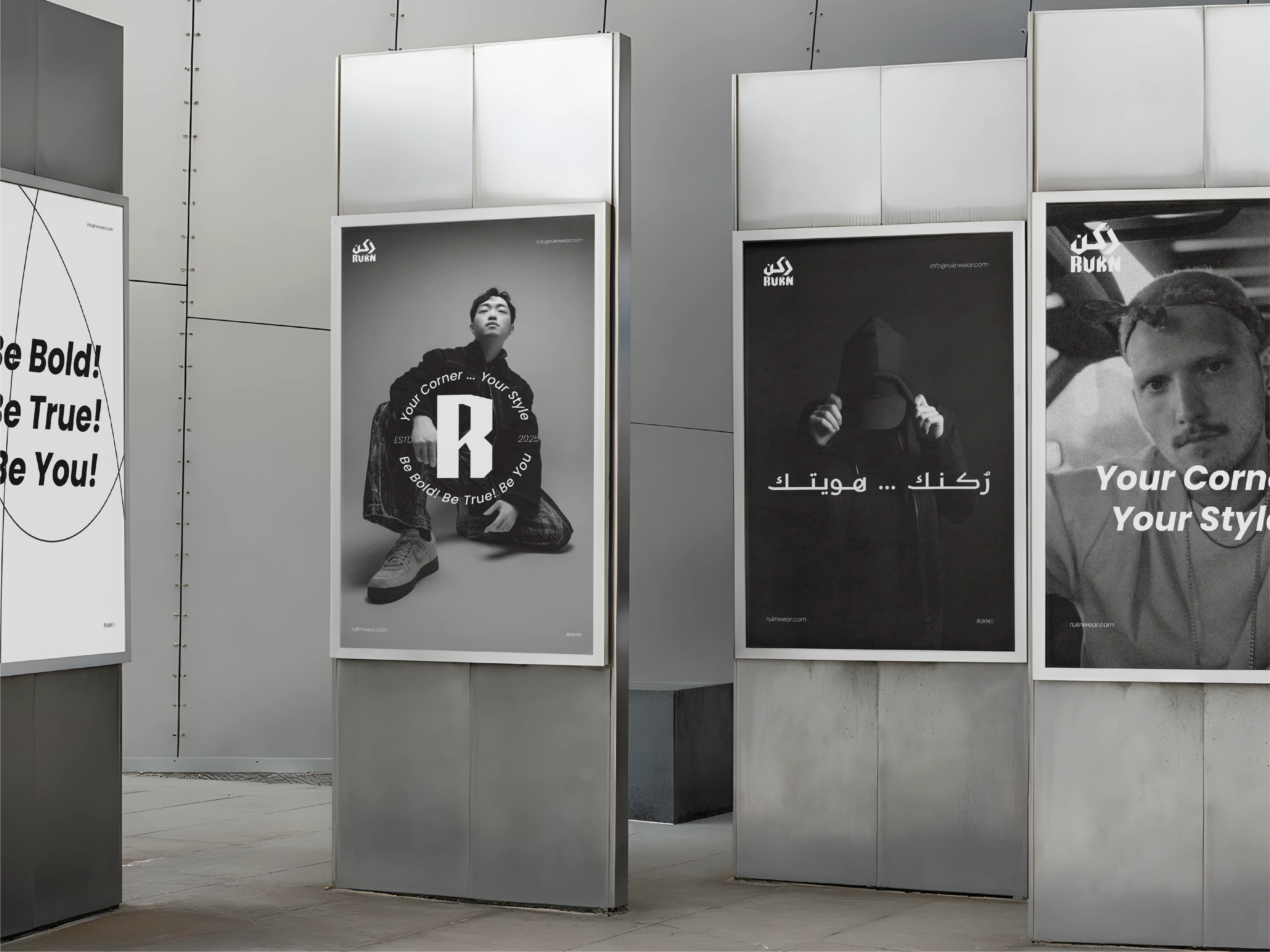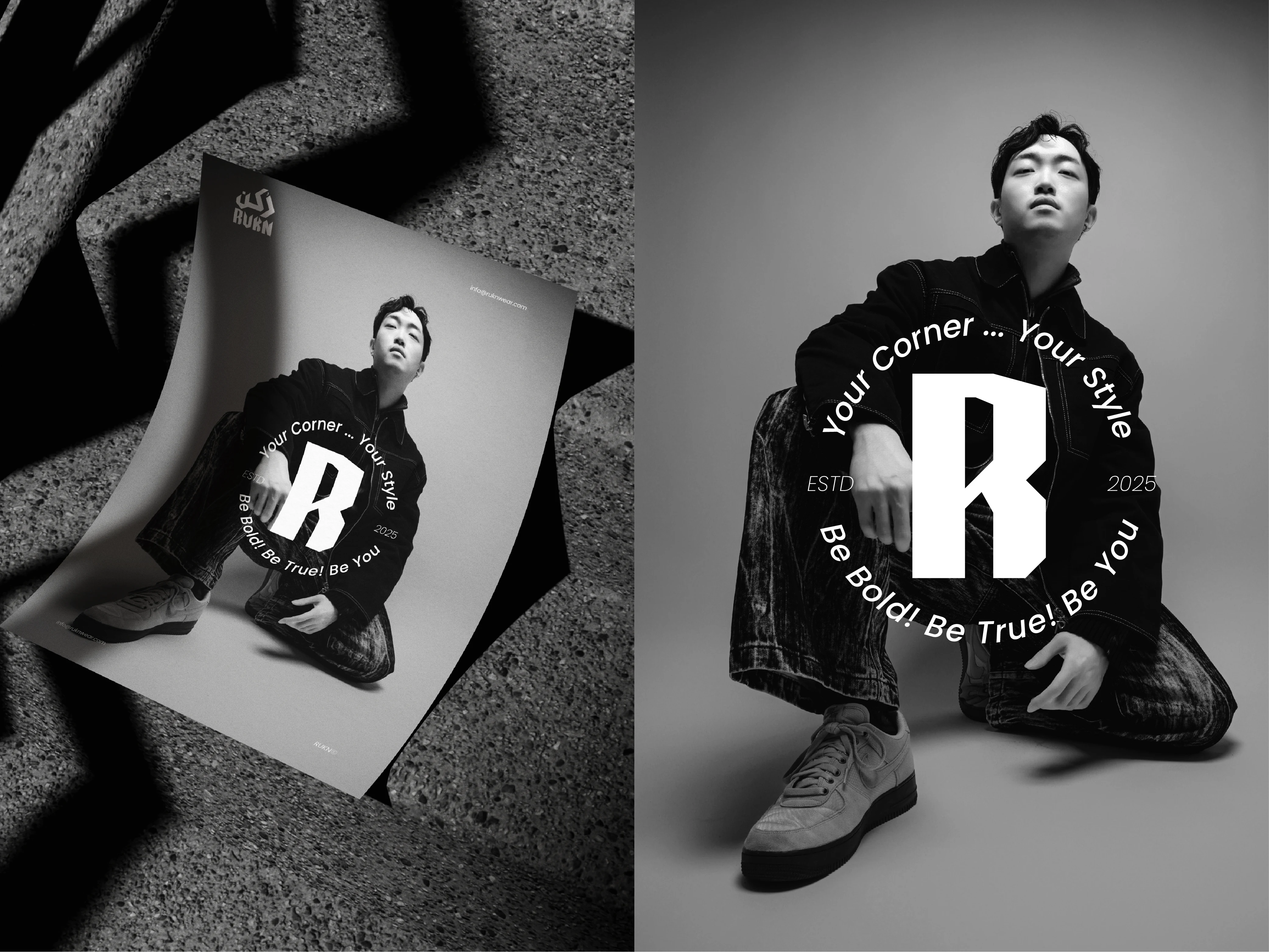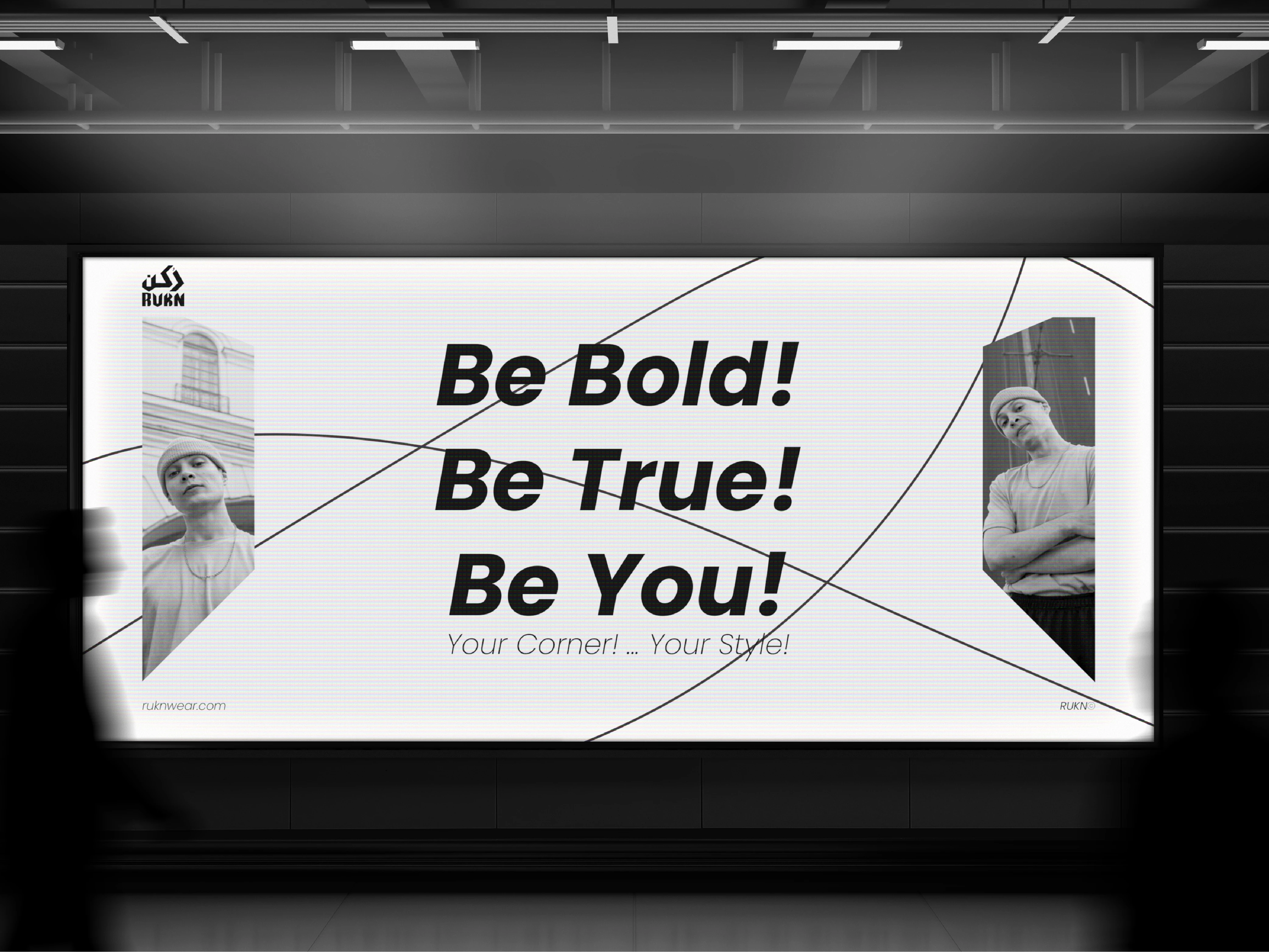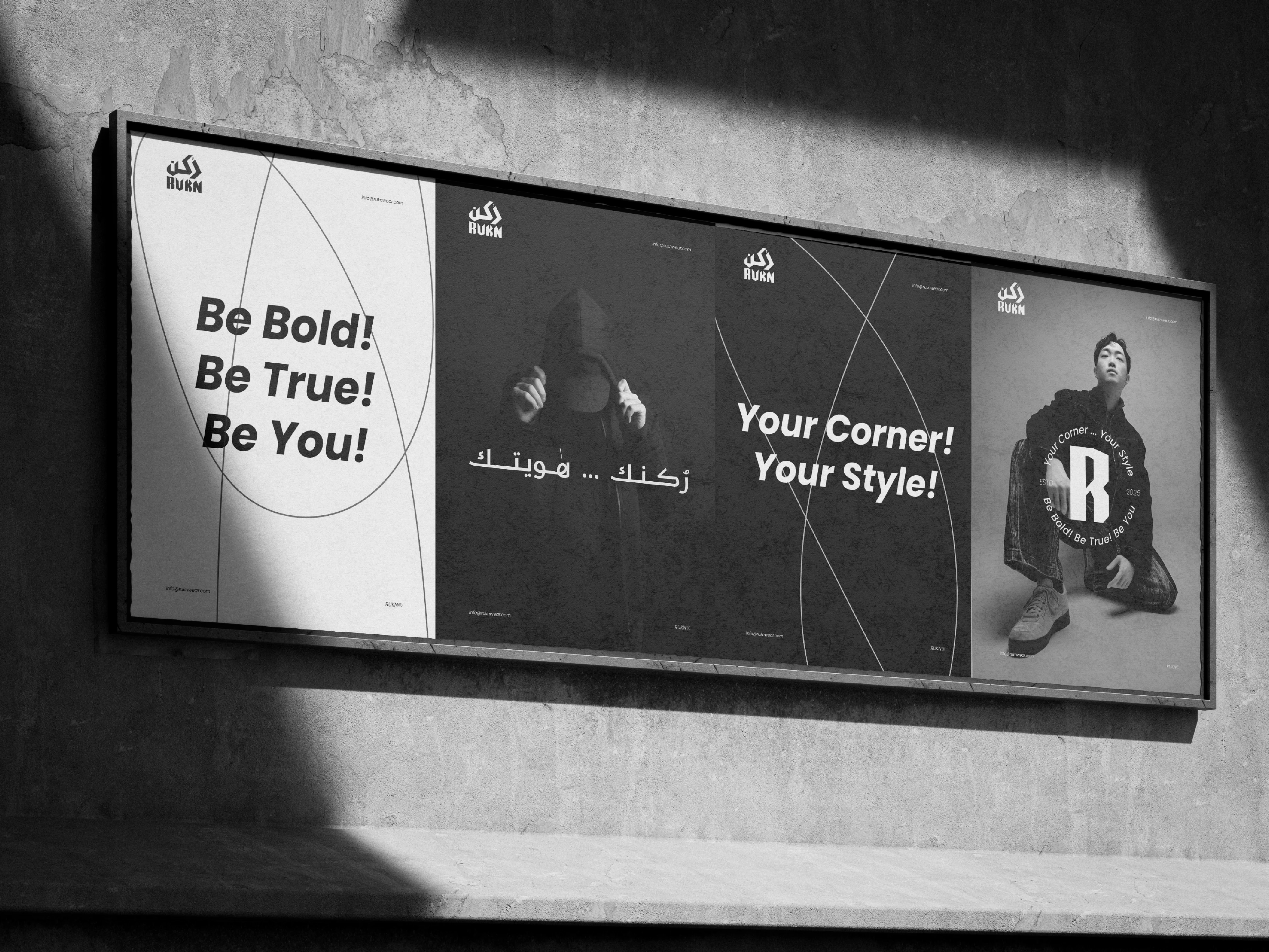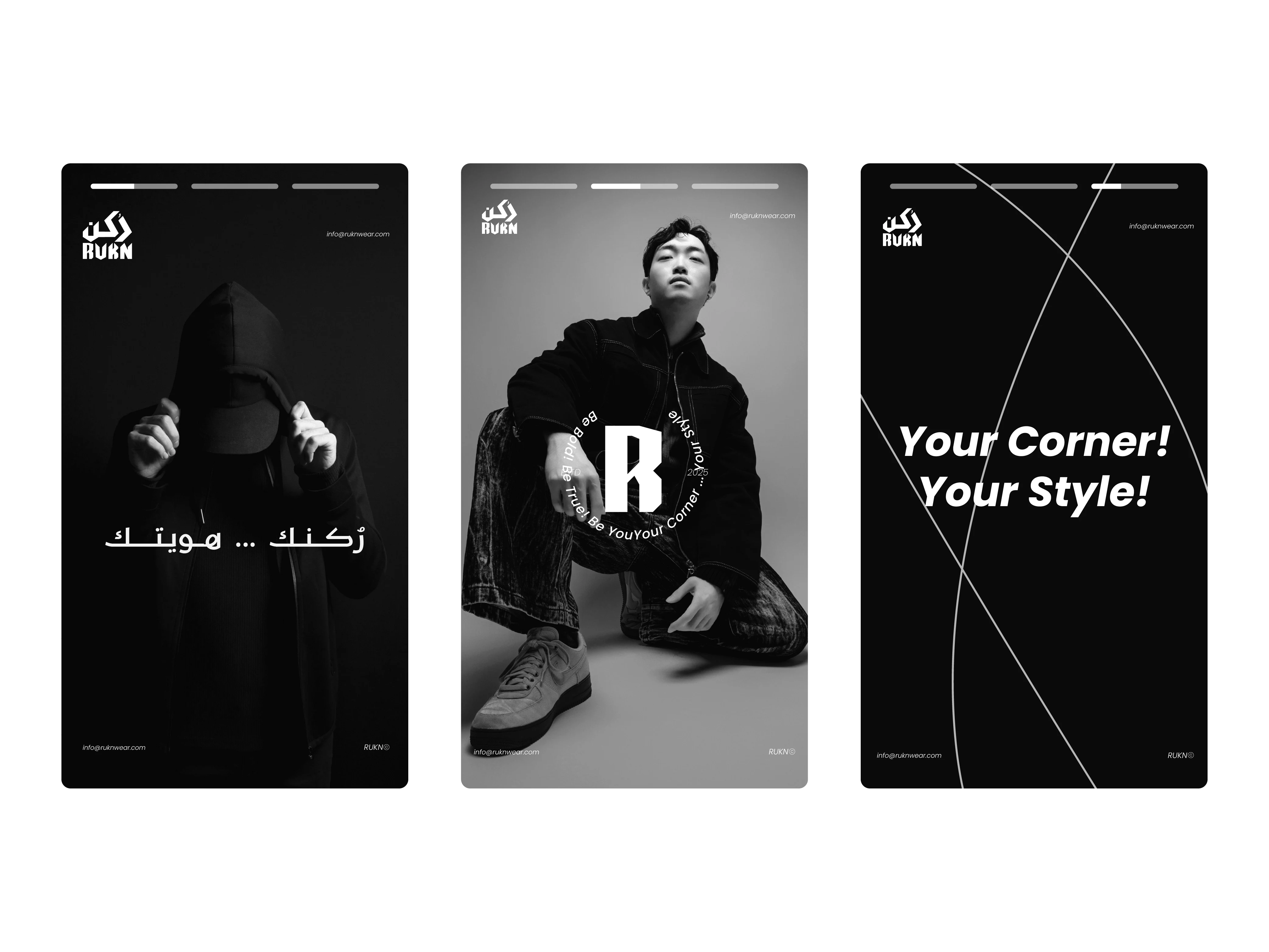 The name “RUKN” means corner — a place where ideas, styles, and people meet. I built the brand around this concept, creating layouts and visual elements that reflect individuality, self-expression, and street culture.