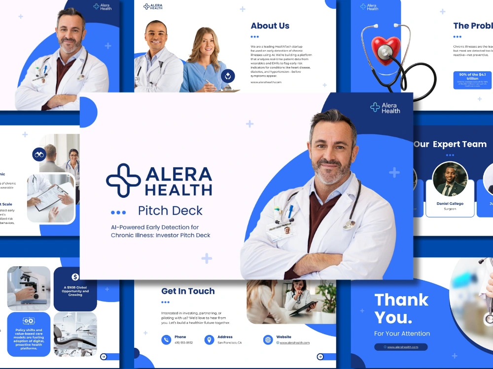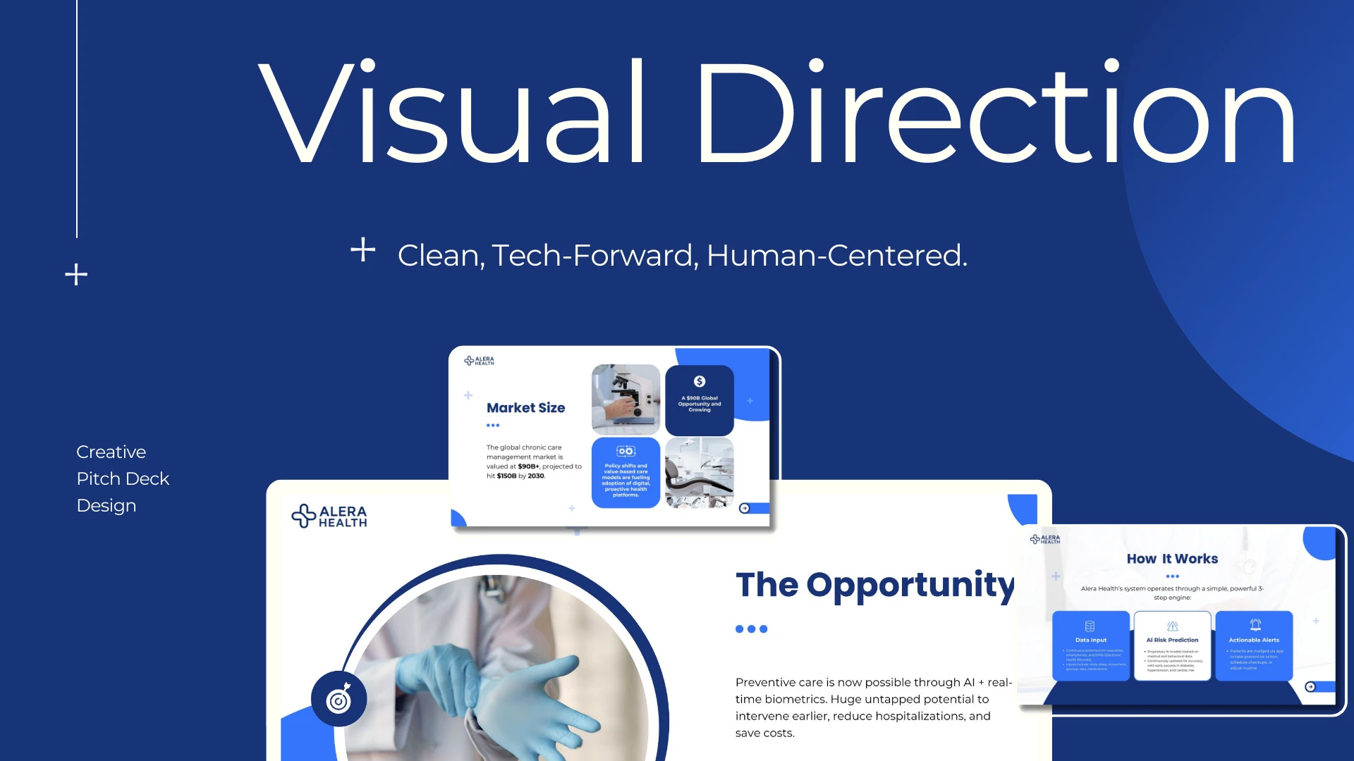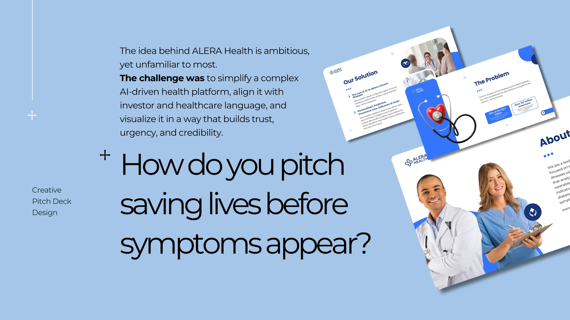 Designed a pitch deck for Alera Health to position them as a credible innovator in HealthTech.