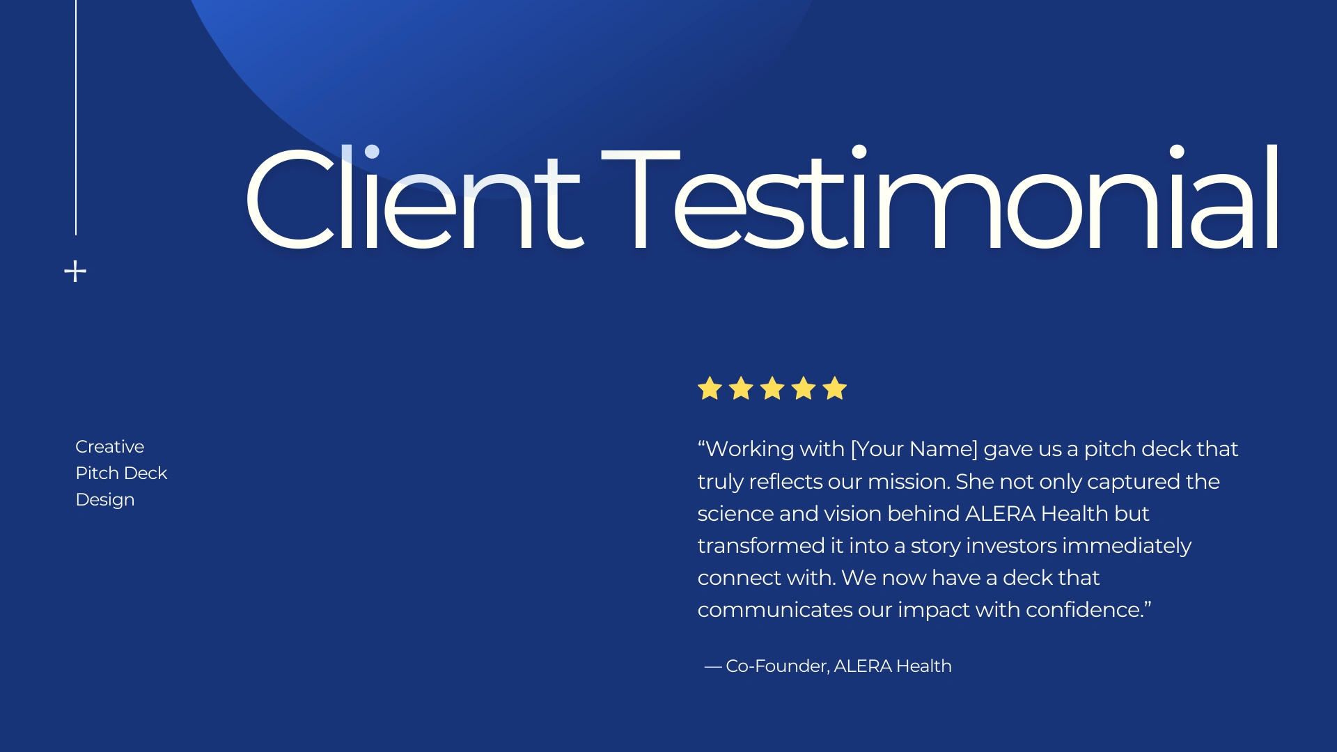 A pitch deck that communicated their vision with clarity, confidence, and impact, helping to position their startup as a credible innovator in the HealthTech space.