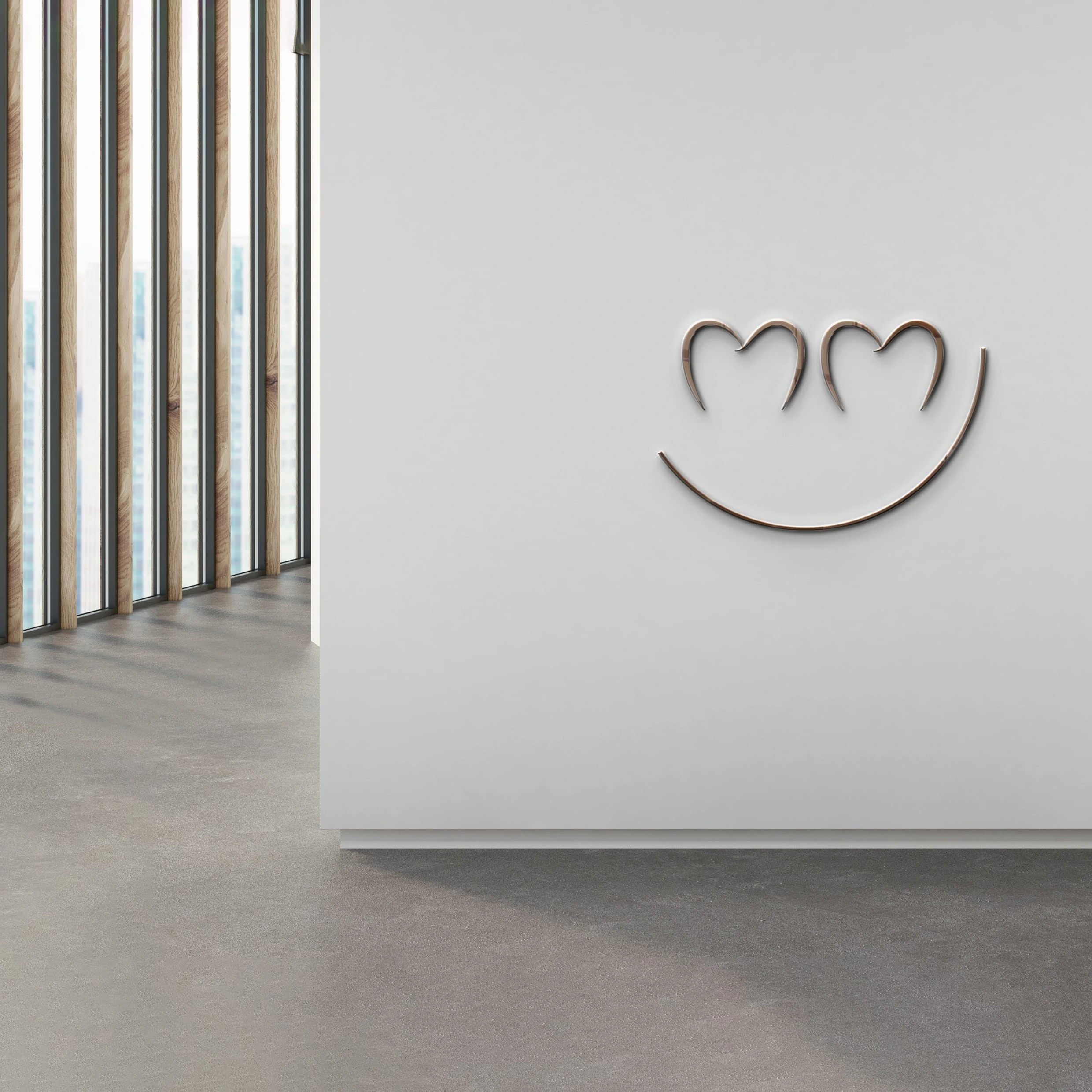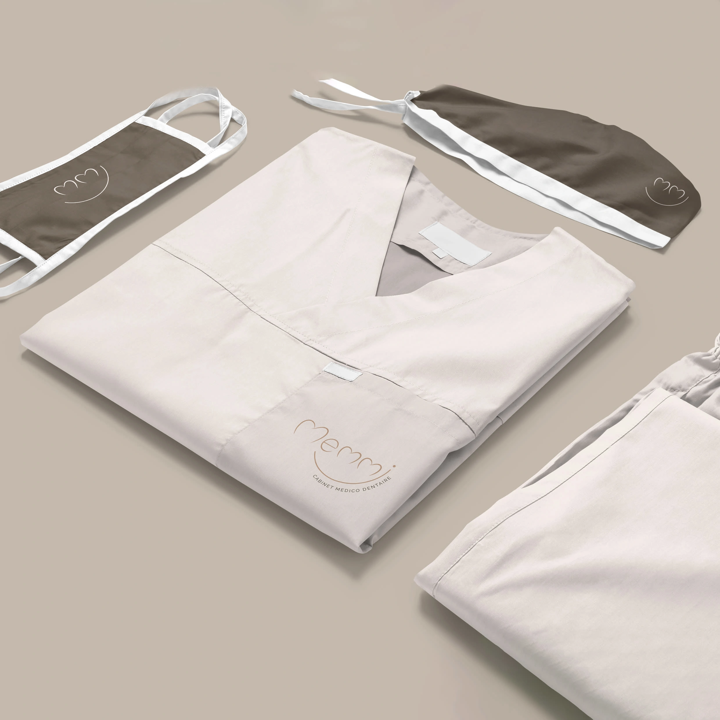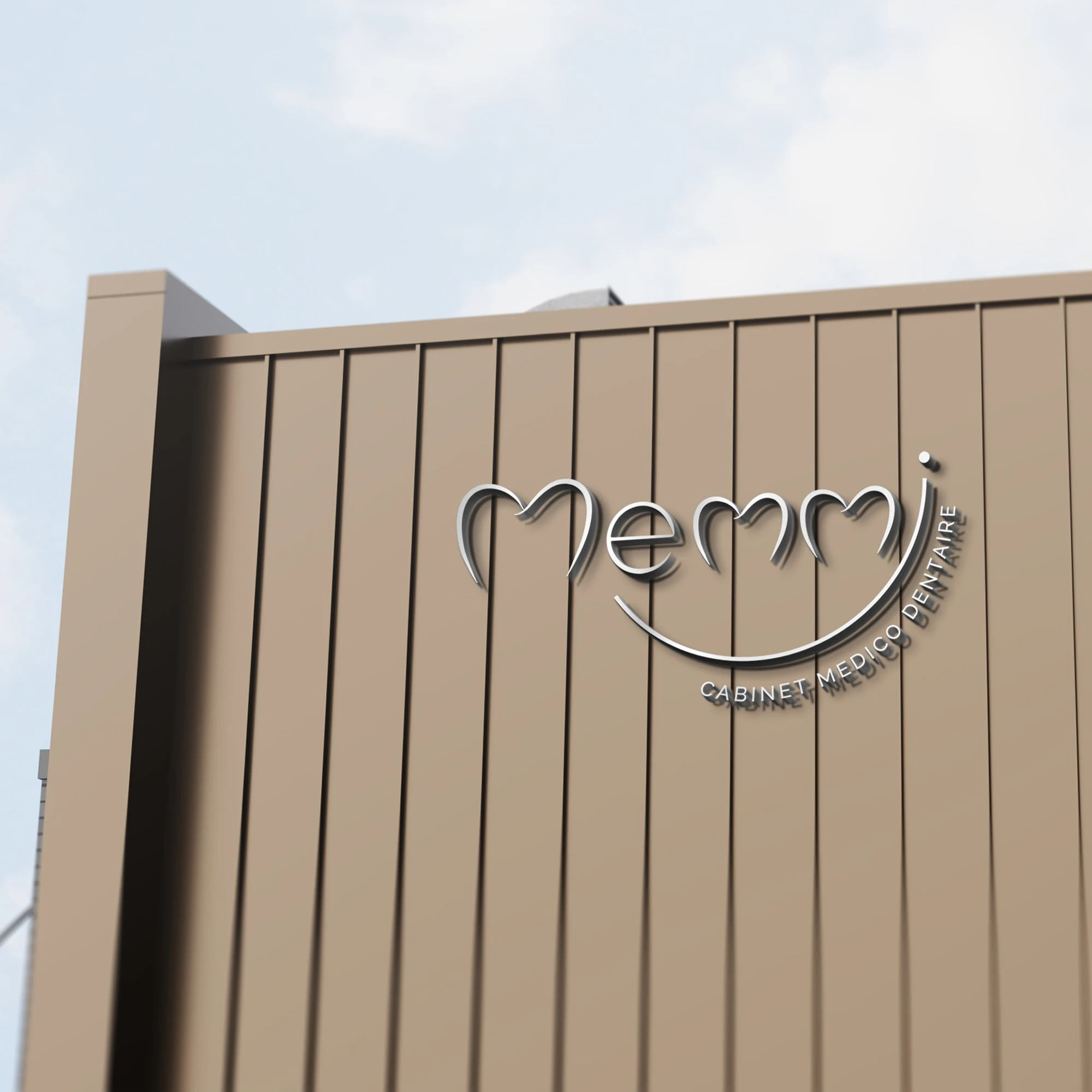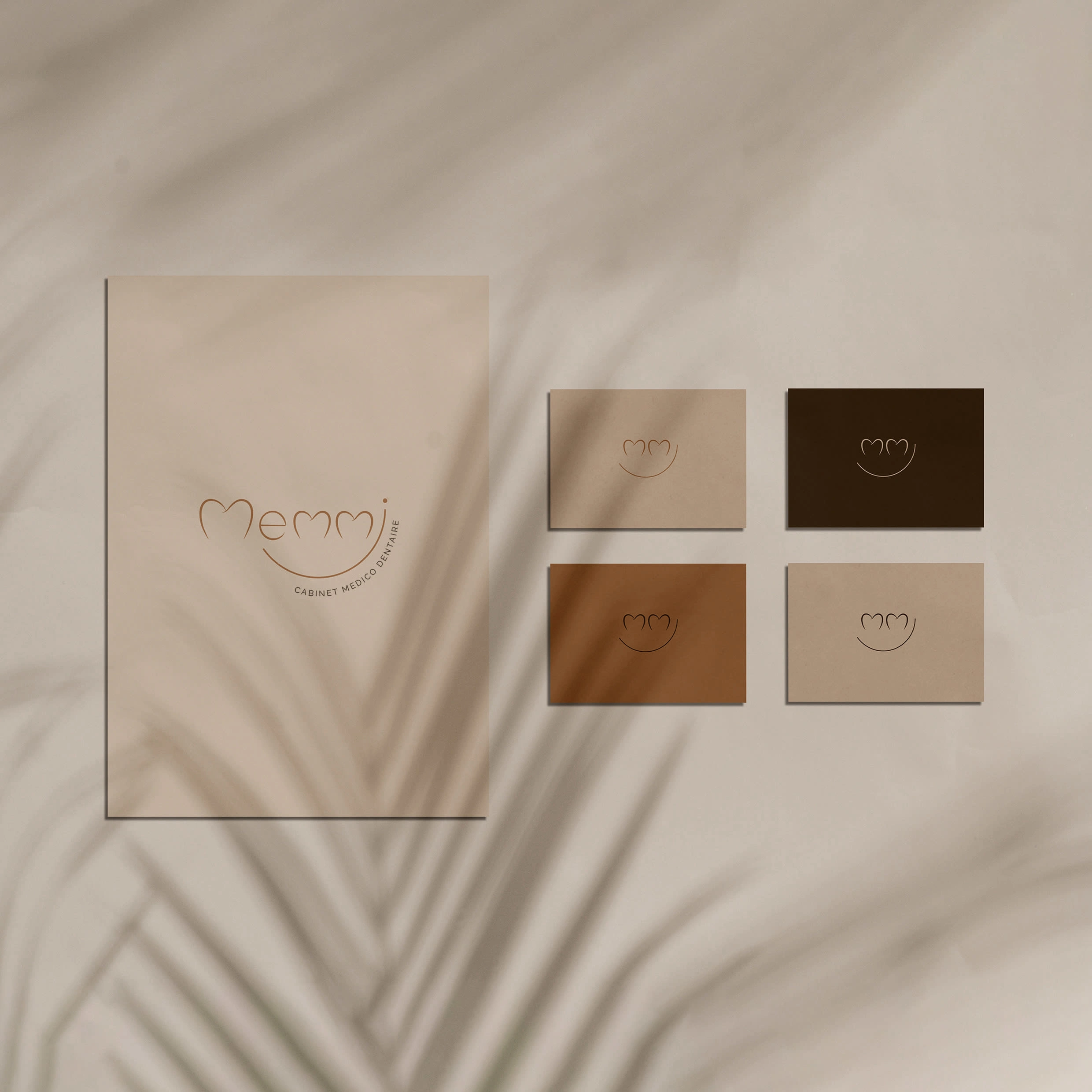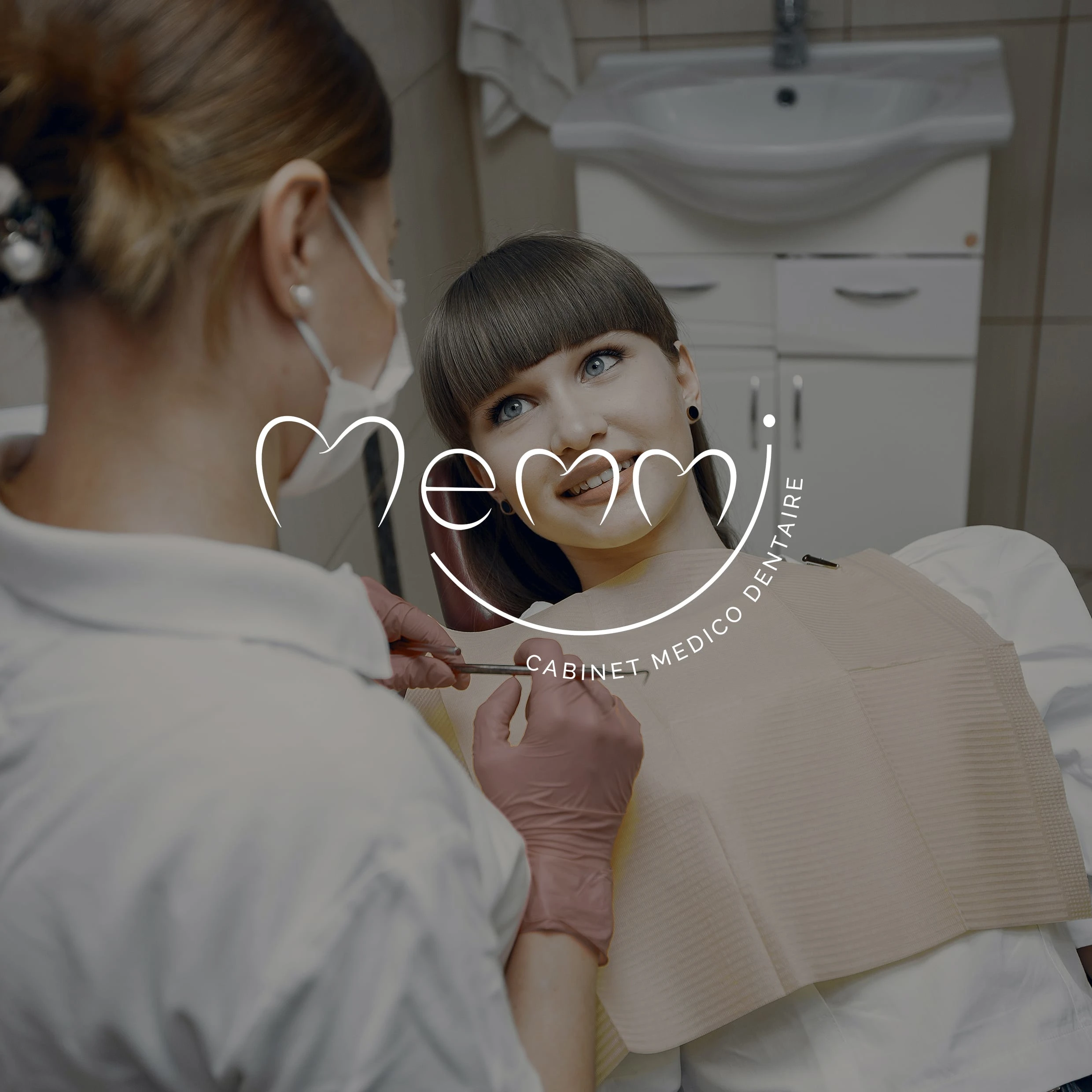 Their logo is based on their last name "Memmi" which features a typographic game to draw a smile. This smile is taken up in a secondary “smiley” logo, the initial M subtly evokes the tooth.
